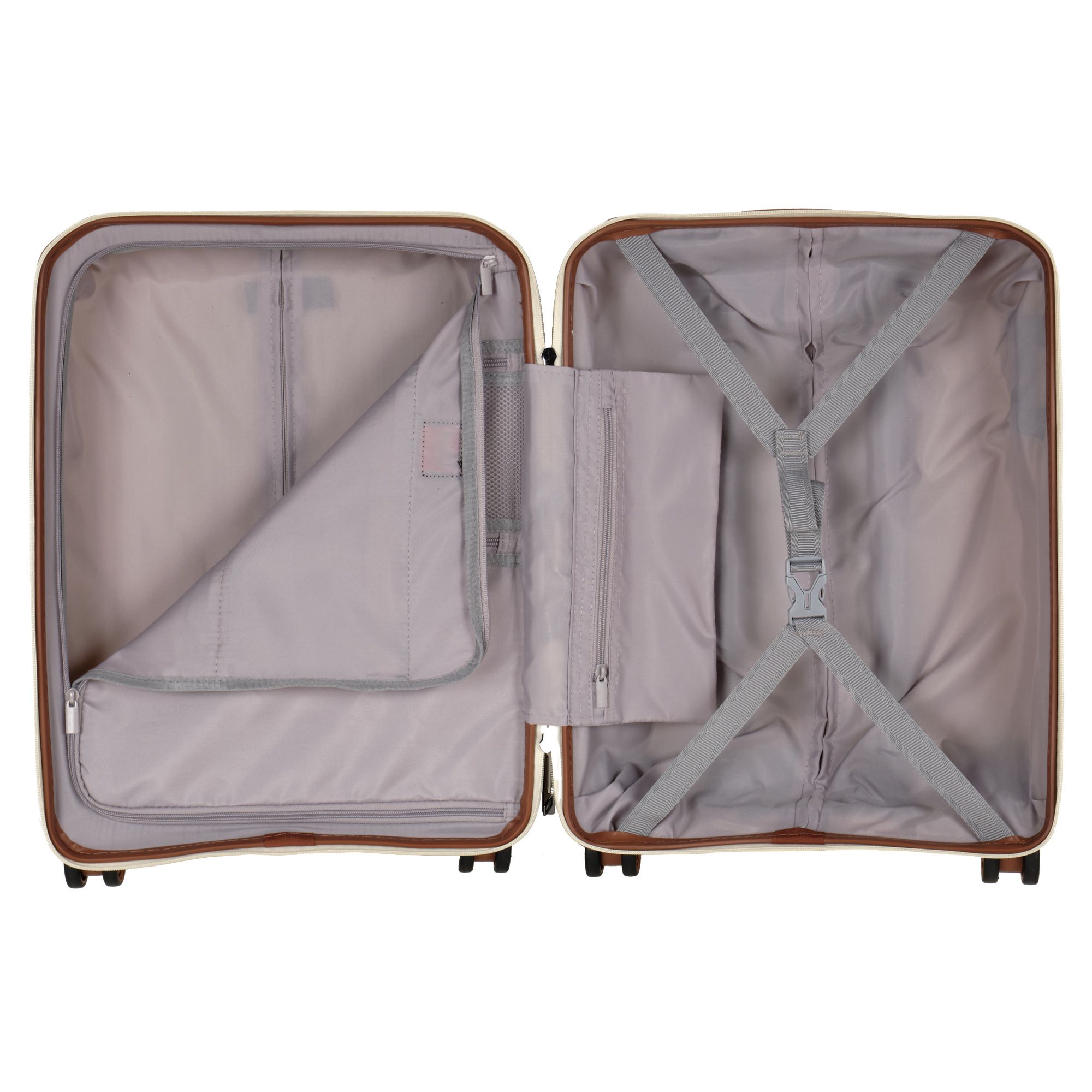 Чемодан фирмы Polar на четырех прорезиненных колесиках. Чемодан выполнен из PP-пластика (Полипропилен). Полипропилен обладает высокой прочностью, эластичностью и высокой ударостойкостью. Внутри подкладка из полиэстра. Одна секция чемодана с креплением резинками для одежды. Вторая секция застегивается на молнию для удобства упаковки вещей. Есть кодовый замок TSA.