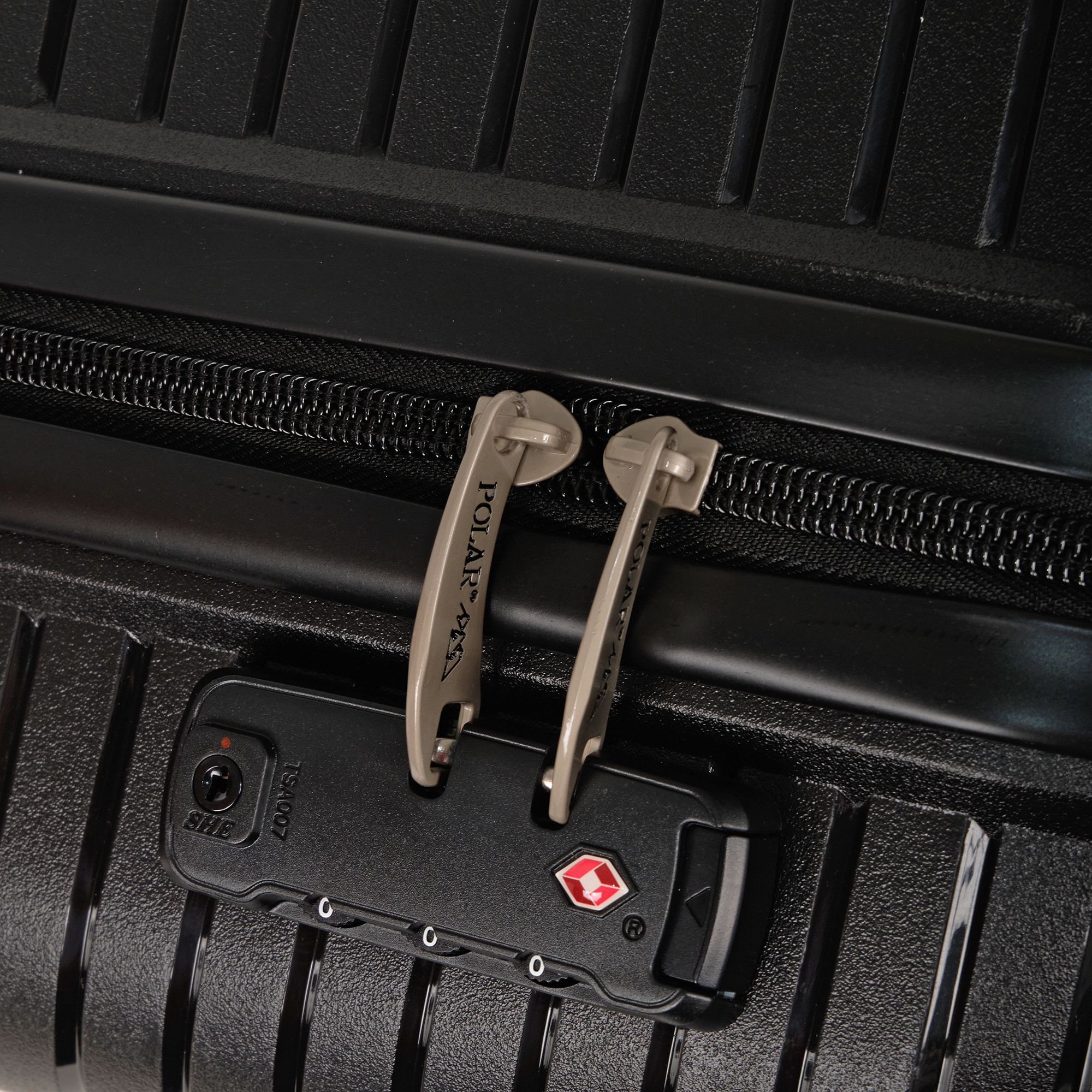 Чемодан фирмы Polar на четырех прорезиненных колесиках. Чемодан выполнен из PP-пластика (Полипропилен). Полипропилен обладает высокой прочностью, эластичностью и высокой ударостойкостью. Внутри подкладка из полиэстра. Одна секция чемодана с креплением резинками для одежды. Вторая секция застегивается на молнию для удобства упаковки вещей. Есть кодовый замок TSA.
