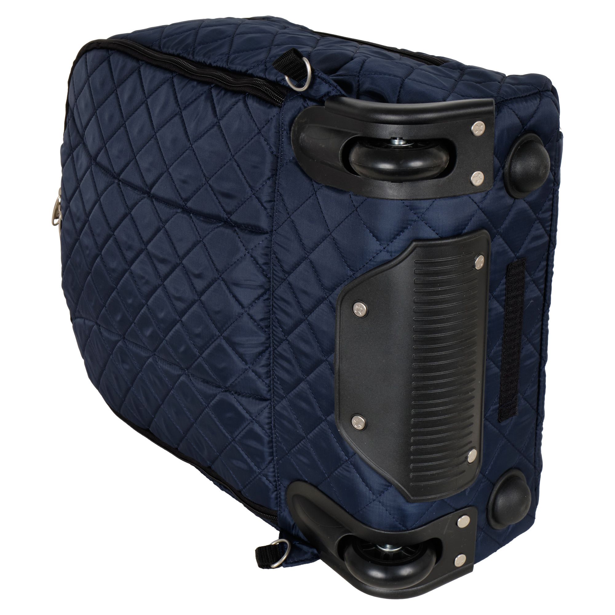 Колеса прорезиненные, дно дополнительно защищено от истирания. Сумка устойчиво стоит на ножках. Модель подходит под требования для ручной клади в большинство авиакомпаний с ограничениями по размерам 50X40X20 см, а линейный размер (сумма трех измерений равен 106 см).