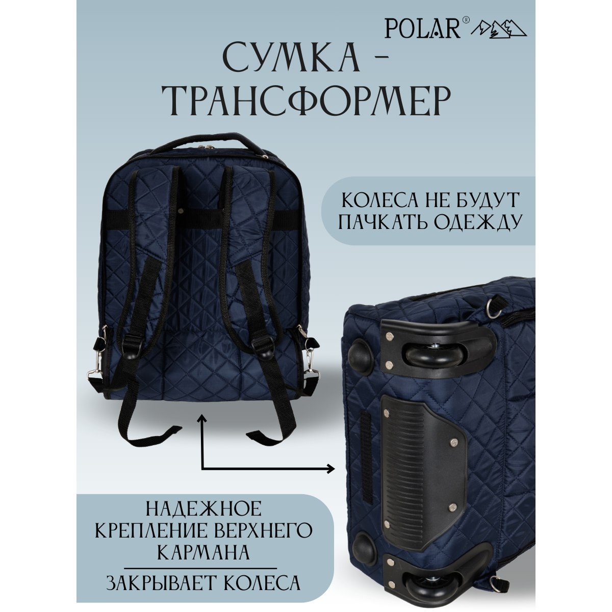 Дорожная сумка-рюкзак на колесах с выдвижной тележкой фирмы POLAR.
