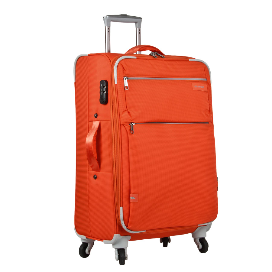 Чемодан фирмы Polar. Внутри чемодана имеются фиксирующие ремни и два дополнительных кармана на молнии. Также основное отделение можно увеличить в объеме, расстегнув молнию, при этом чемодан увеличивается в глубину на 5 см. Ручка выдвигается в два сложения на 28 см, расположена внутри корпуса чемодана, что способствует большей прочности и защите от ударов при разгрузке/погрузке чемодана. Снаружи на передней стенке — два больших кармана на молнии. Надежные четыре колеса на подшипниках, вращаются на 360° градусов. В комплекте идет кодовый замок.
