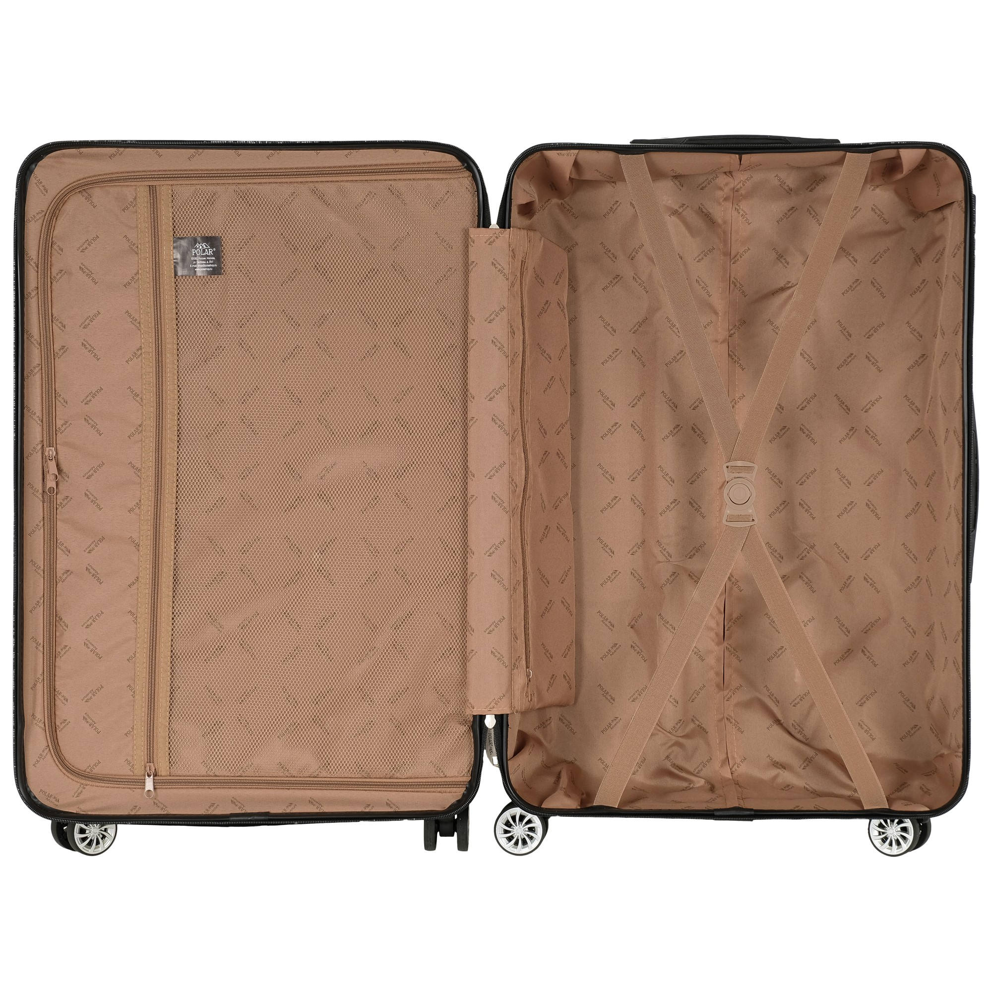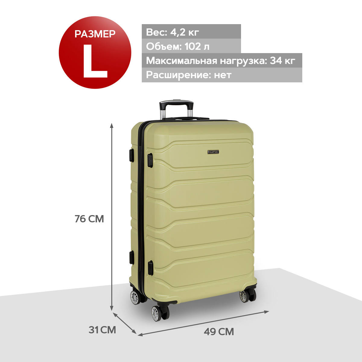 Чемодан фирмы POLAR, выполнен из ABS-пластика. Основное отделение разделено на две части. Одно имеет фиксирующие ремни, второе на молнии. Выдвигающаяся ручка расположена внутри корпуса чемодана, что способствует большей прочности и защите от ударов при разгрузке/погрузке чемодана. Выдвигающаяся ручка фиксируется в трех положениях. Есть кодовый замок. Надежные 4 колеса диаметром 4.5 см.