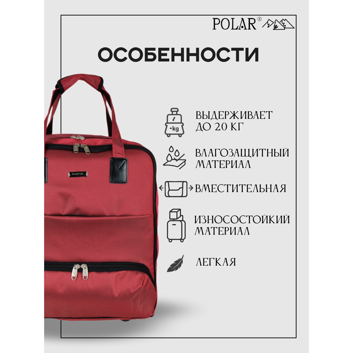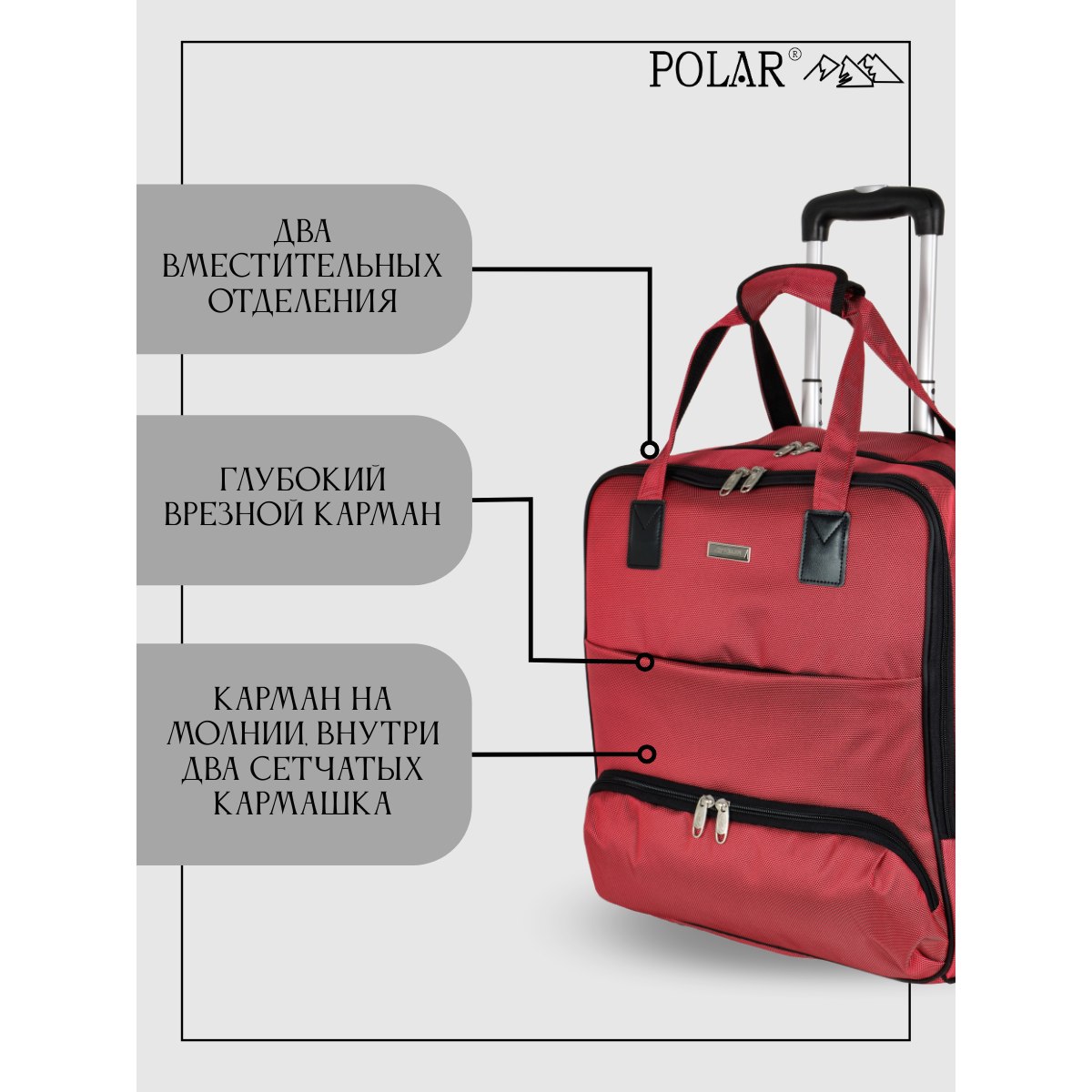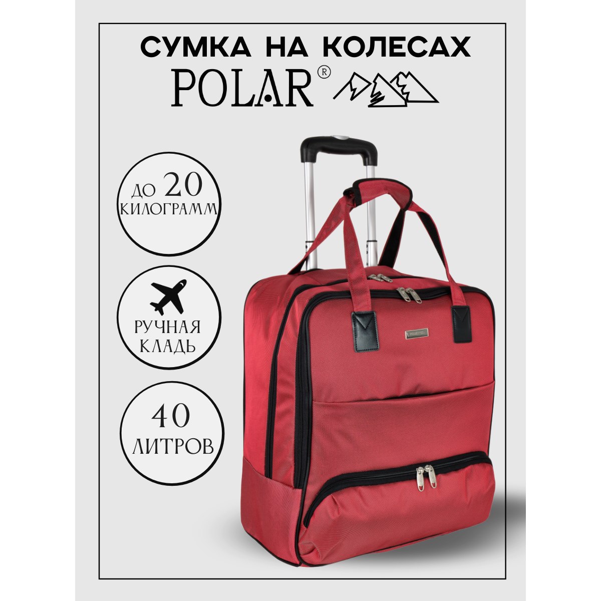 Сумка на колесах с тележкой, ручная кладь POLAR.