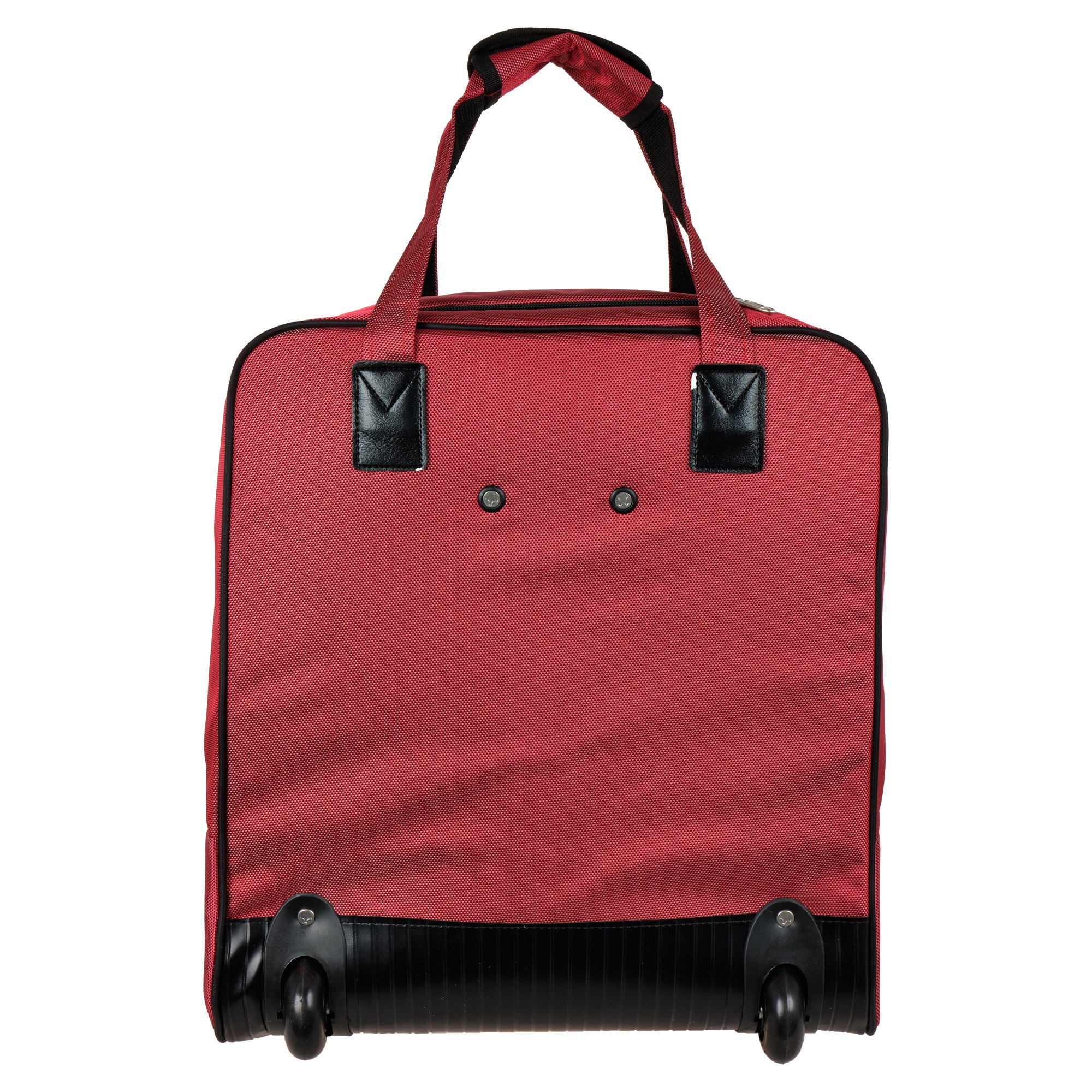 Колеса прорезиненные диаметр 7 см, дно дополнительно защищено от истирания. Сумка устойчиво стоит на ножках. Модель подходит под требования для ручной клади в большинство авиакомпаний с ограничениями по размерам 41 x 47 x 22 см.