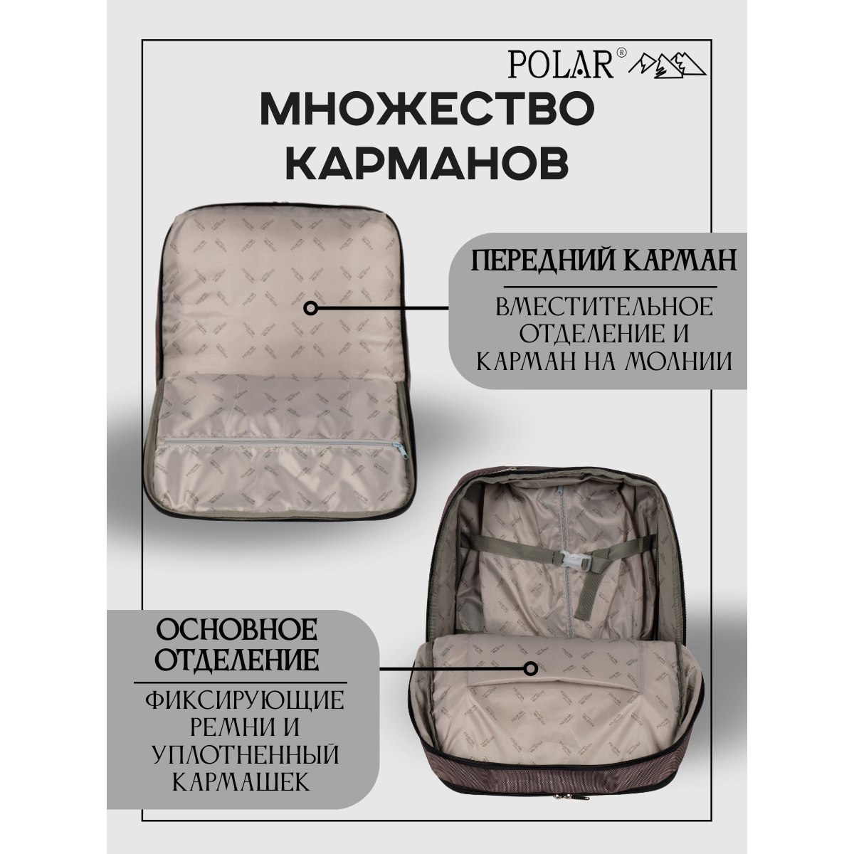 Эта модель дорожной сумки от компании POLAR отлично подойдет для краткосрочных путешествий или командировок. Сумка- чемодан состоит из двух независимых отделений, которые закрываются на двухсторонние молнии. Первое основное просторное отделение для ваших вещей, во втором отделении есть открытый уплотненный карман, в который можно положить документы или планшет, и карман на молнии. Также на передней стенке есть глубокий врезной карман на молнии и накладной карман на молнии, внутри которого два открытых сетчатых кармашка для мелочей.