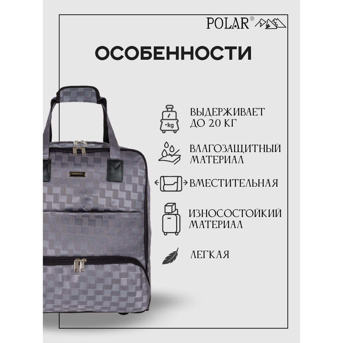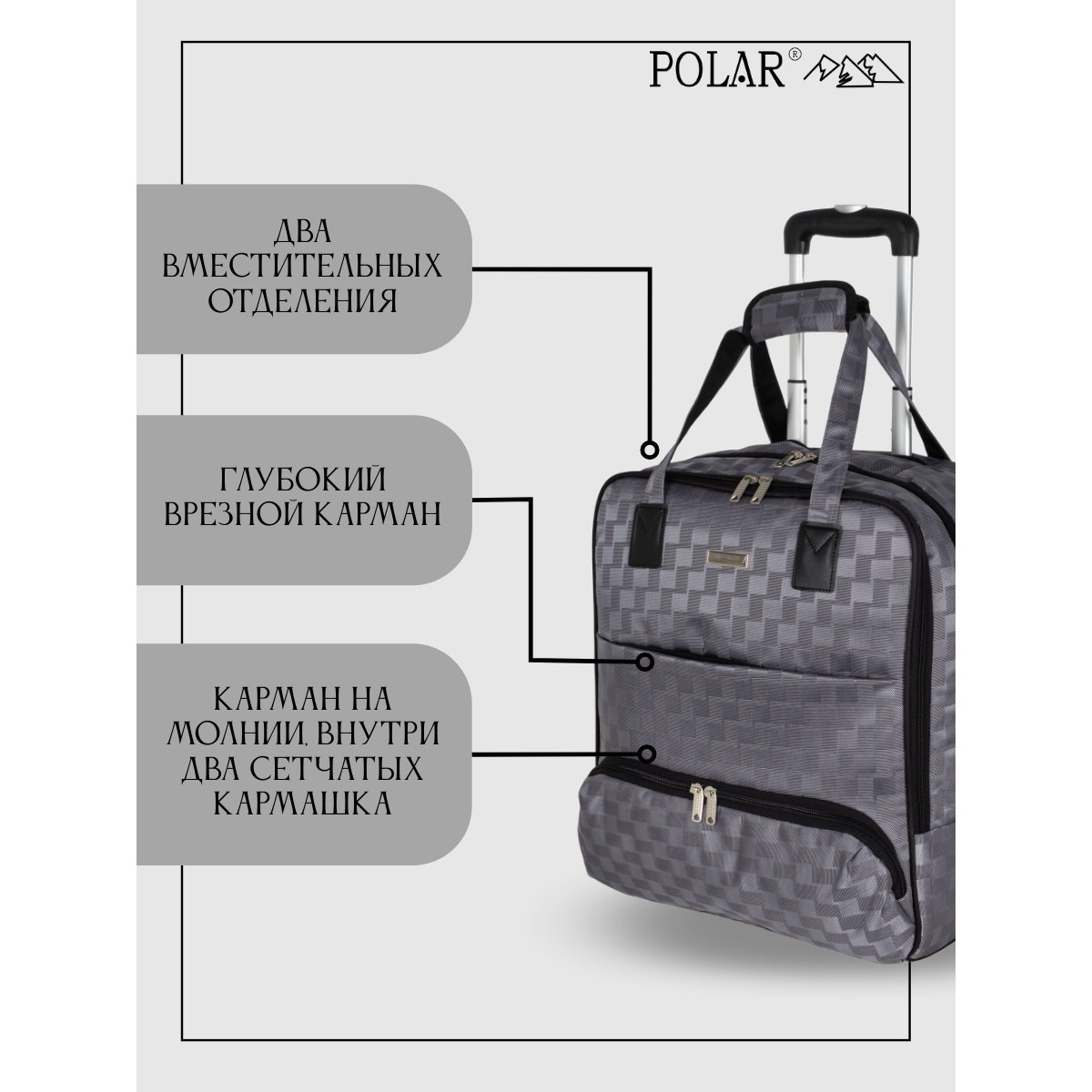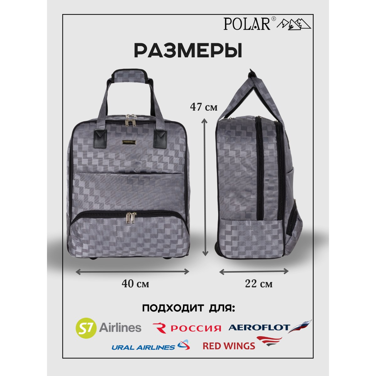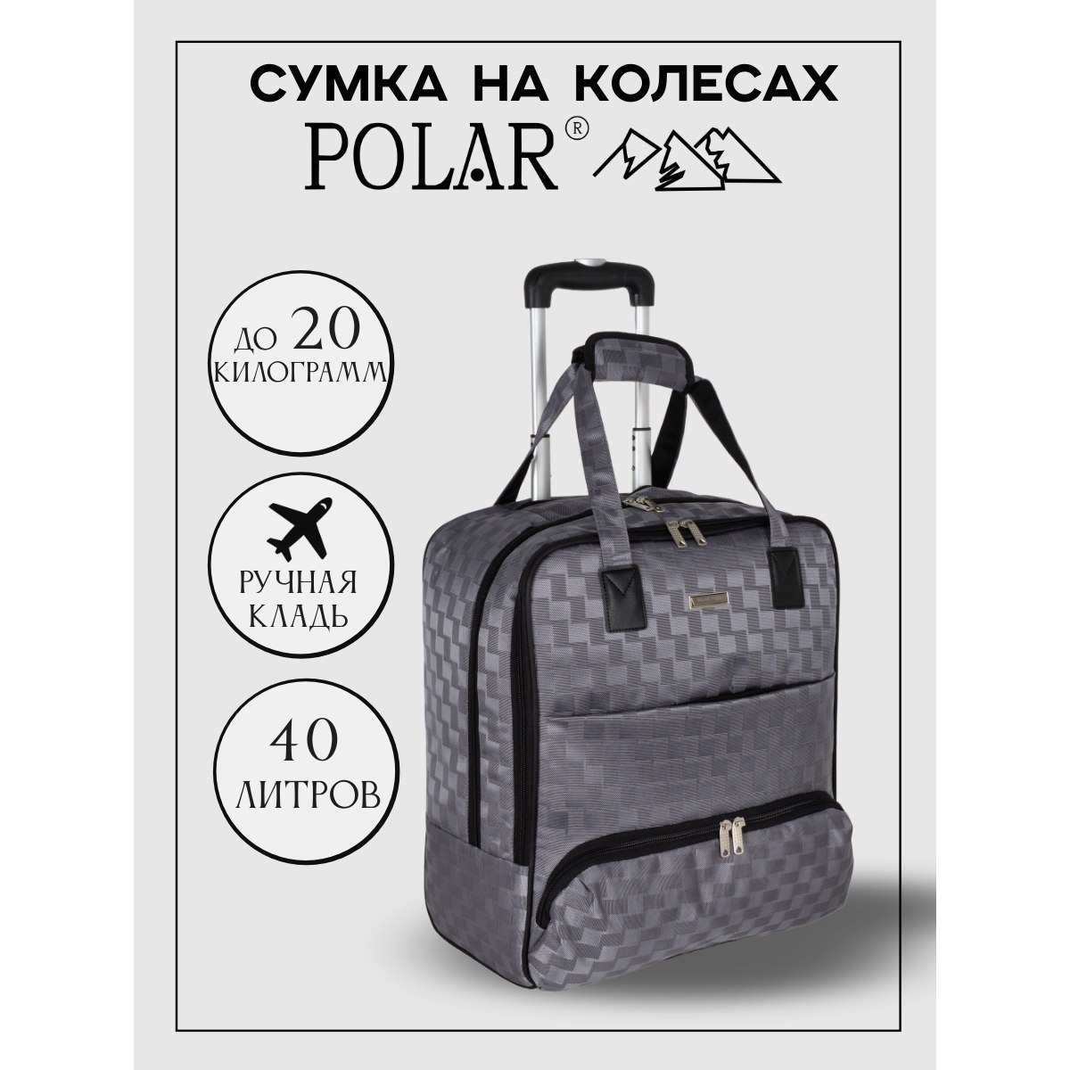 Сумка на колесах с тележкой, ручная кладь POLAR.