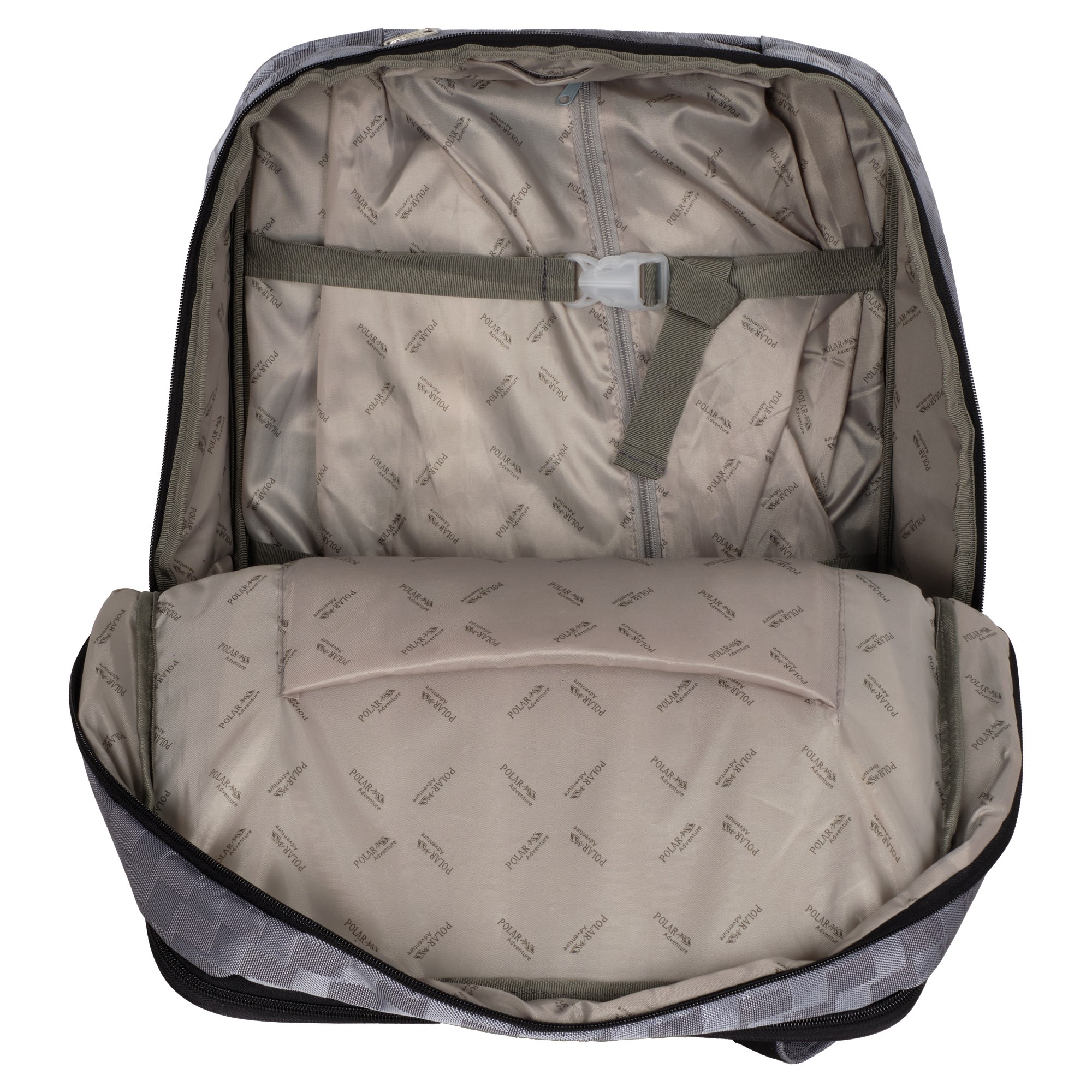 Эта модель дорожной сумки от компании POLAR отлично подойдет для краткосрочных путешествий или командировок. Сумка- чемодан состоит из двух независимых отделений, которые закрываются на двухсторонние молнии. Первое основное просторное отделение для ваших вещей, во втором отделении есть открытый уплотненный карман, в который можно положить документы или планшет, и карман на молнии. Также на передней стенке есть глубокий врезной карман на молнии и накладной карман на молнии, внутри которого два открытых сетчатых кармашка для мелочей.