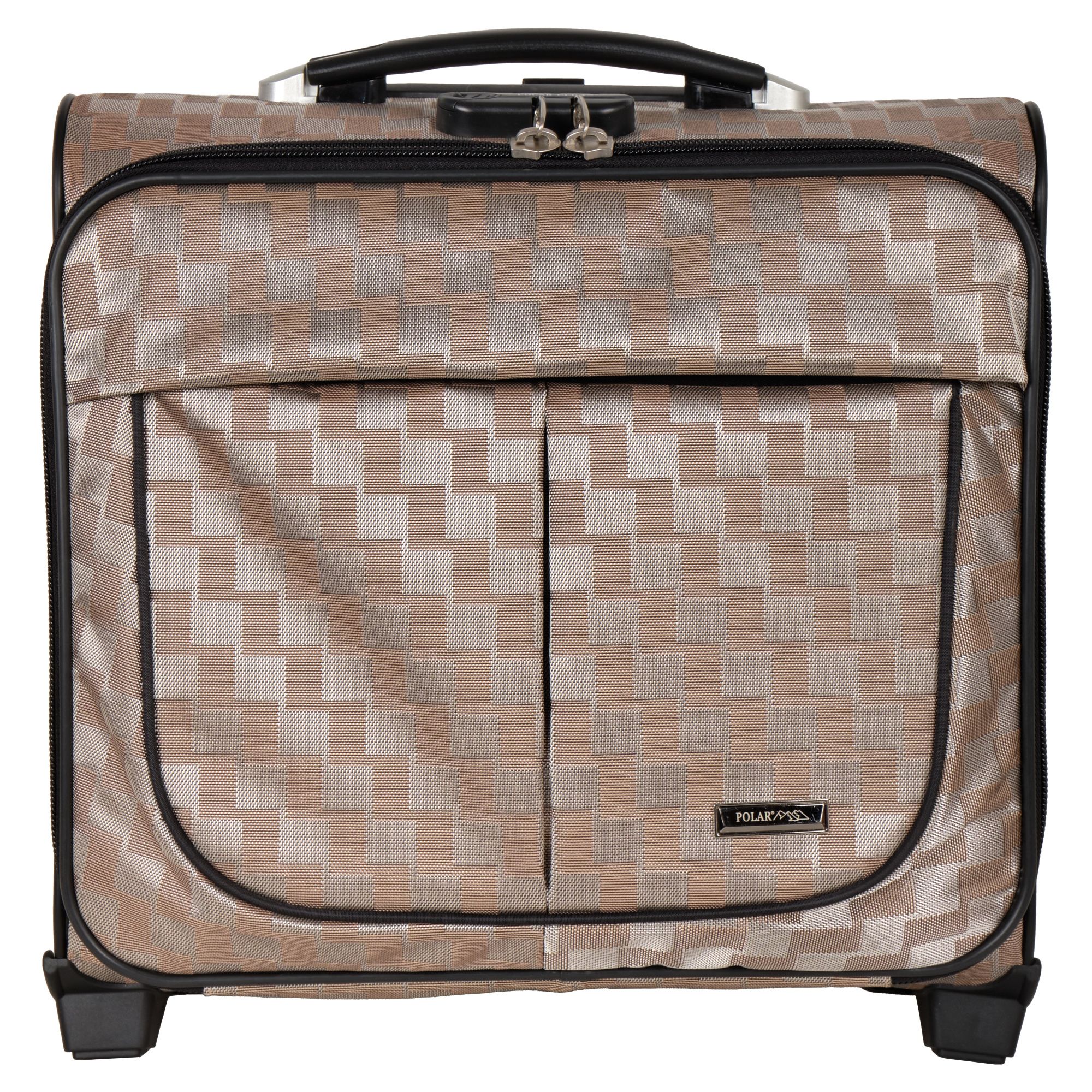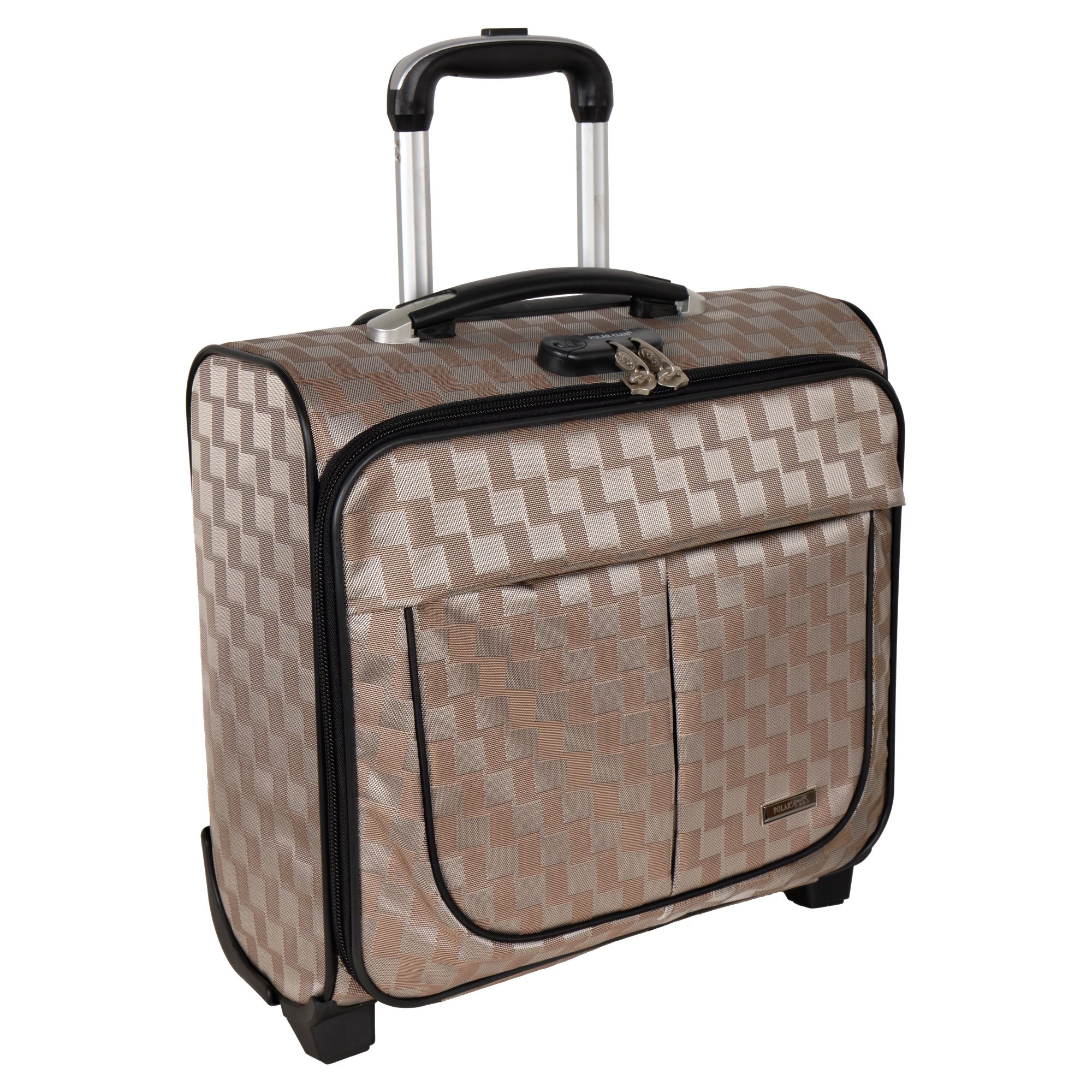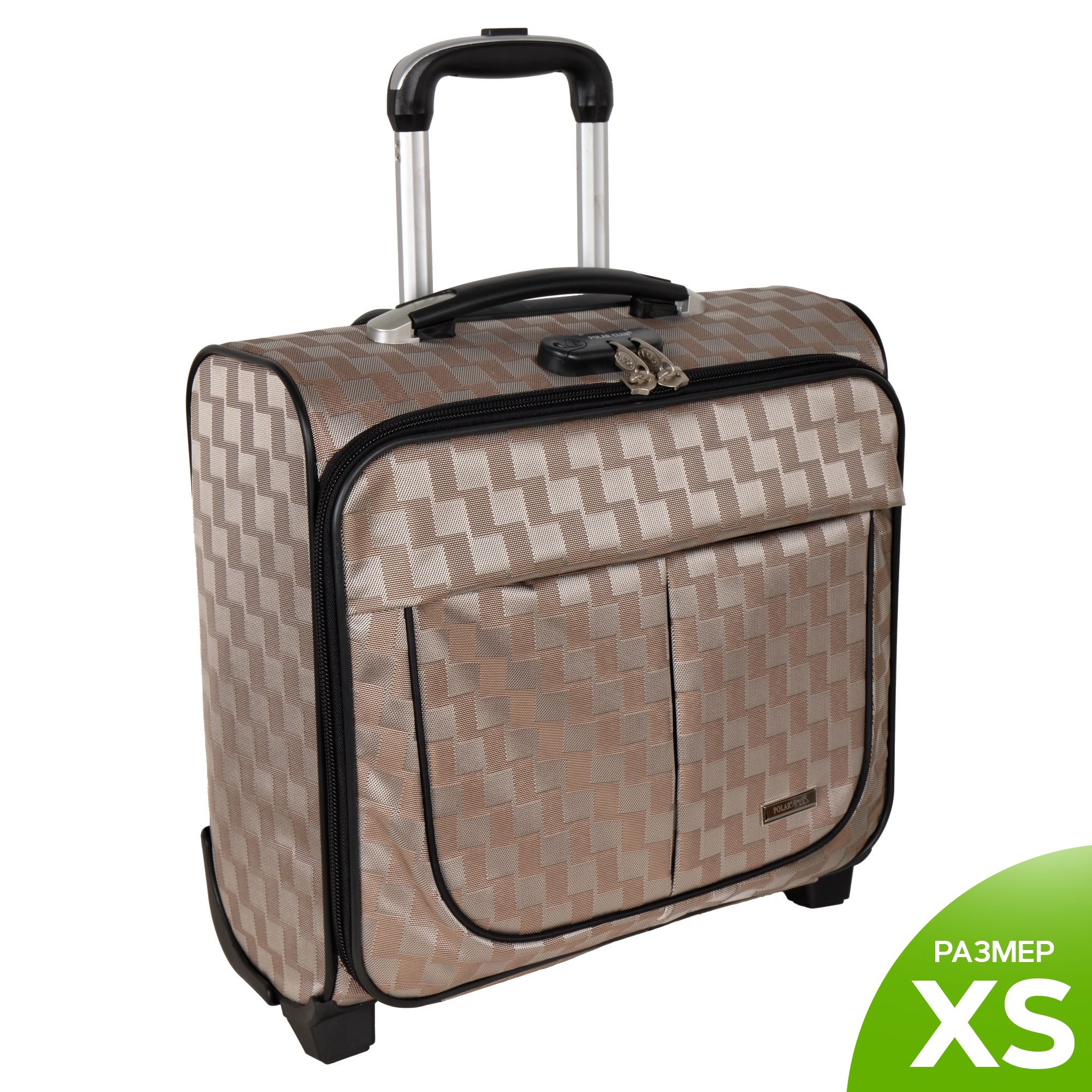 Чемодан от компании "Polar" на двух колёсах выполнен из прочного материала (нейлона и полиэстера). Подходит как ручная кладь. Чемодан закрывается на молнию, присутствует также встроенный кодовый замок.Внутри есть одно большое отделение , в котором присутствуют ремни для фиксации вещей, отделение для ноутбука и маленький карман на молнии для документов. Снаружи расположен объёмный карман на молнии для мелких вещей. У чемодана есть небольшая ручка для переноски и металлическая ручка, которая выдвигается на 67 см..