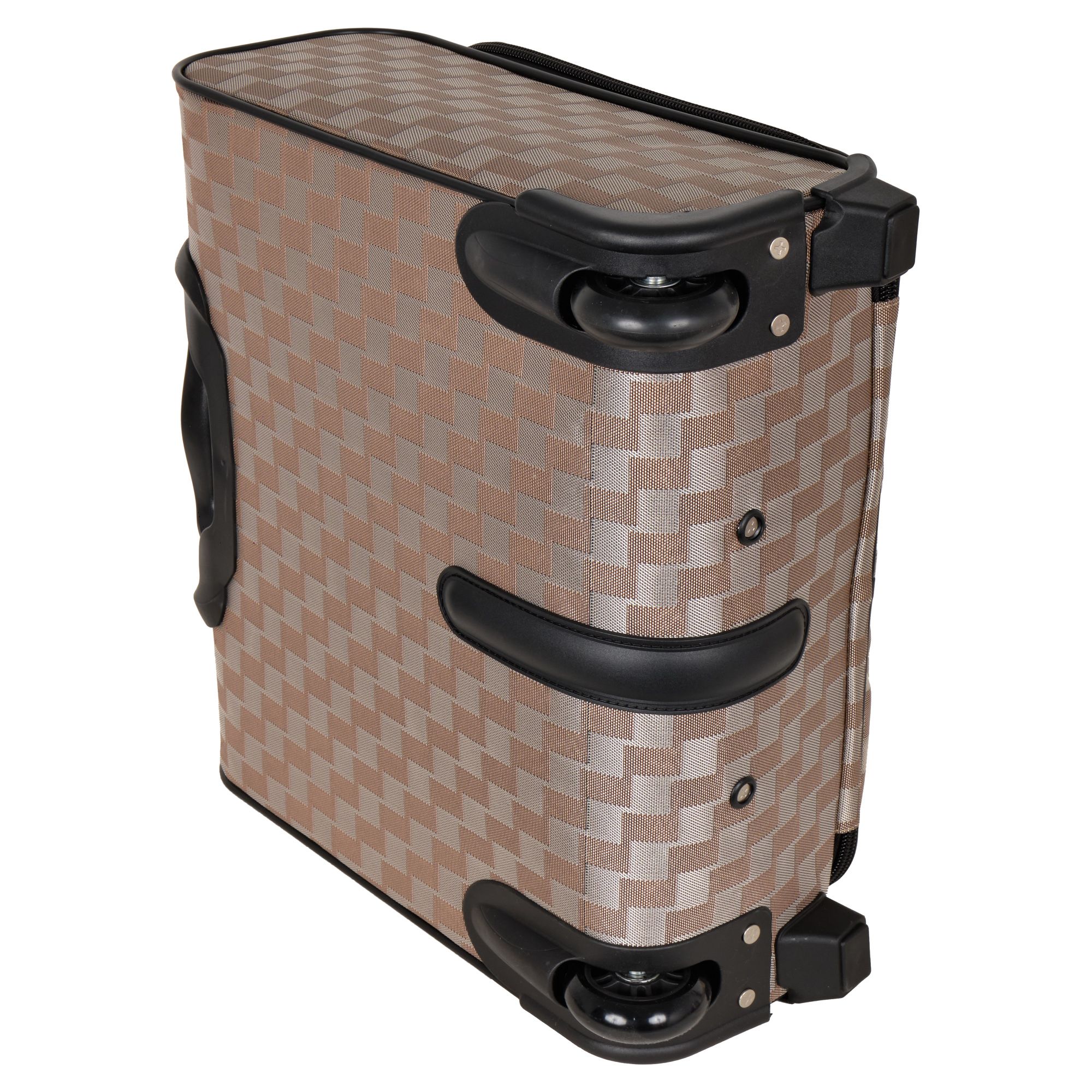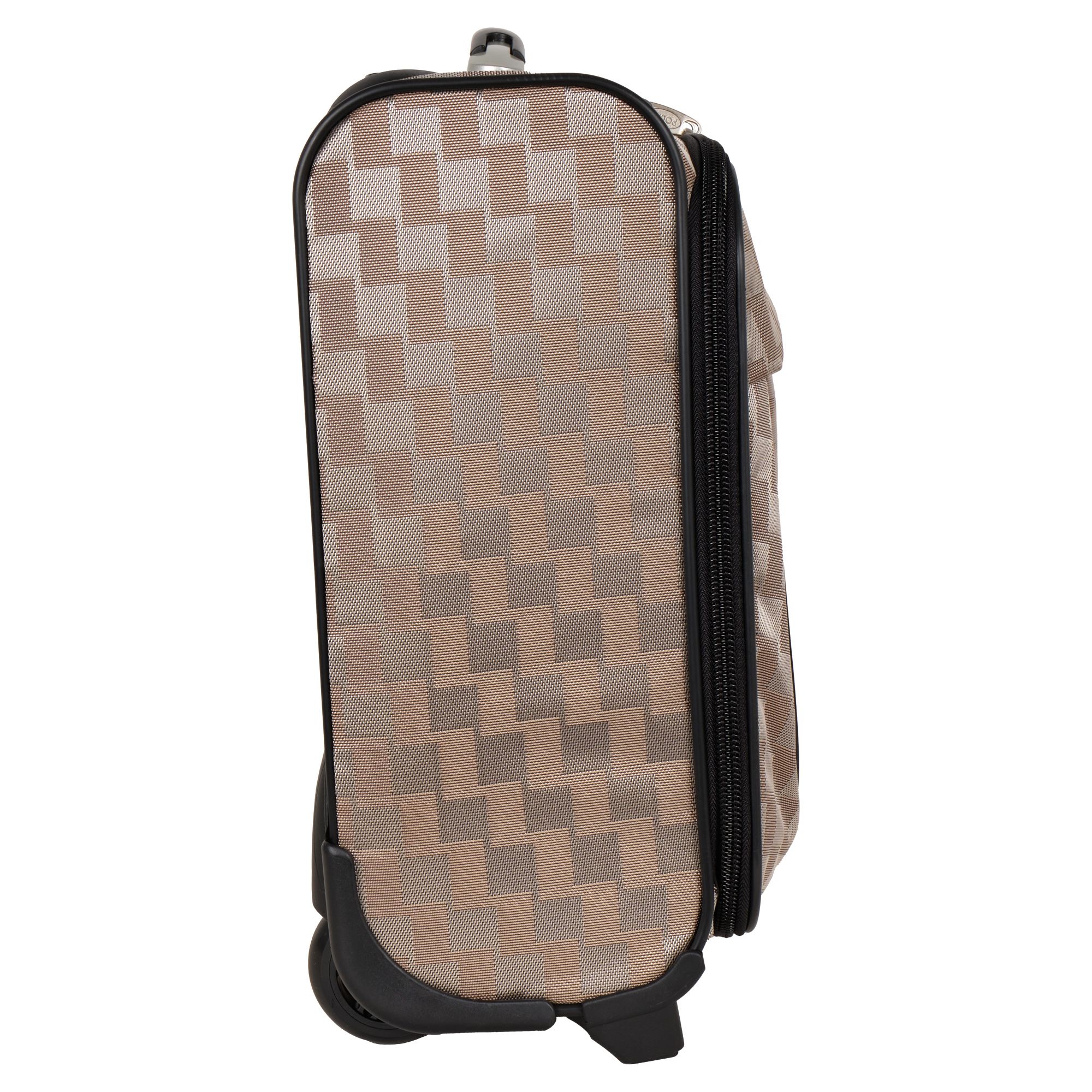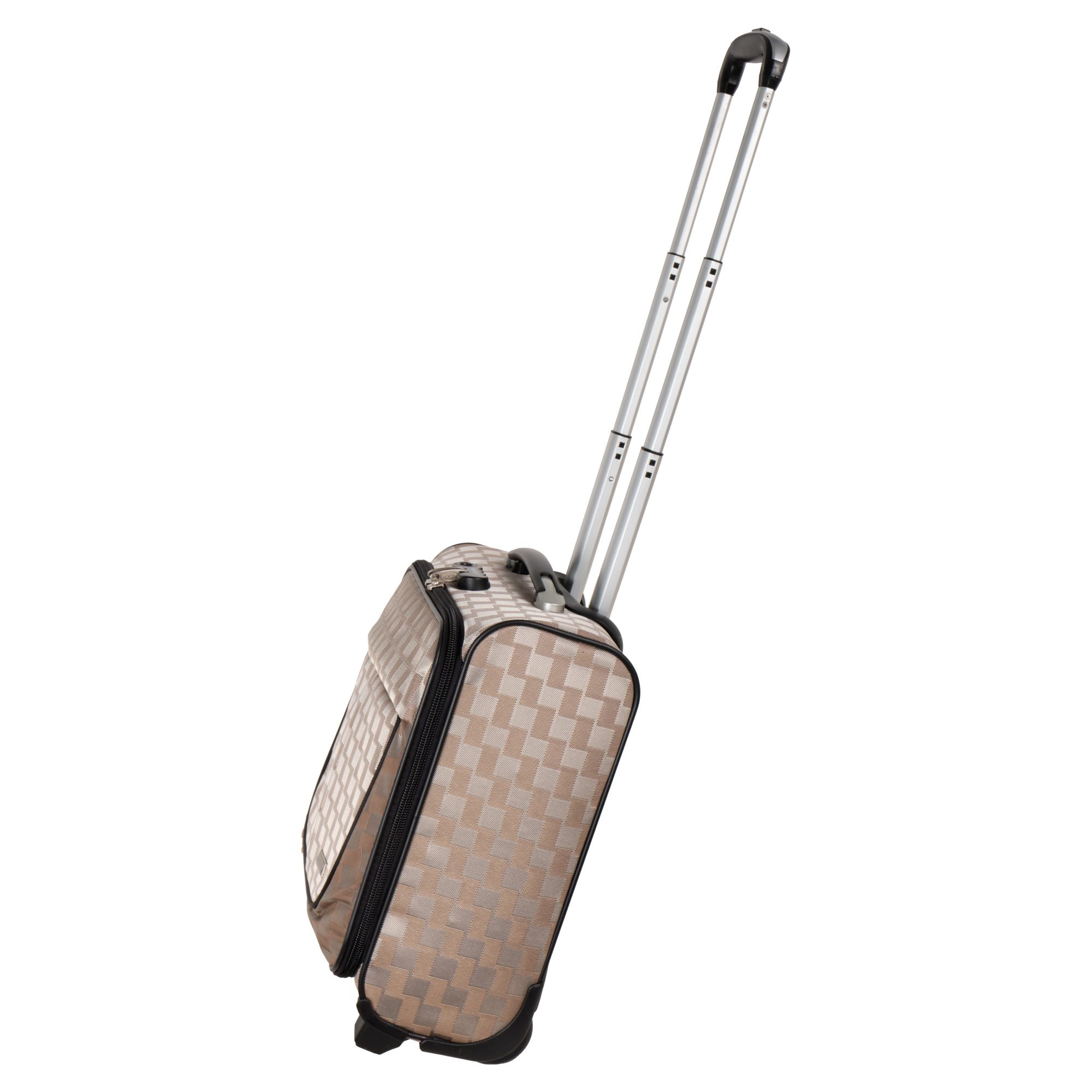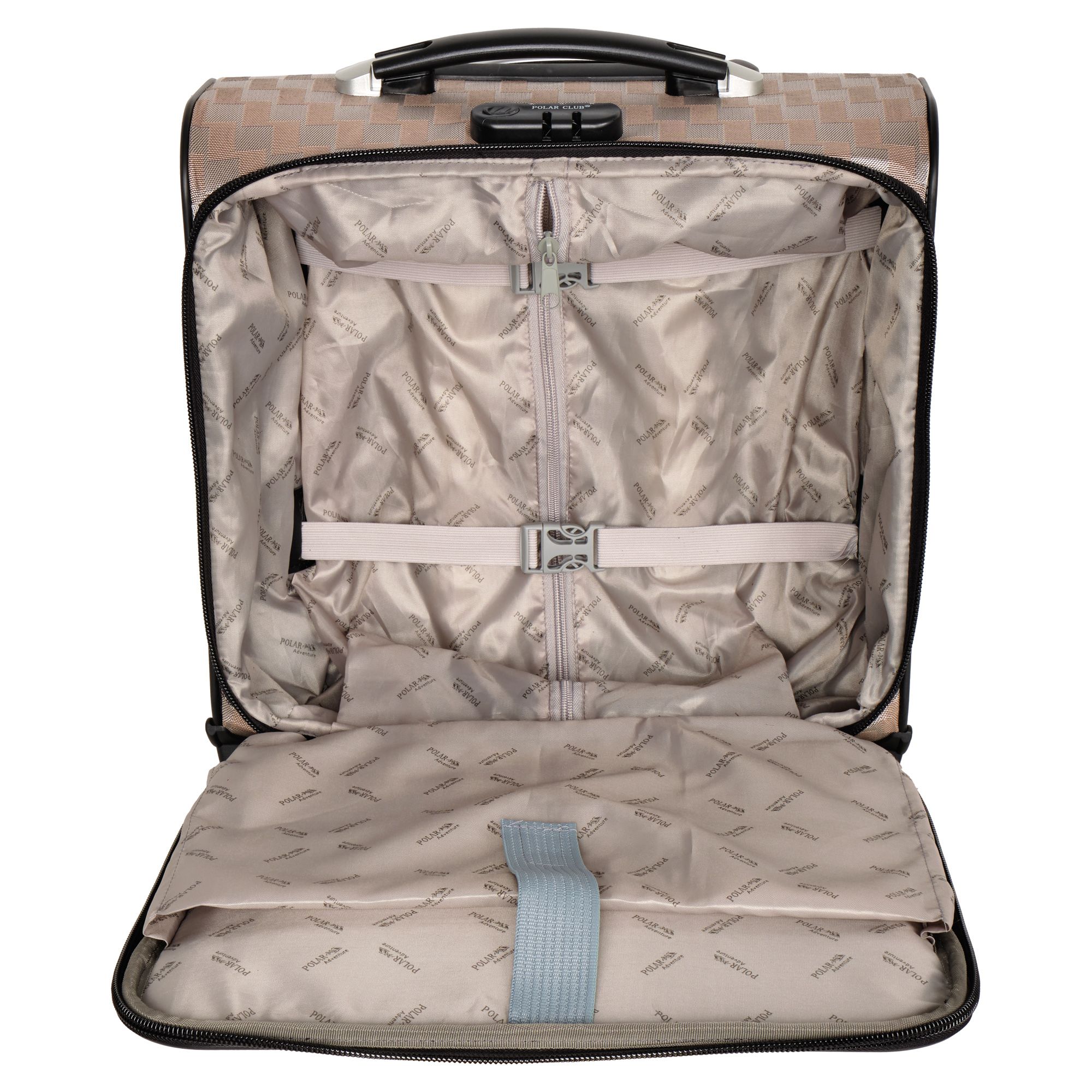 Чемодан от компании "Polar" на двух колёсах выполнен из прочного материала (нейлона и полиэстера). Подходит как ручная кладь. Чемодан закрывается на молнию, присутствует также встроенный кодовый замок.Внутри есть одно большое отделение , в котором присутствуют ремни для фиксации вещей, отделение для ноутбука и маленький карман на молнии для документов. Снаружи расположен объёмный карман на молнии для мелких вещей. У чемодана есть небольшая ручка для переноски и металлическая ручка, которая выдвигается на 67 см..