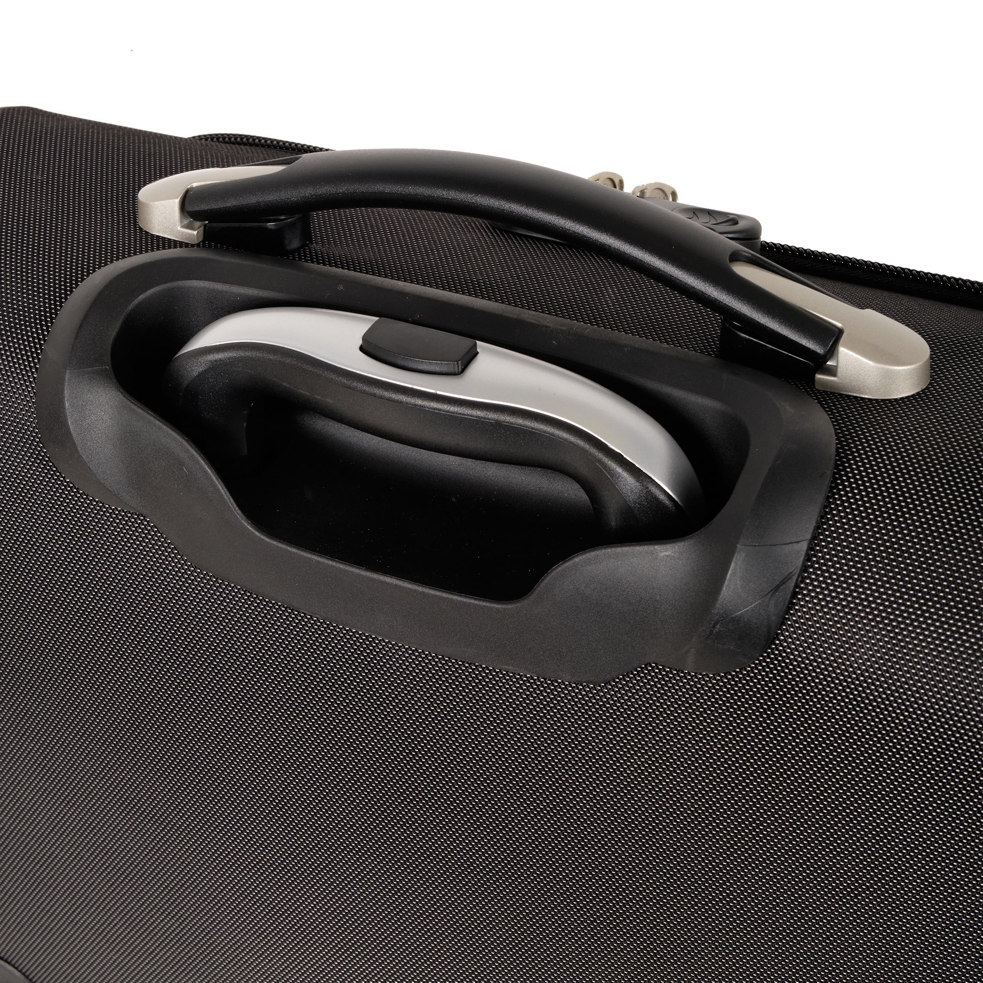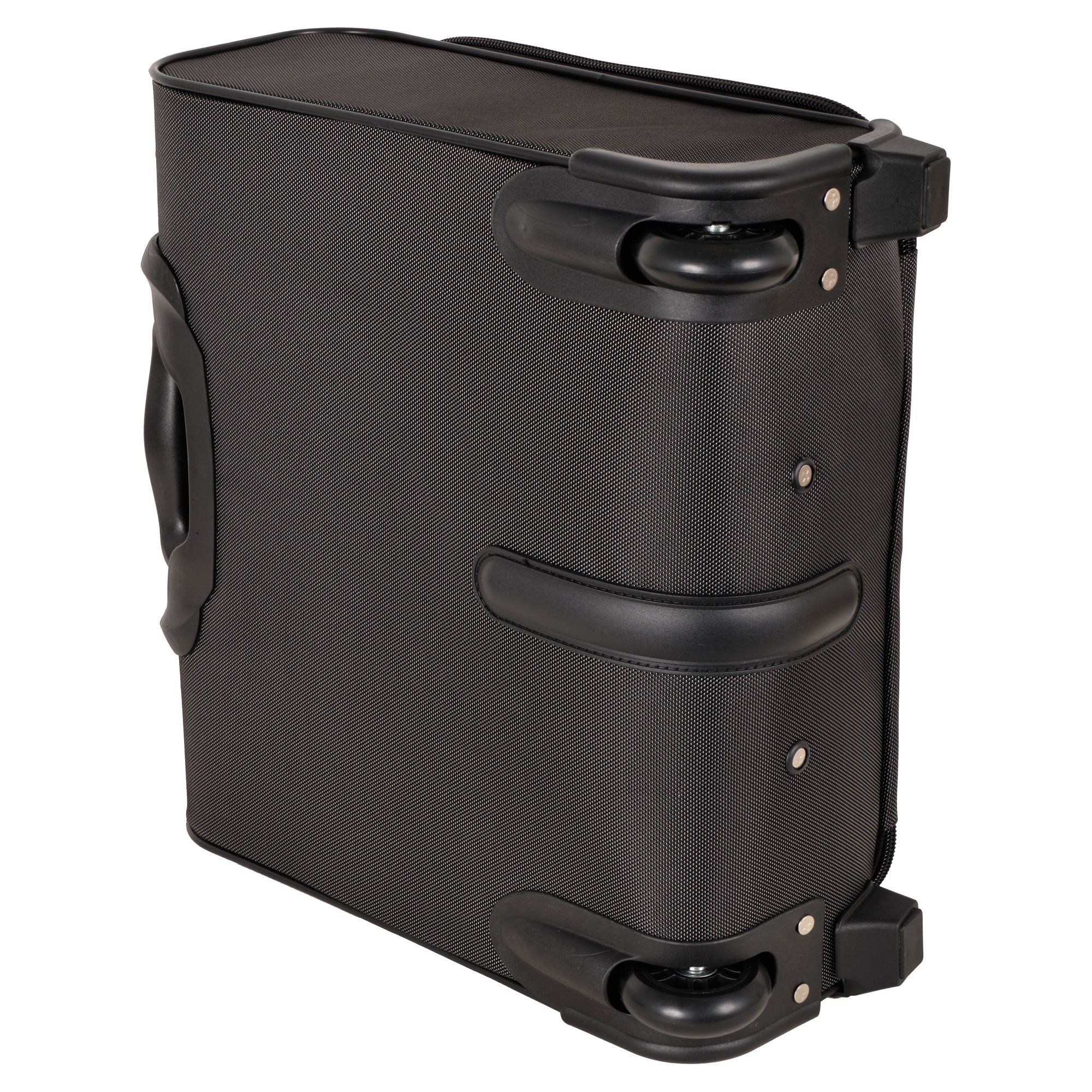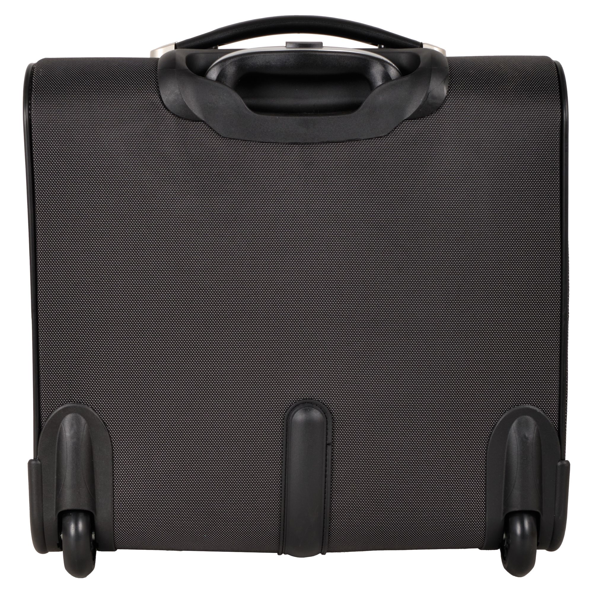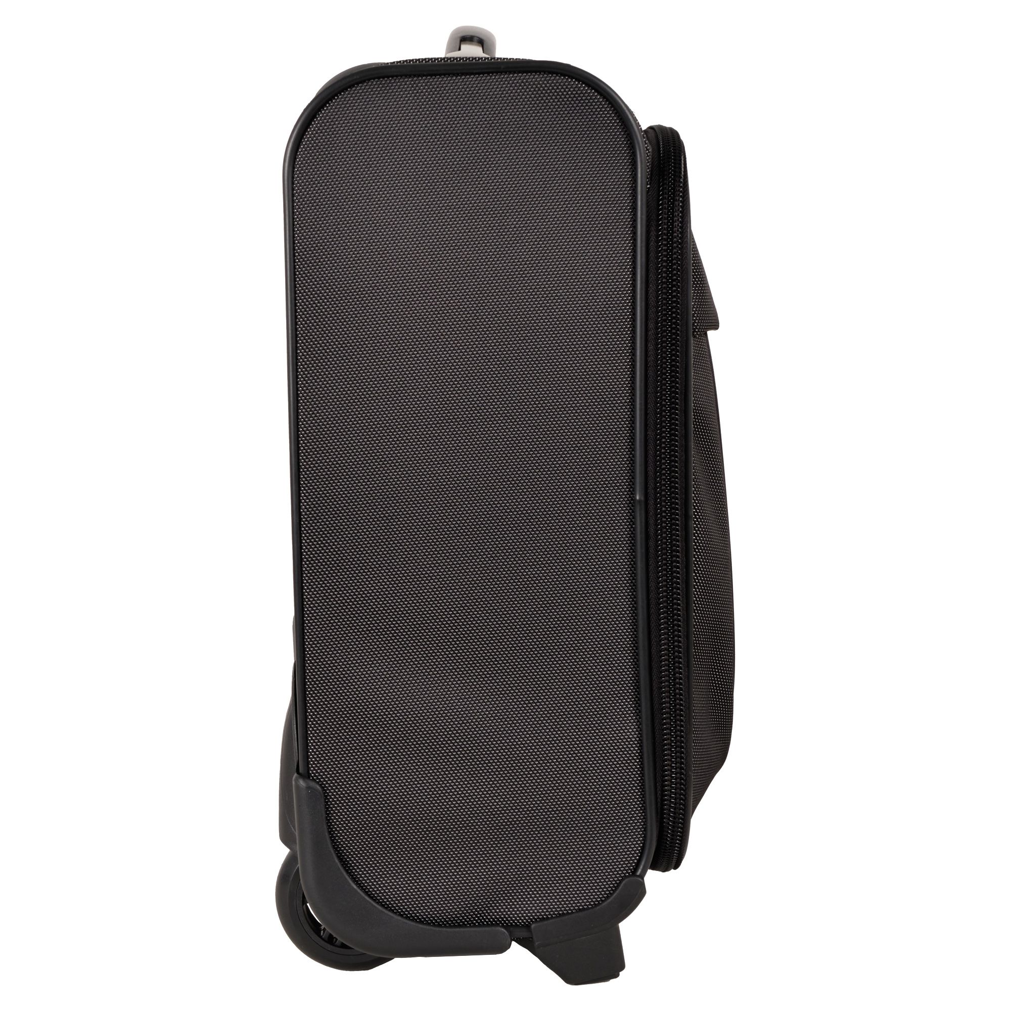 Чемодан от компании "Polar" на двух колёсах выполнен из прочного материала (нейлона и полиэстера). Подходит как ручная кладь. Чемодан закрывается на молнию, присутствует  также встроенный кодовый замок.Внутри есть одно большое отделение , в котором присутствуют ремни для фиксации вещей, отделение для ноутбука и маленький карман на молнии для документов. Снаружи расположен объёмный карман на молнии для мелких вещей. У чемодана есть небольшая ручка для переноски и металлическая ручка, которая выдвигается на 67 см..