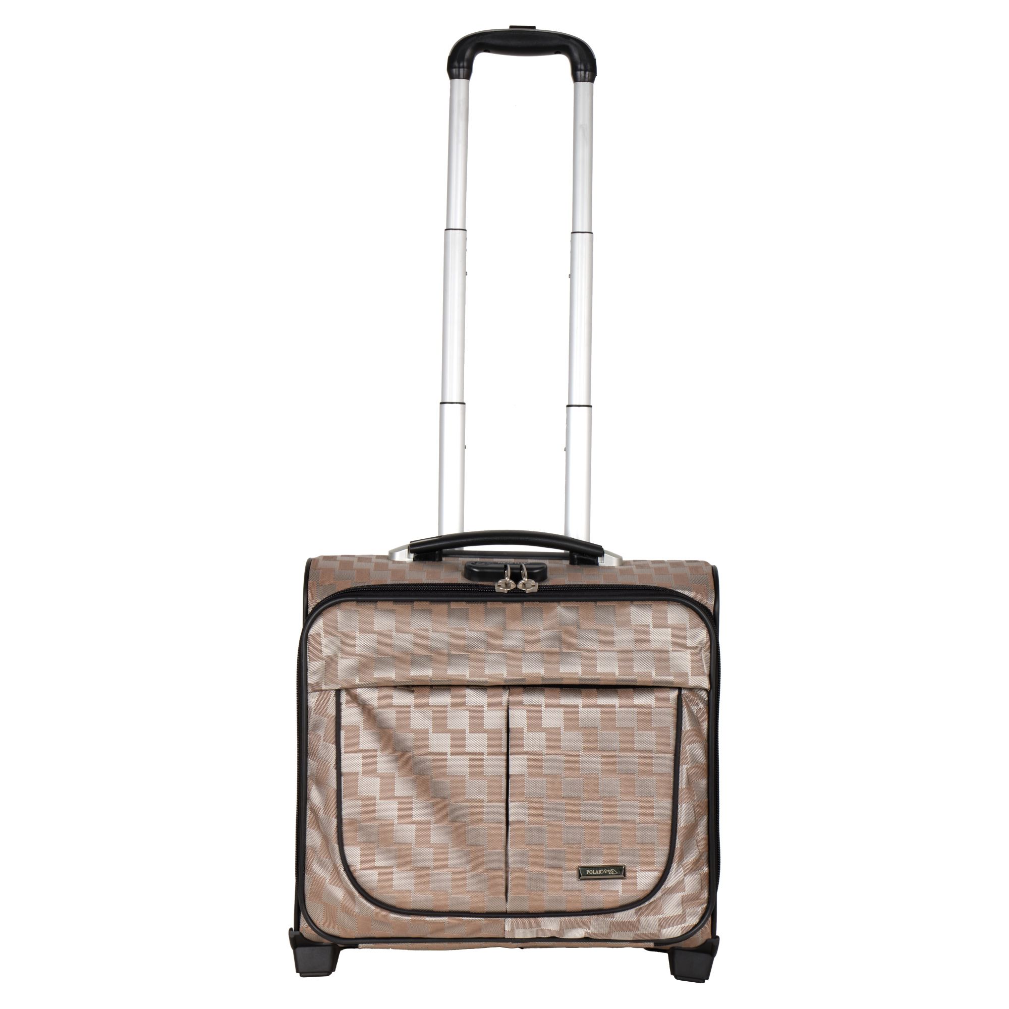 Чемодан от компании "Polar" на двух колёсах выполнен из прочного материала (нейлона и полиэстера). Подходит как ручная кладь. Чемодан закрывается на молнию, присутствует также встроенный кодовый замок.Внутри есть одно большое отделение , в котором присутствуют ремни для фиксации вещей, отделение для ноутбука и маленький карман на молнии для документов. Снаружи расположен объёмный карман на молнии для мелких вещей. У чемодана есть небольшая ручка для переноски и металлическая ручка, которая выдвигается на 67 см..