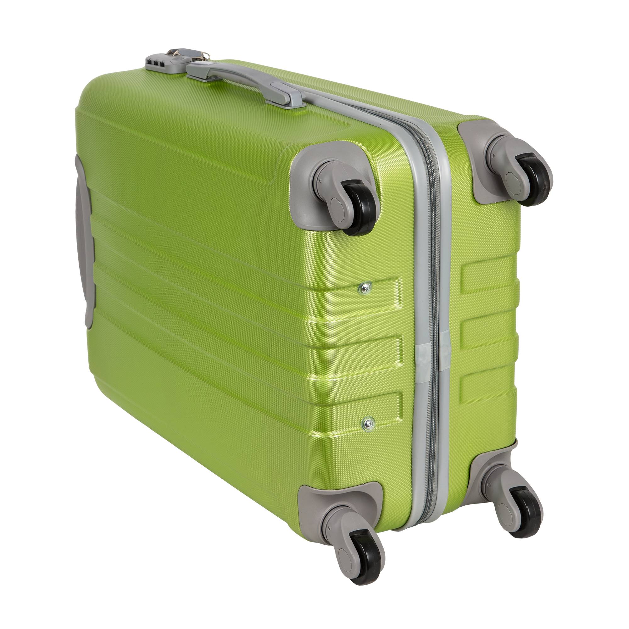 Неубиваемые пластиковые чемоданы на четырех колесиках с кодовым замком и выдвижной тележкой.Внутри подкладка из полиэстра.