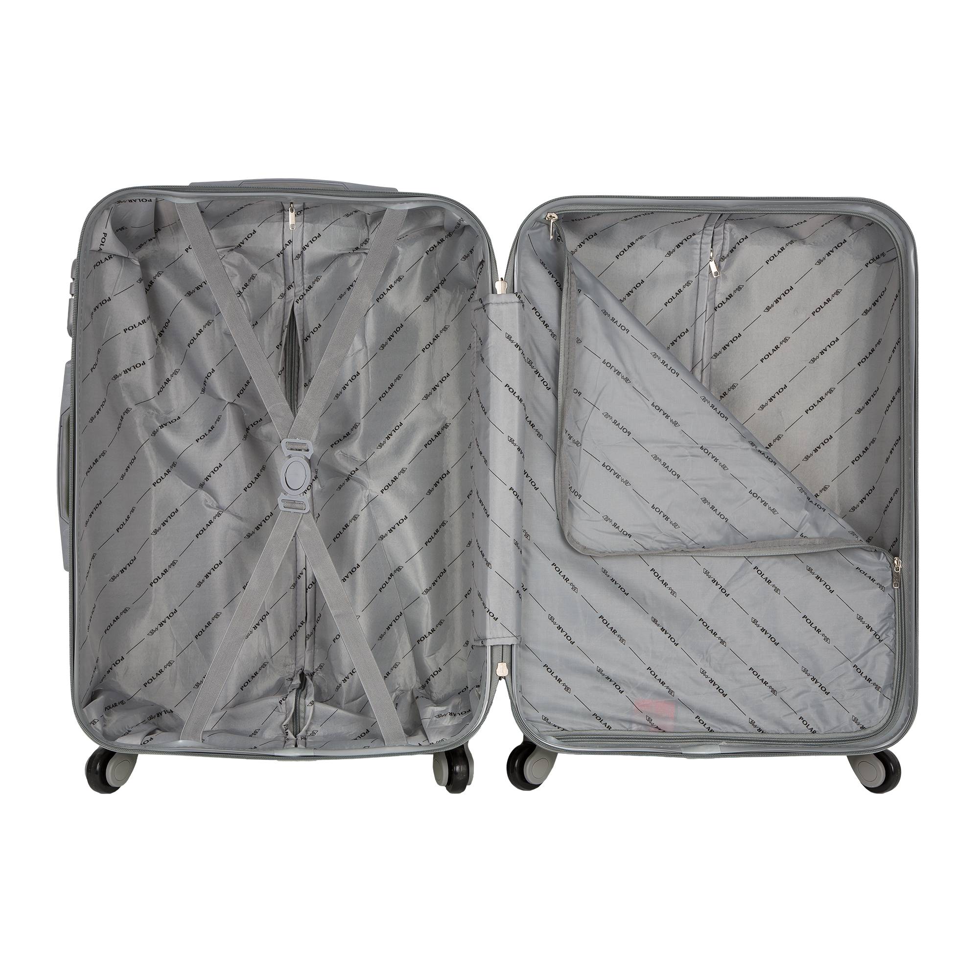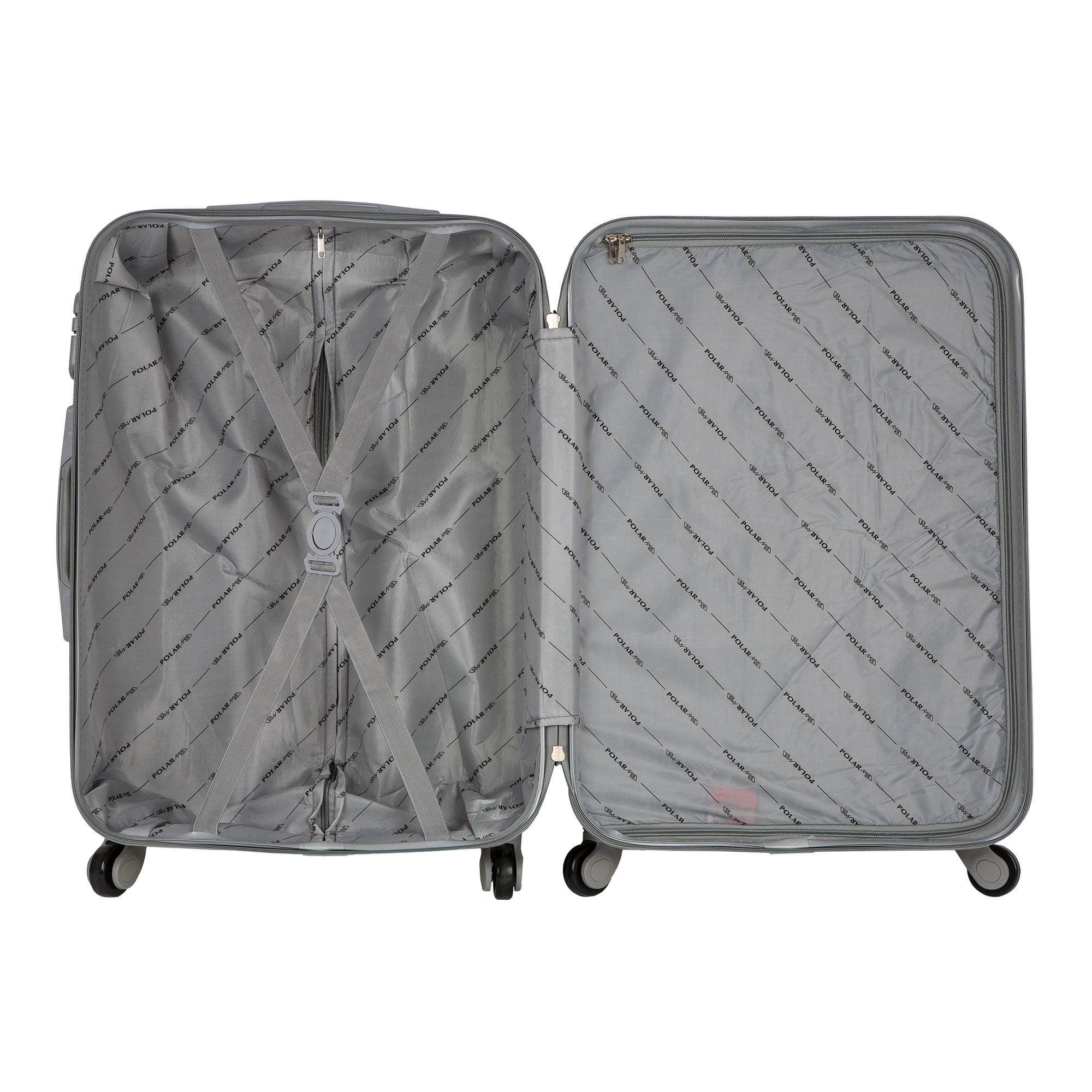 Одна секция чемодана с креплением резинками для одежды.Вторая секция застегивается на молнию для удобства упаковки вещей.