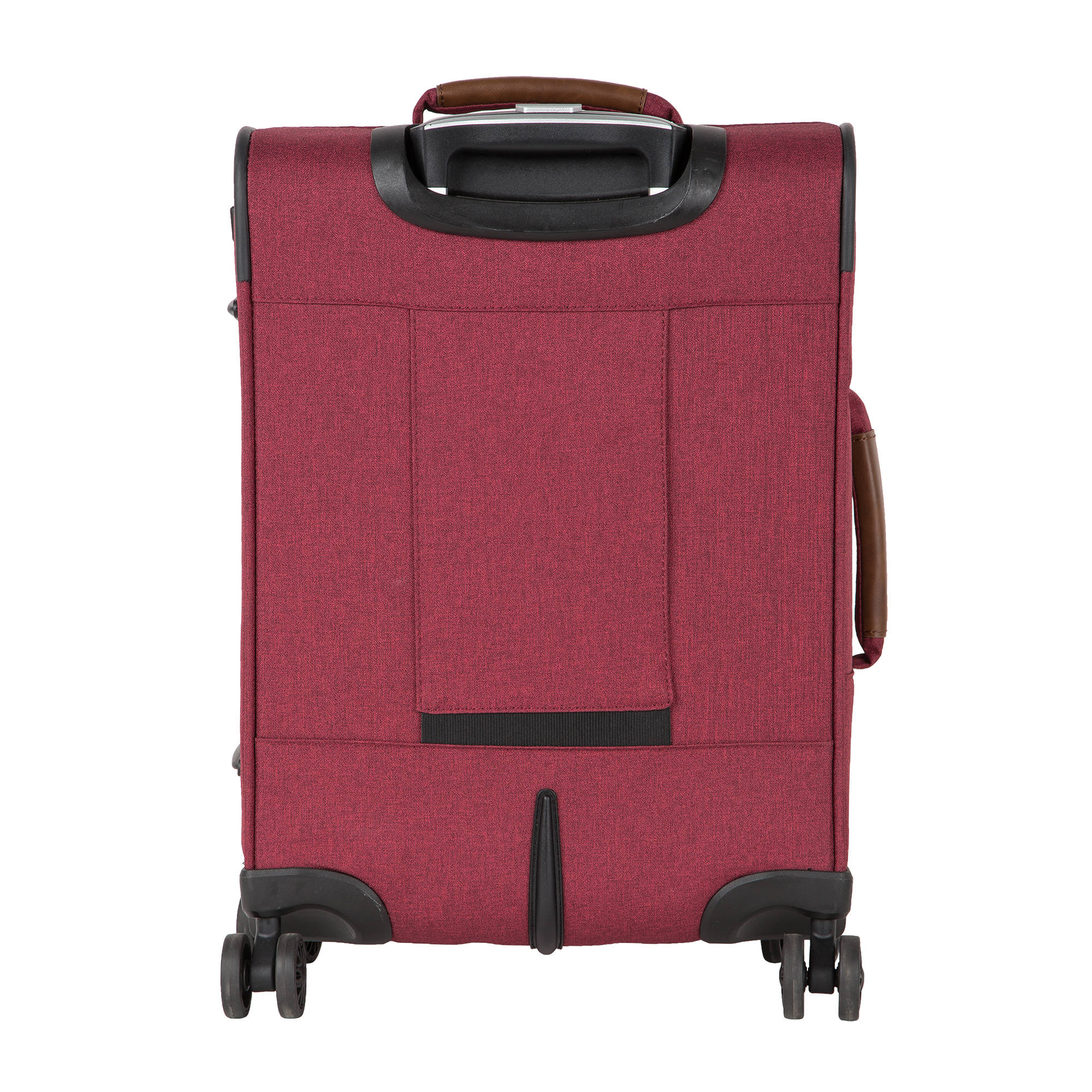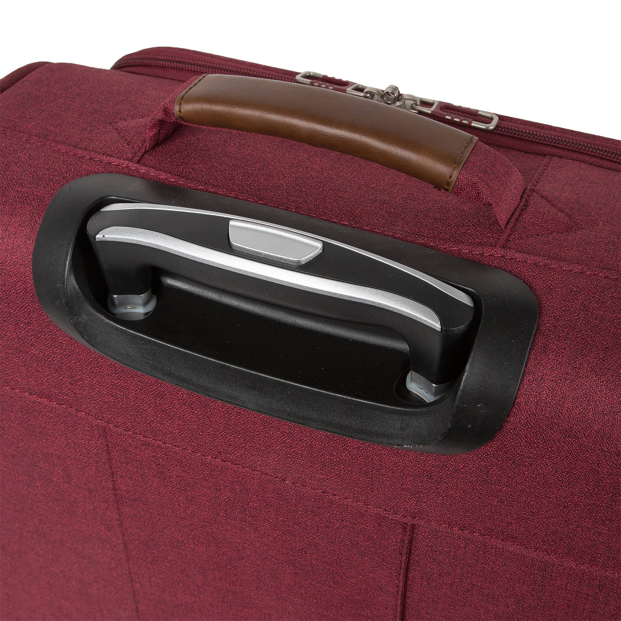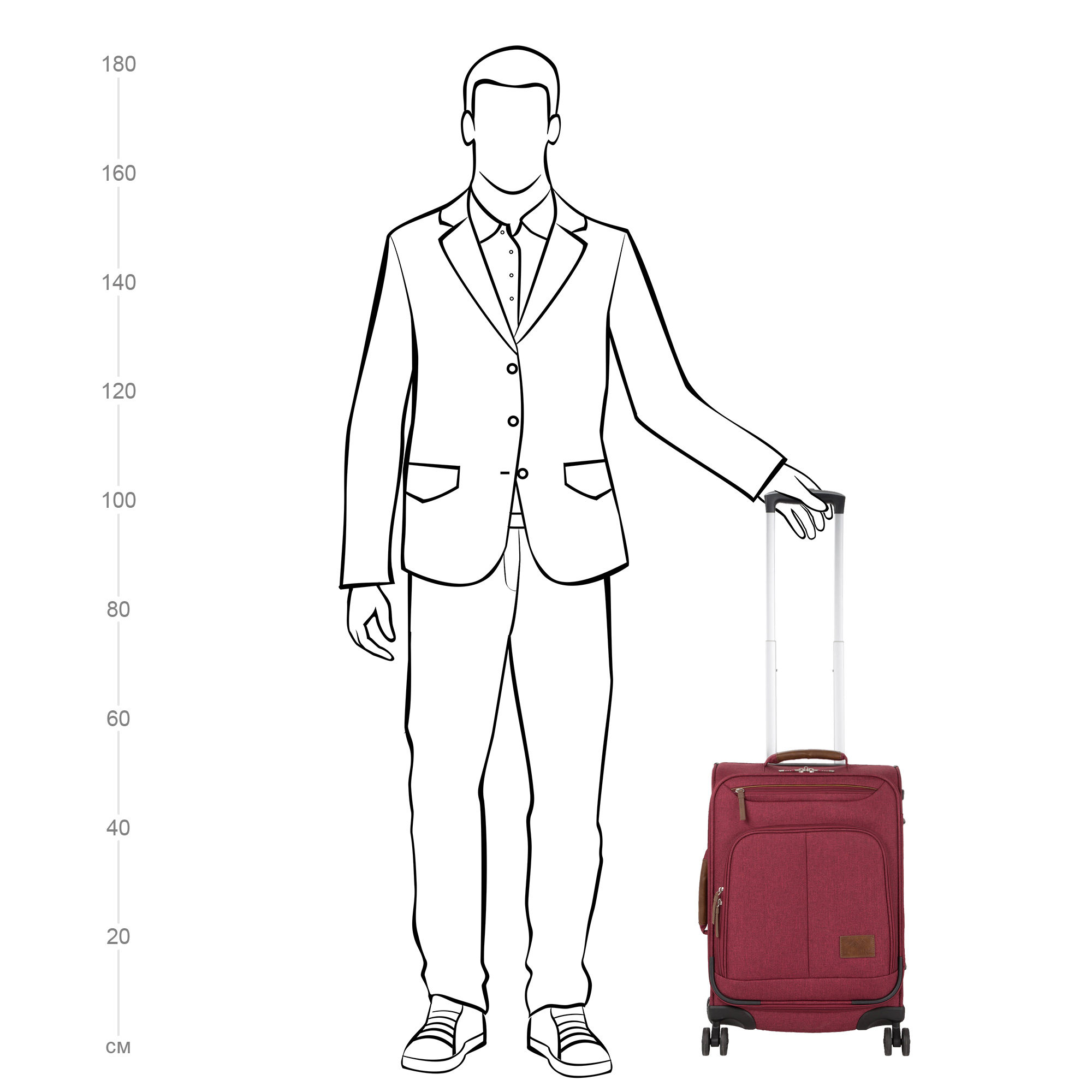 Стильный чемодан модной расцветки имеет в наличии две ручки для переноски сбоку и сверху чемодана, а также выдвижную ручку, максимальная высота которой составляет 105 см. Кодовый замок в комплект не входит.