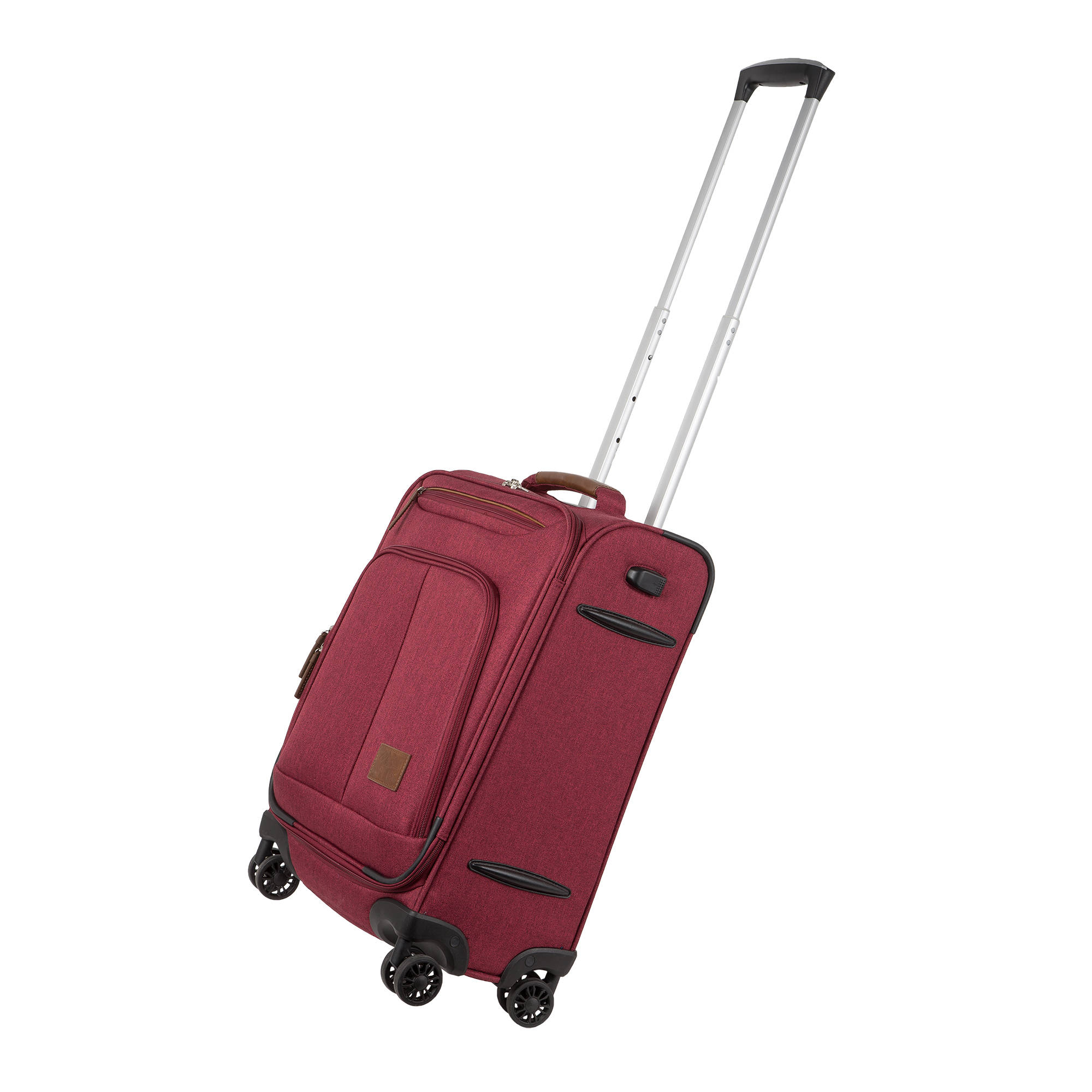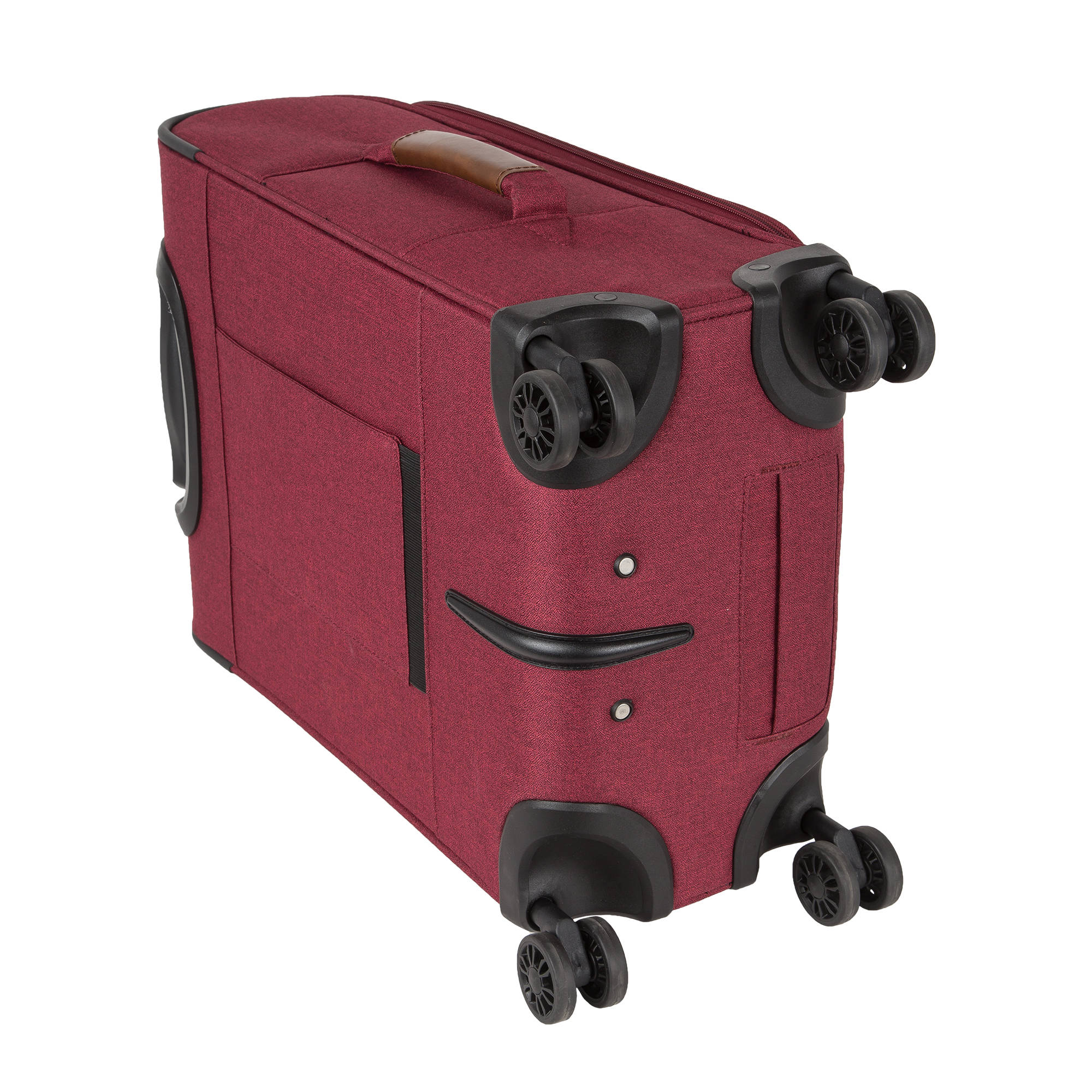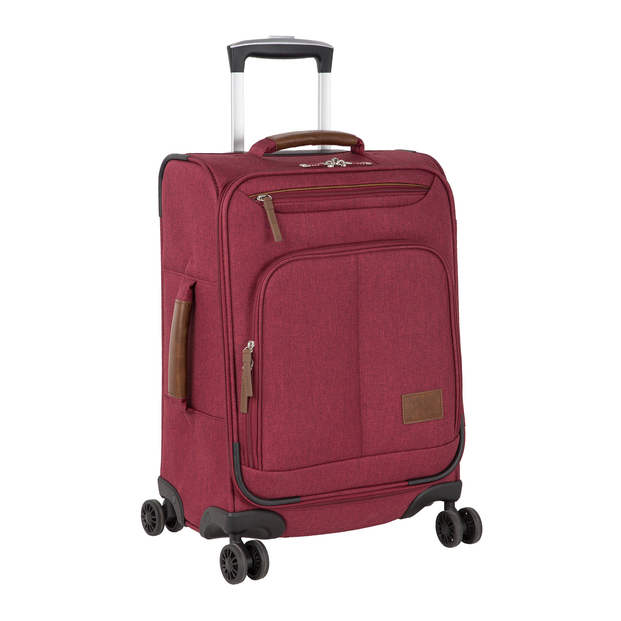 Стильный чемодан модной расцветки имеет в наличии две ручки для переноски сбоку и сверху чемодана, а также выдвижную ручку, максимальная высота которой составляет 105 см. Кодовый замок в комплект не входит.