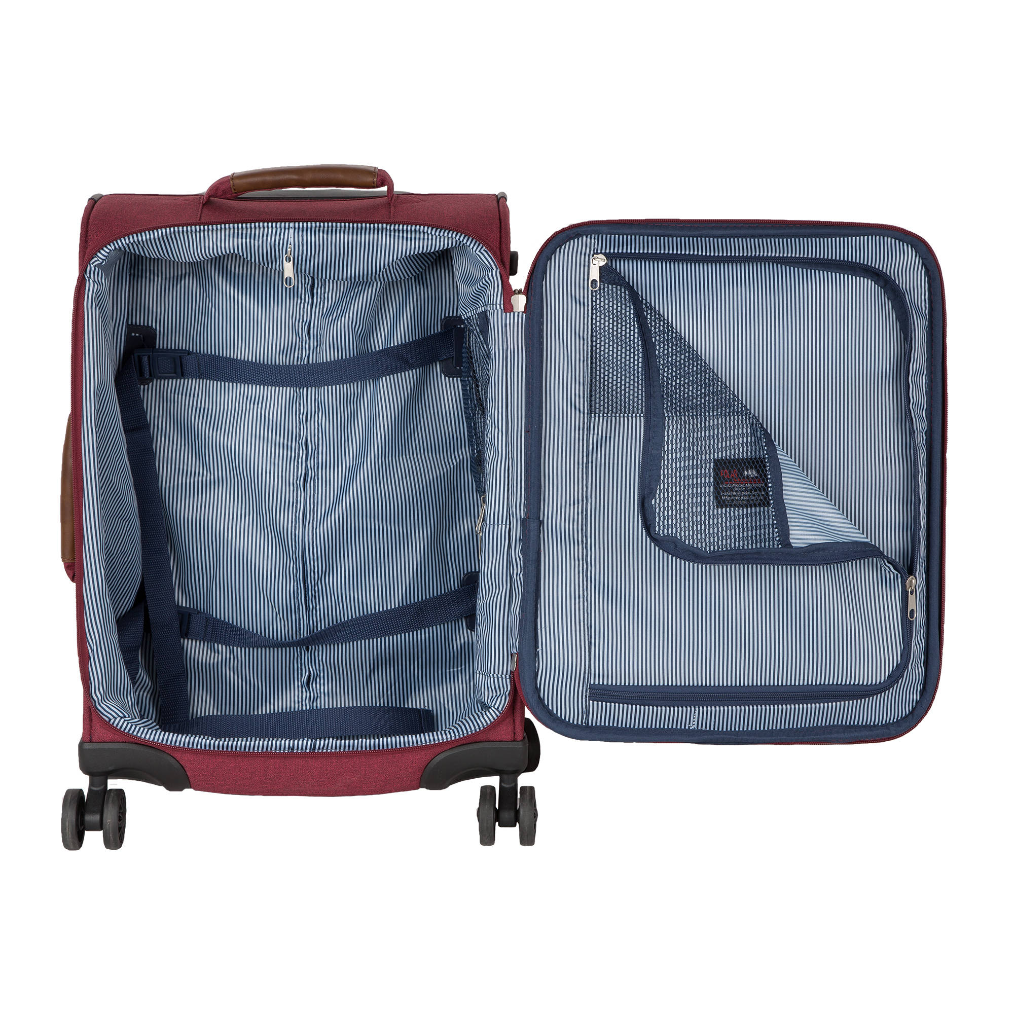 Суперлегкий четырёхколёсный чемодан POLAR. Основное отделение чемодана закрывается на молнию. Впереди два кармана на молнии. Внутри стяжные ремни и карман на молнии. Есть внешний выход USB для подзарядки устройств от PowerBank. Четырёхколёсный чемодан более маневренный и удобный по сравнению с двухколёсным - 4 колеса вращаются на 360 градусов.