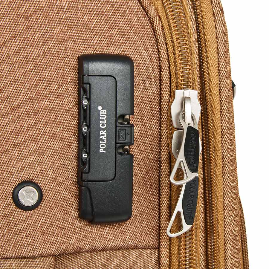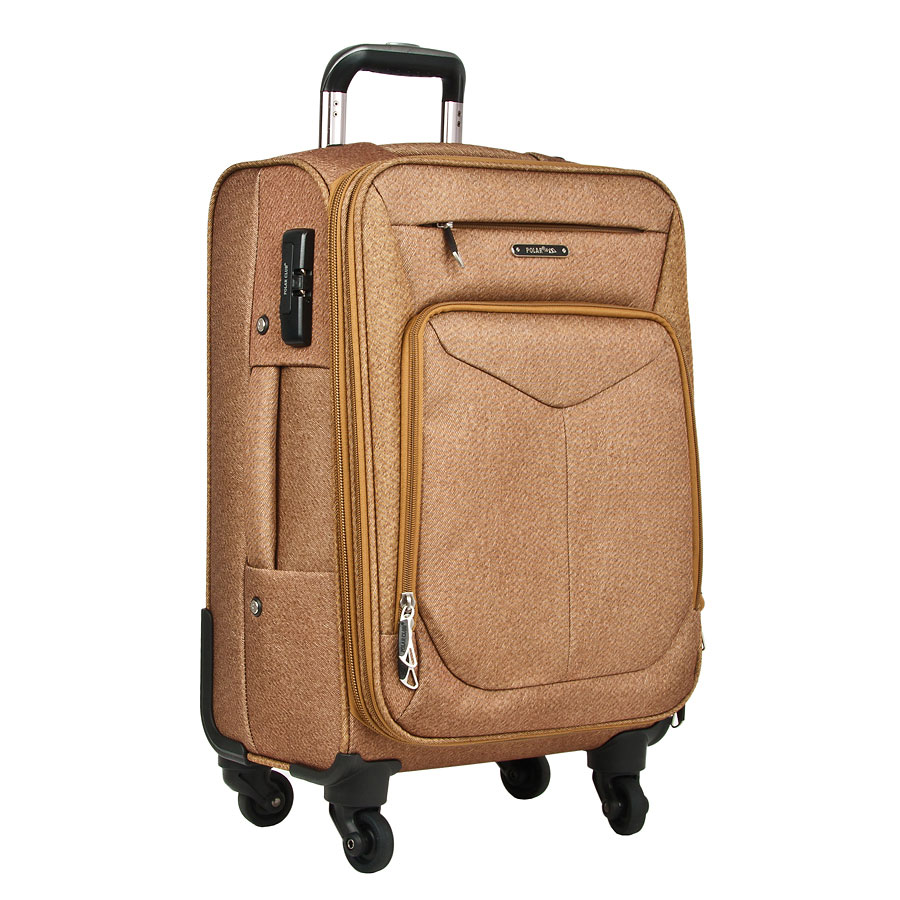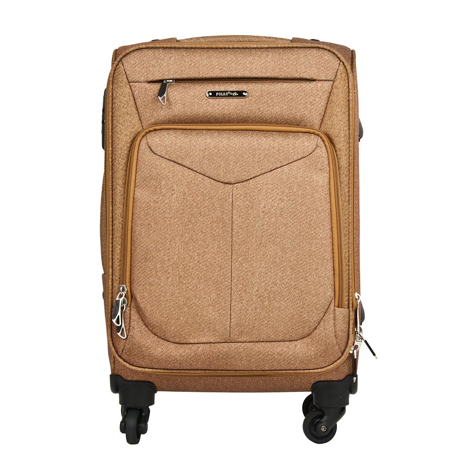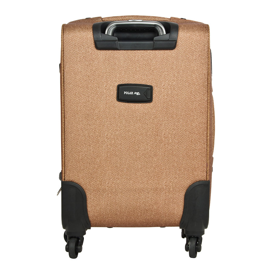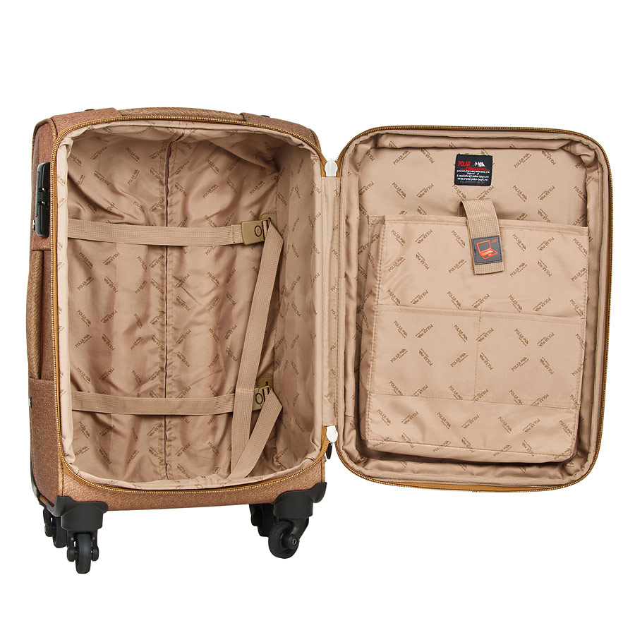 Чемодан Polar Спиннер малый. Основное отделение на подкладке из нейлона имеет фиксирующие ремни и карман-портплед для глаженых вещей. Также, основное отделение можно увеличить в объеме, расстегнув молнию, при этом чемодан увеличивается в толщину на 5см. Выдвигающаяся ручка расположена внутри корпуса чемодана, что способствует большей прочности и защите от ударов при разгрузке/погрузке чемодана. Выдвигающаяся ручка фиксируется в двух положениях. Снаружи на передней стенке — большой карман на молнии. Есть кодовый замок. Надежные четыре прорезиненные колеса на подшипниках, диаметр 4 см.