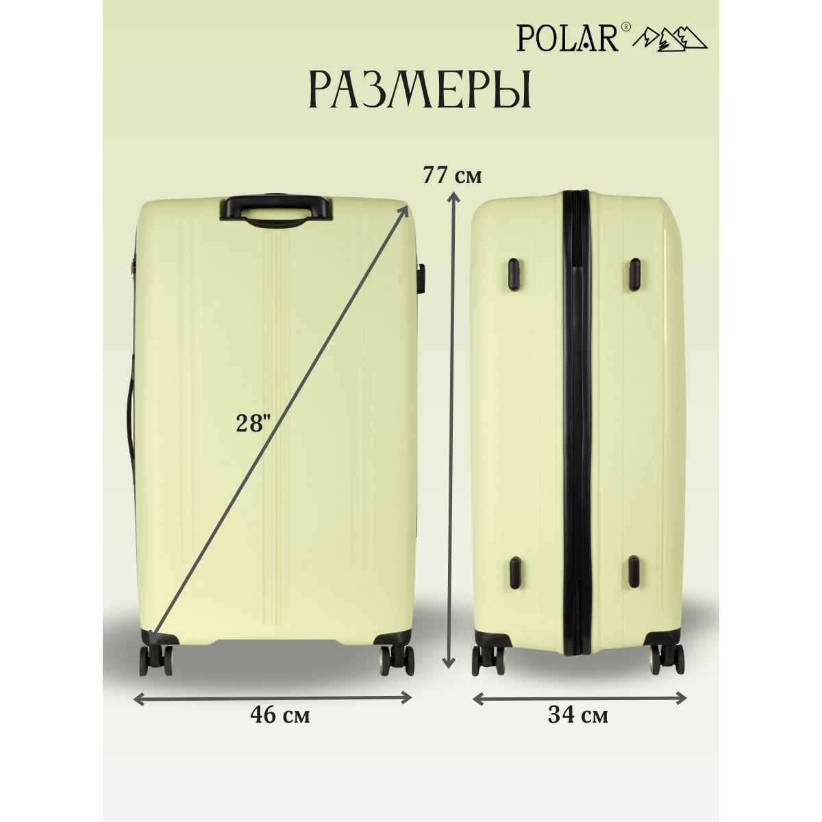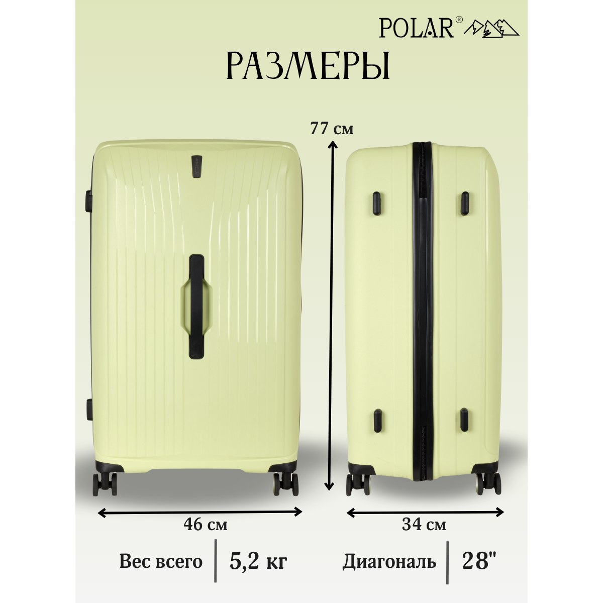 Чемодан PP большой РР829 (3-ой) 28" (Салатовый)