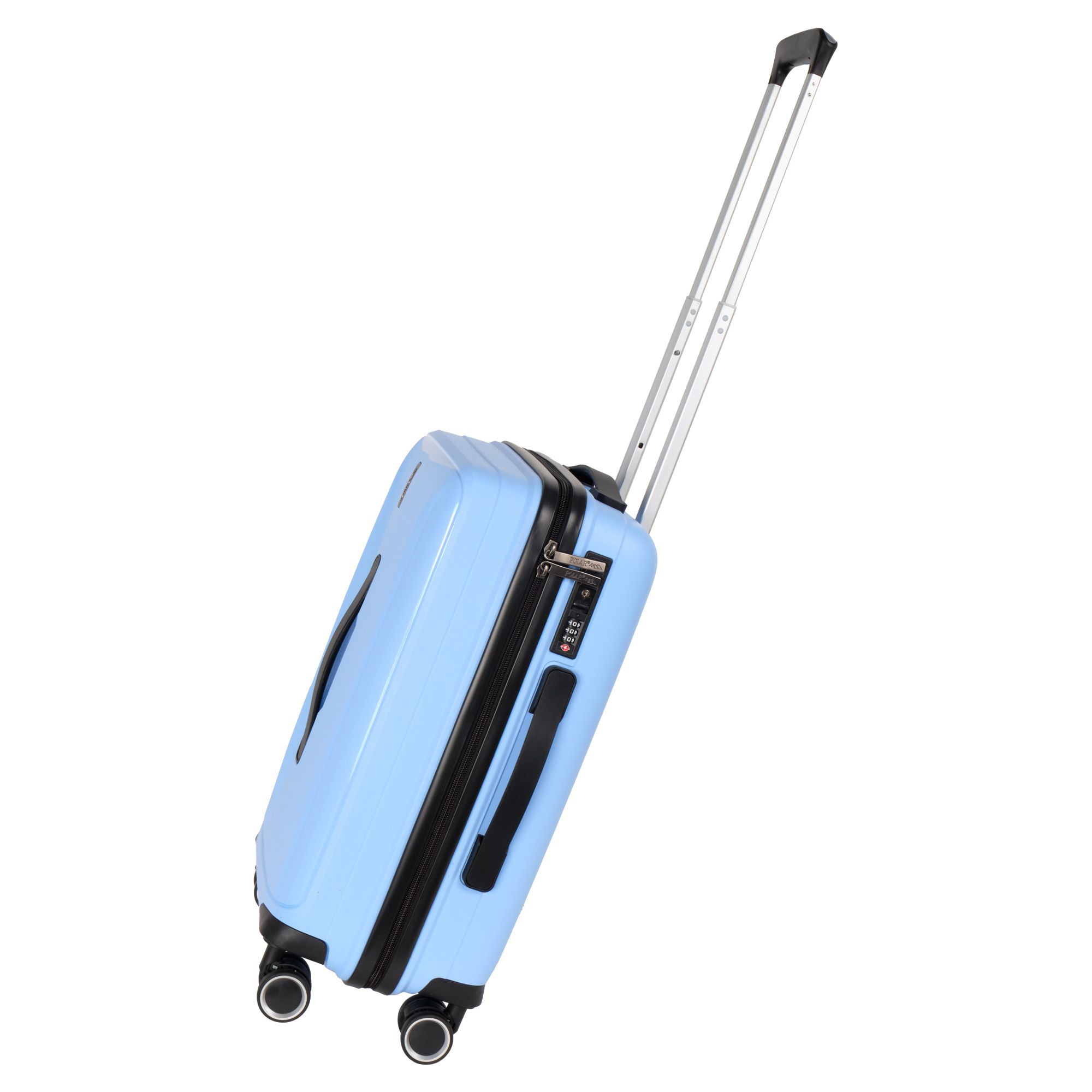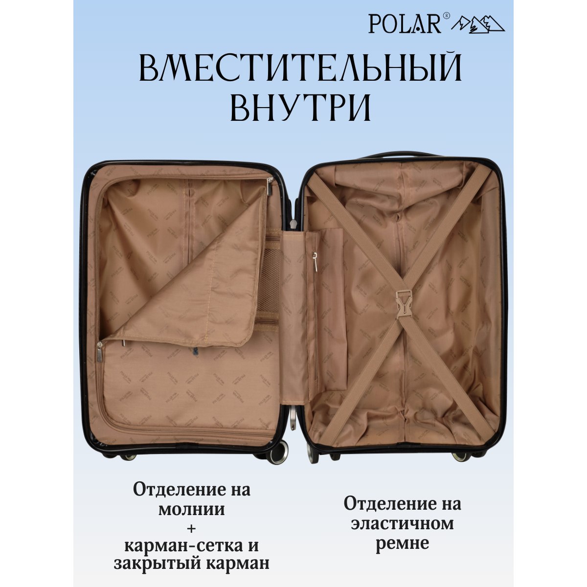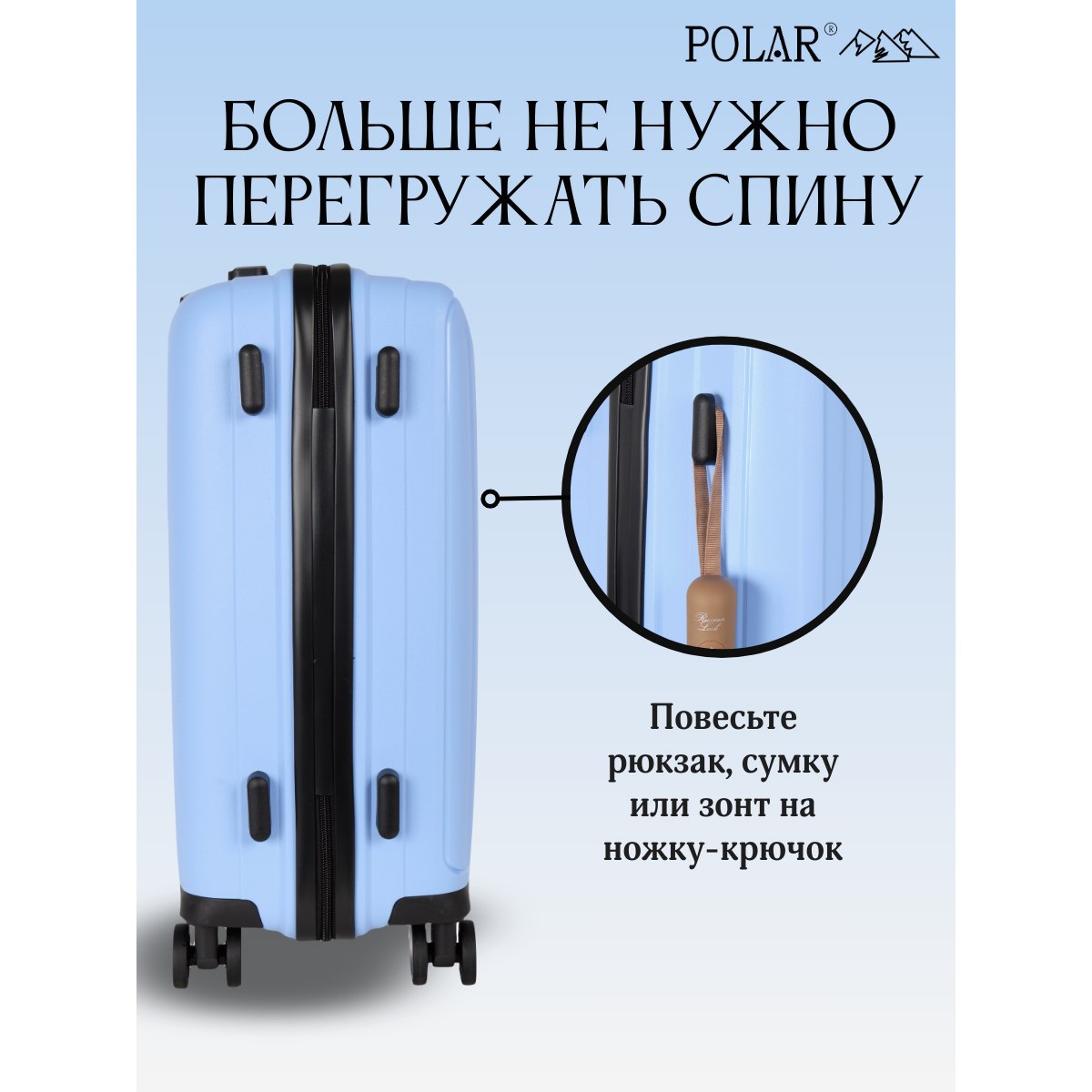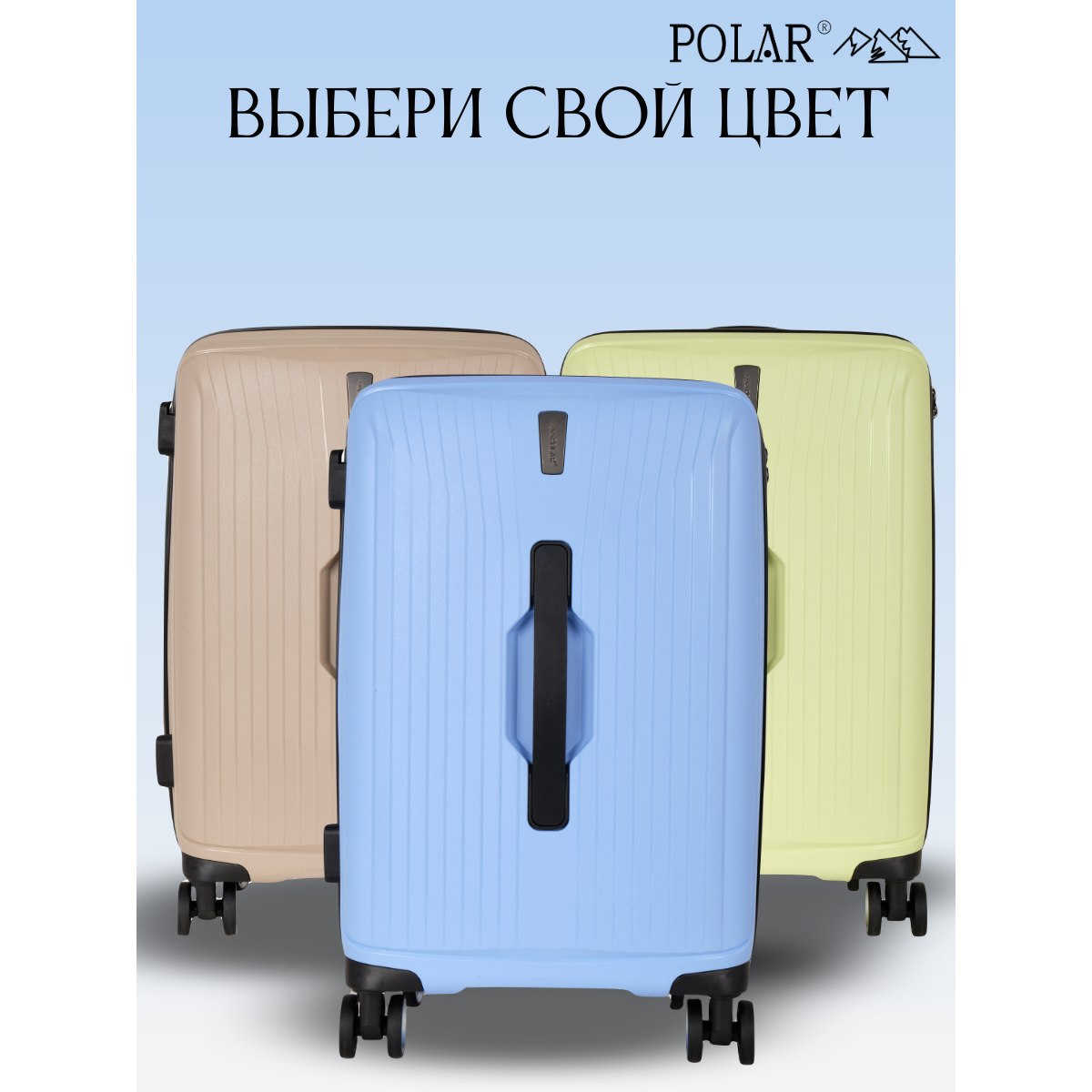 Чемодан малый фирмы POLAR, размер S, выполнен из PP (полипропилен). Основное отделение разделено на две части. Одно имеет фиксирующие ремни, второе на молнии. Выдвигающаяся ручка расположена внутри корпуса чемодана, что способствует большей прочности и защите от ударов при разгрузке/погрузке чемодана. Выдвигающаяся ручка фиксируется в трех  положениях. Есть кодовый замок. Надежные 4 колеса.