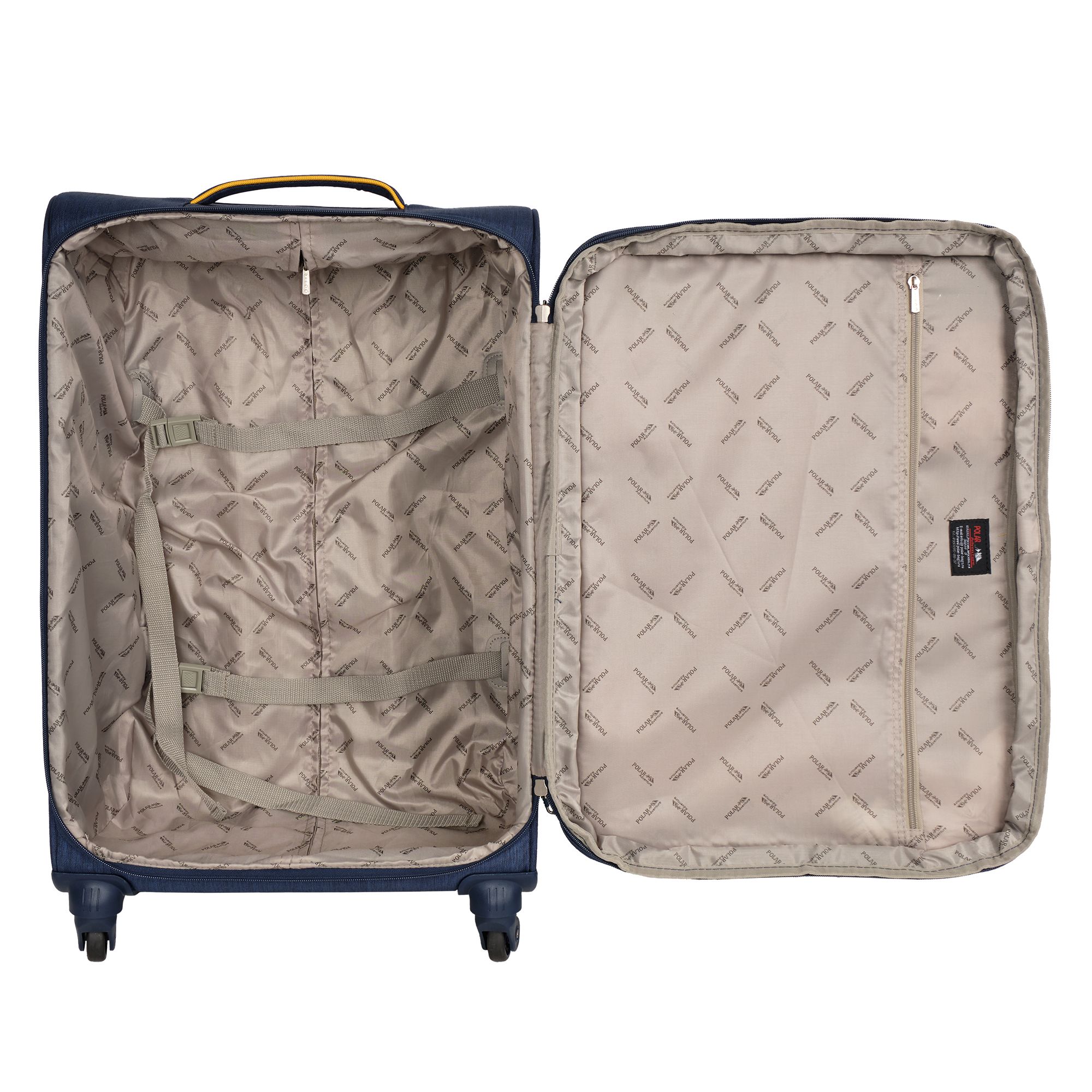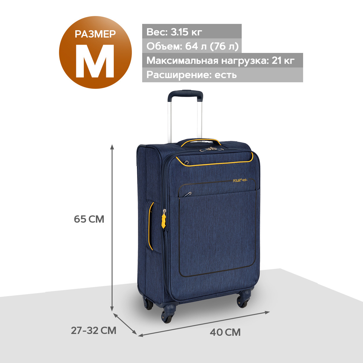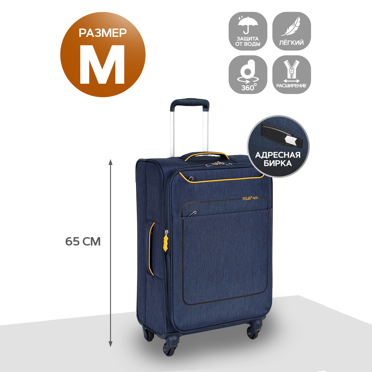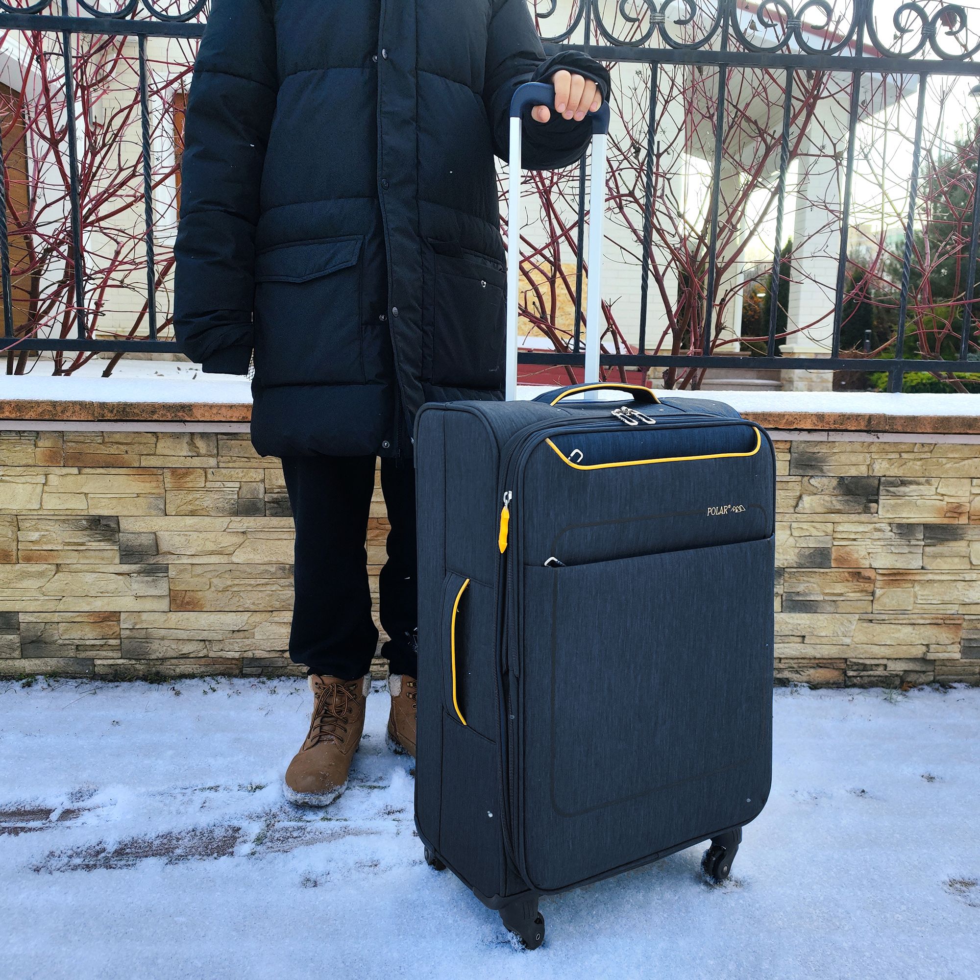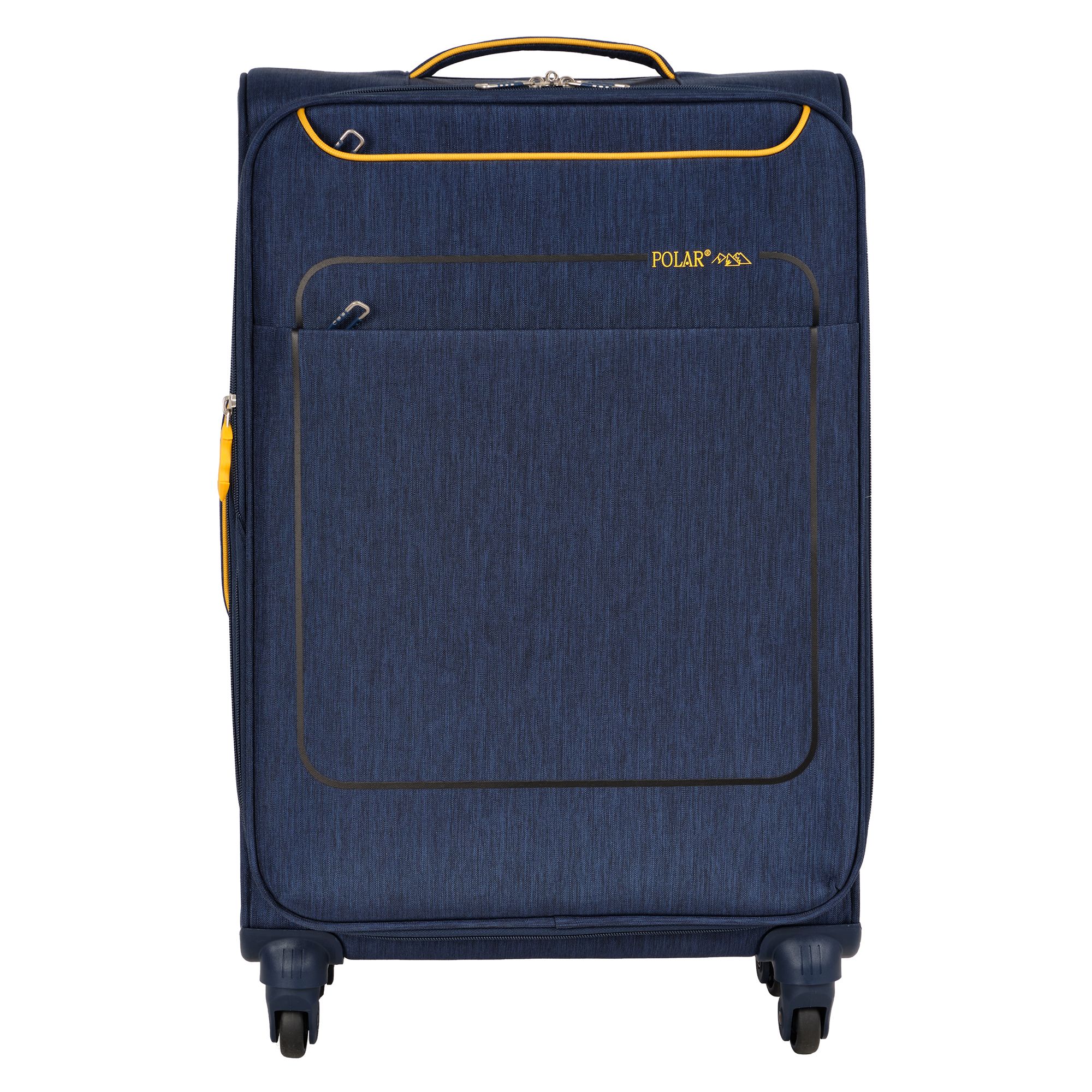 Средний чемодан фирмы Polar. Внутри имеются фиксирующие ремни и карман на молнии. Основное отделение можно увеличить в объеме, расстегнув молнию, при этом чемодан увеличивается в глубину на 5 см. Максимальный объем при увеличении 76.5 л.. Ручка выдвигается в два сложения до 40 см, Ручка расположена внутри корпуса чемодана, что способствует ее защите при погрузке чемодана. Снаружи на передней стенке — два больших кармана на молнии. Надежные четыре колеса на подшипниках, вращаются на 360° градусов. У чемодана встроенный TSA кодовый замок.