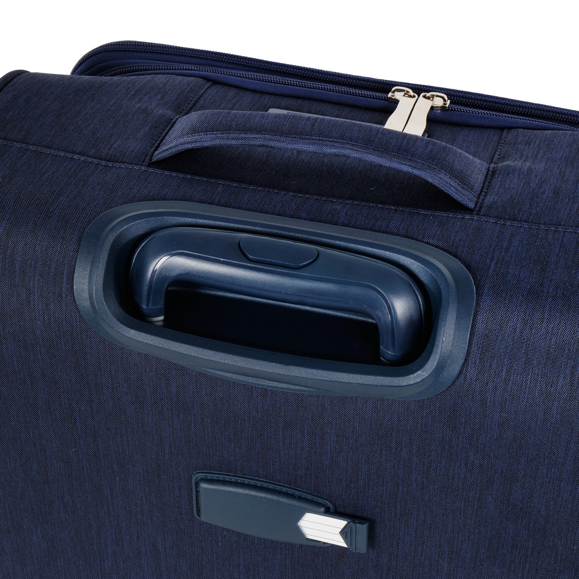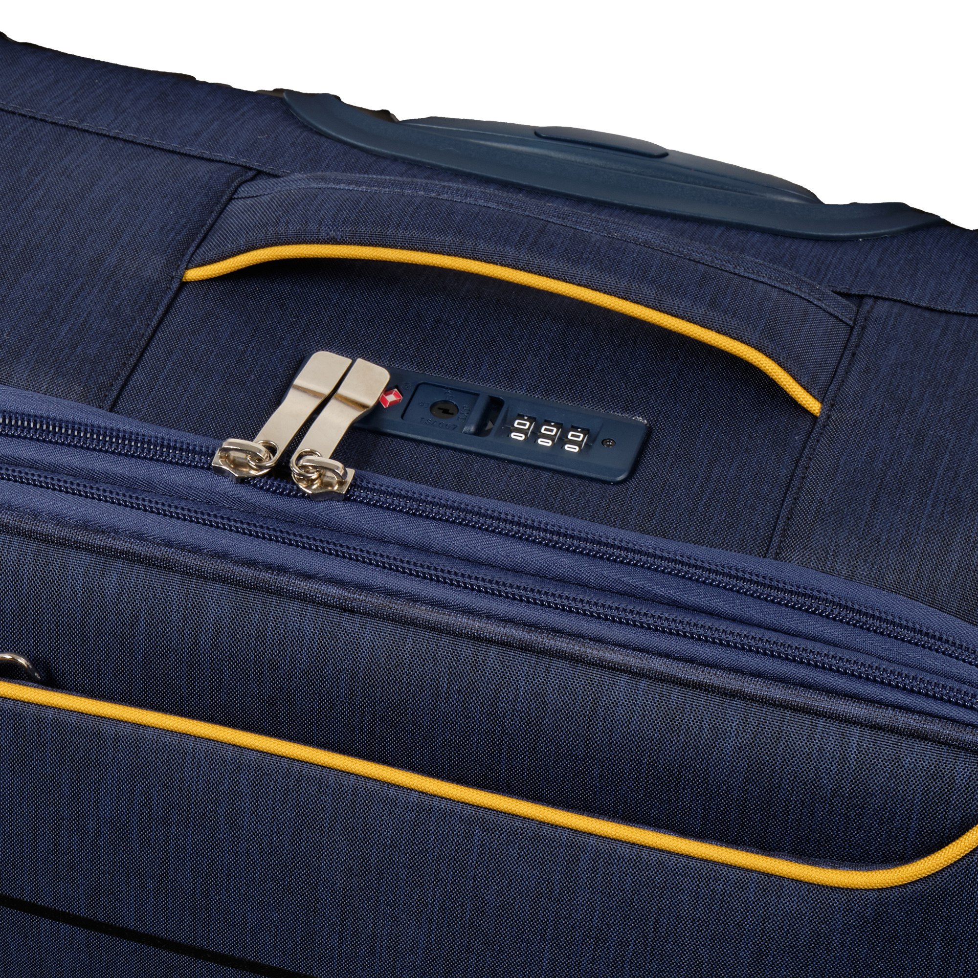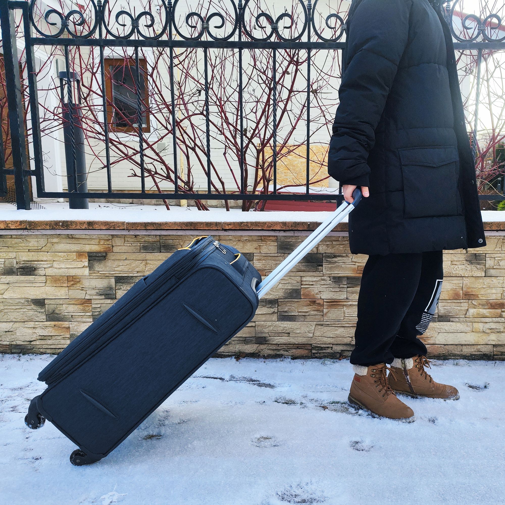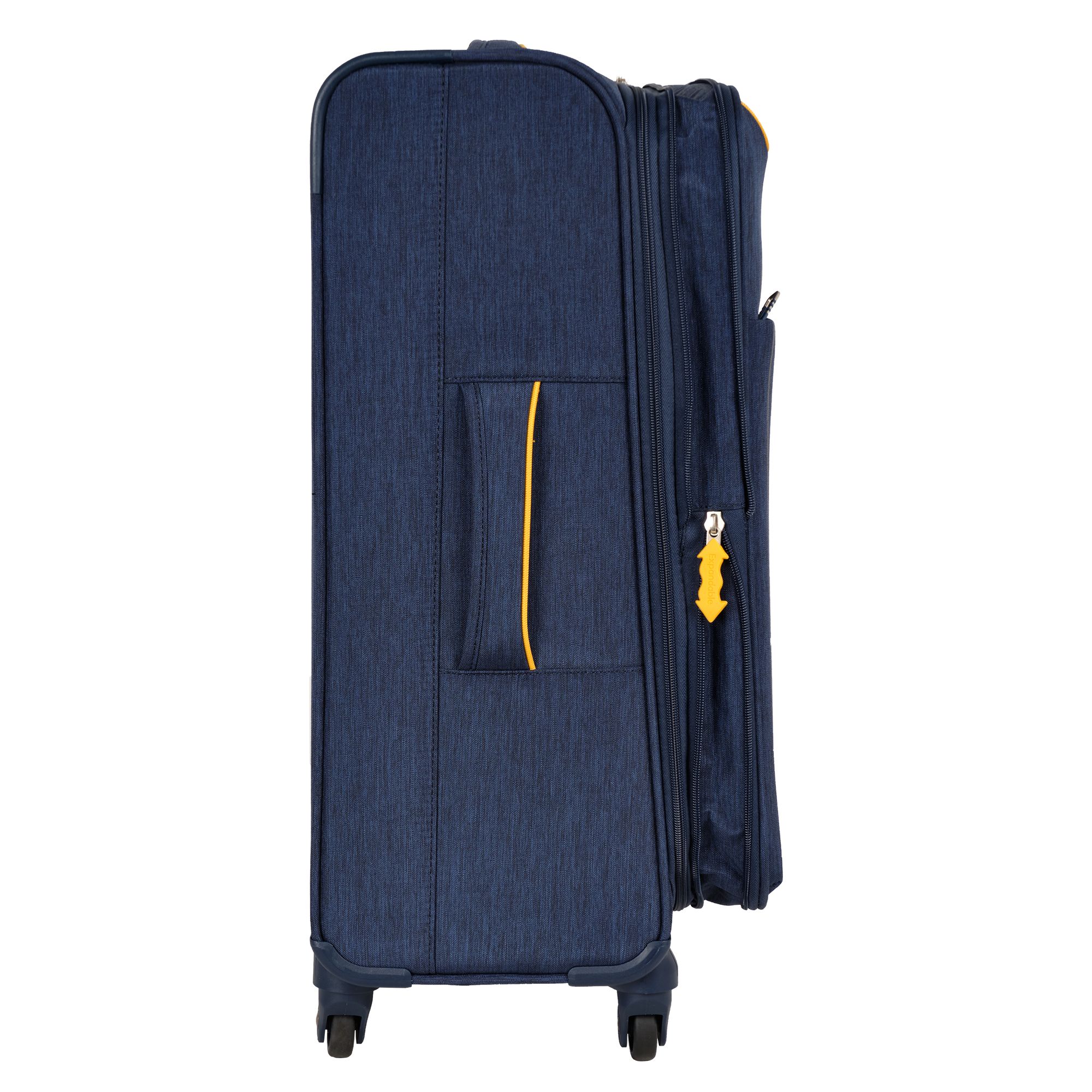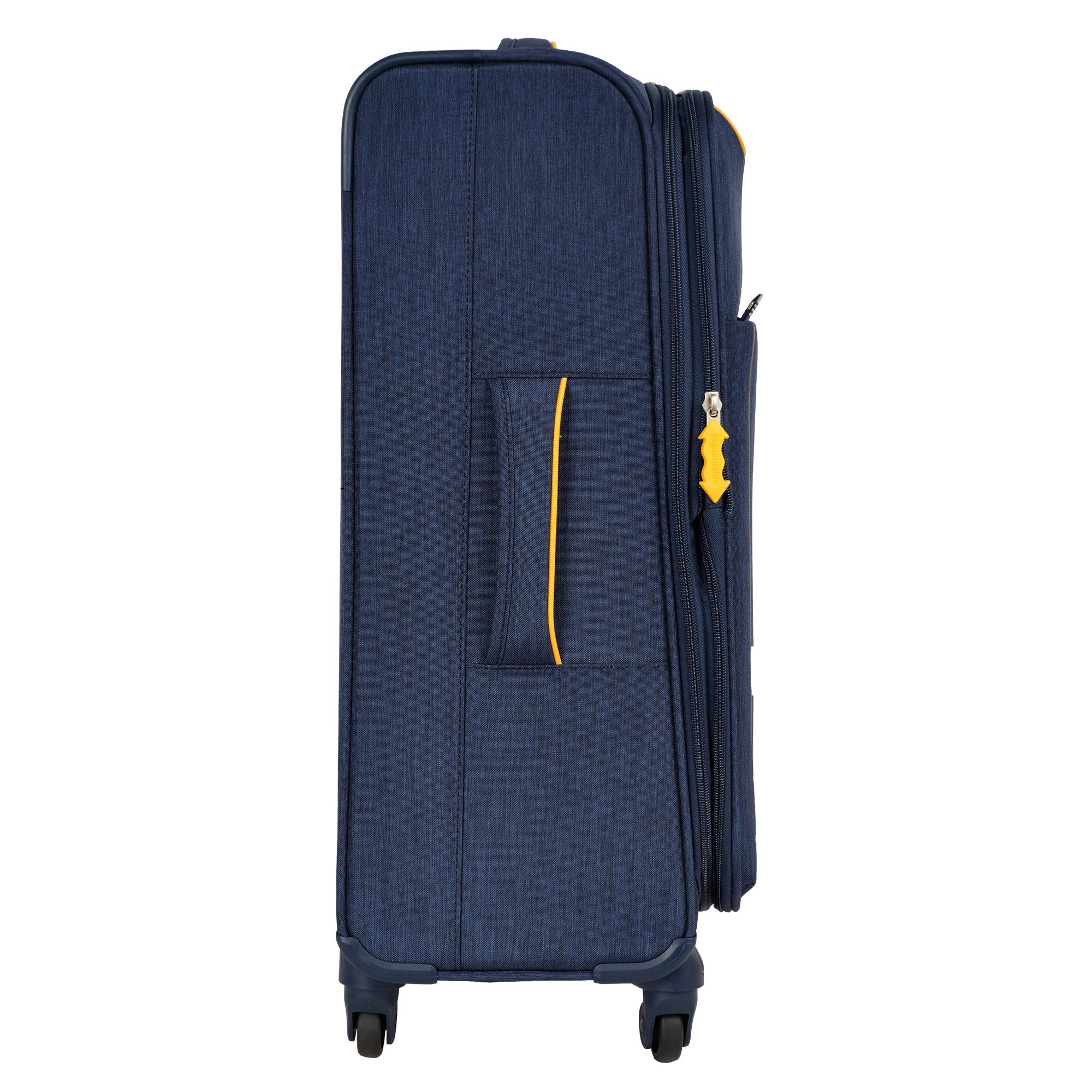Средний чемодан фирмы Polar. Внутри имеются фиксирующие ремни и карман на молнии. Основное отделение можно увеличить в объеме, расстегнув молнию, при этом чемодан увеличивается в глубину на 5 см. Максимальный объем при увеличении 76.5 л.. Ручка выдвигается в два сложения до 40 см, Ручка расположена внутри корпуса чемодана, что способствует ее защите при погрузке чемодана. Снаружи на передней стенке — два больших кармана на молнии. Надежные четыре колеса на подшипниках, вращаются на 360° градусов. У чемодана встроенный TSA кодовый замок.