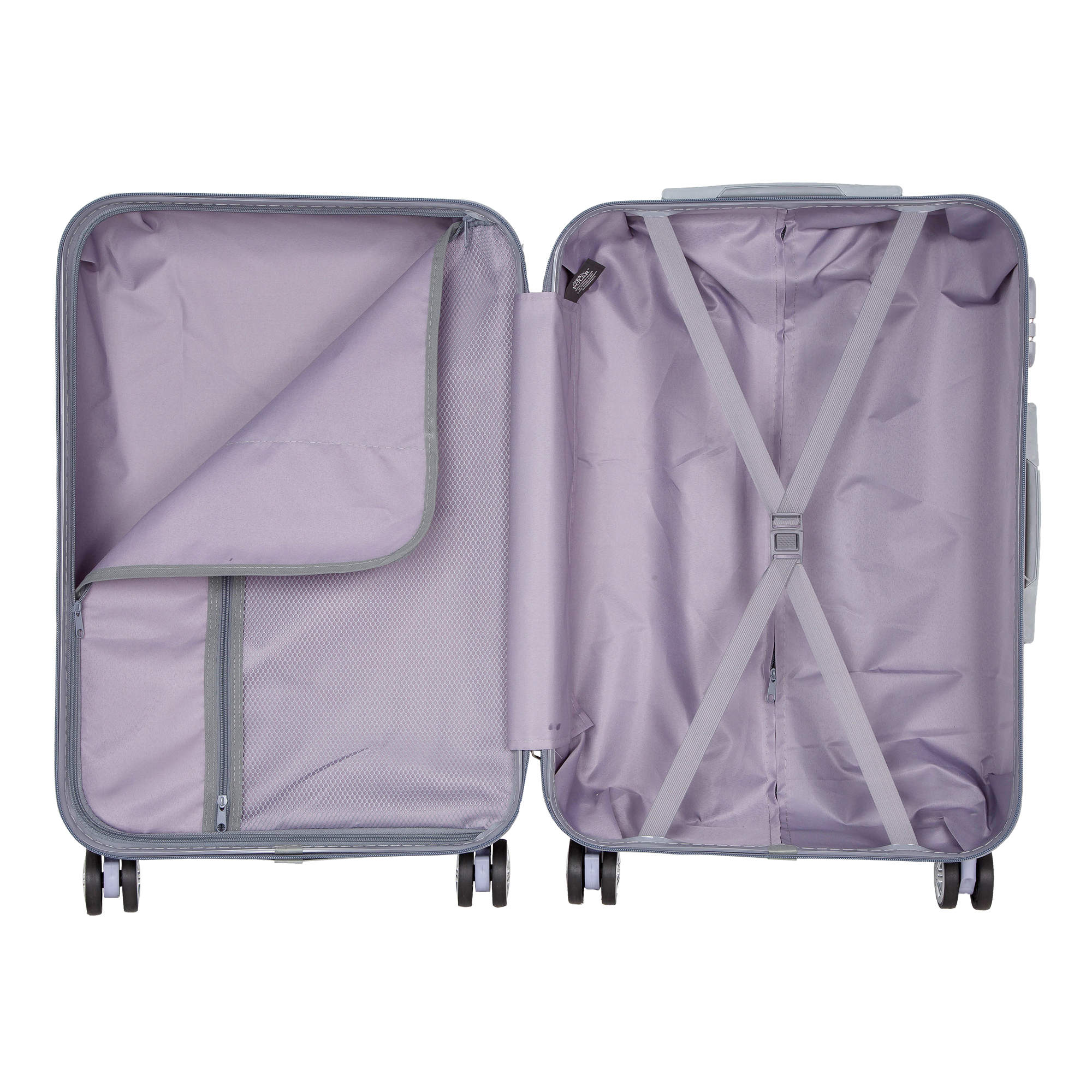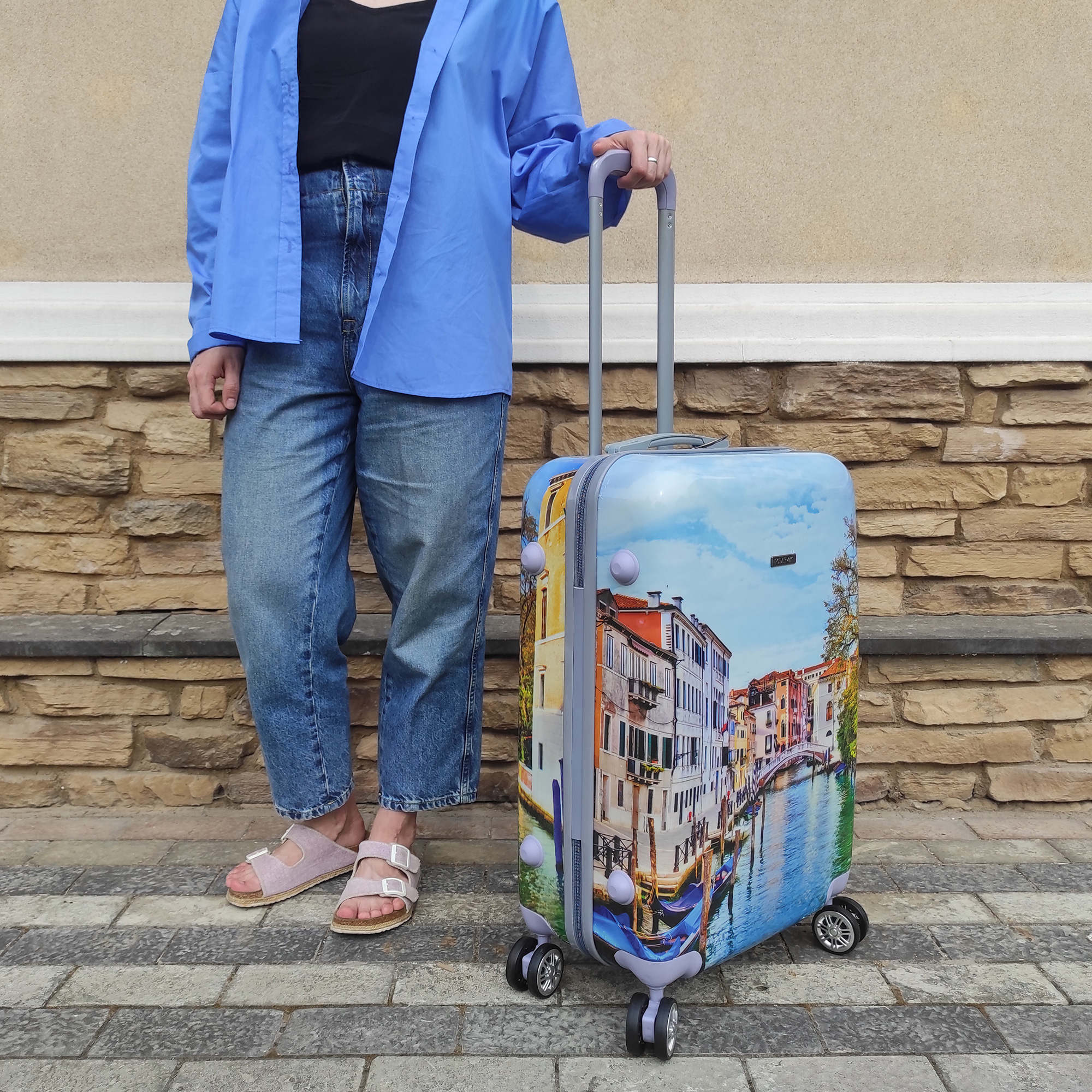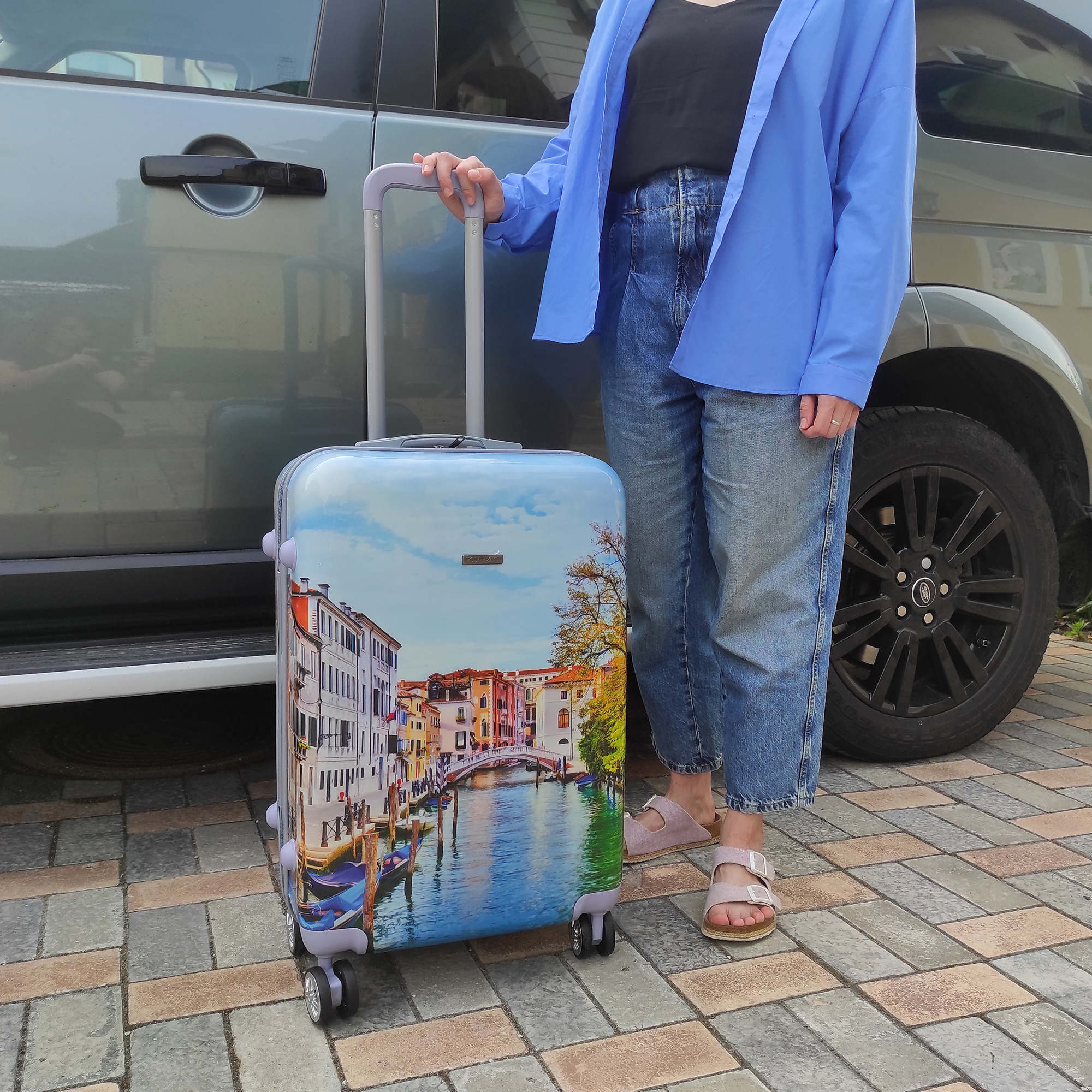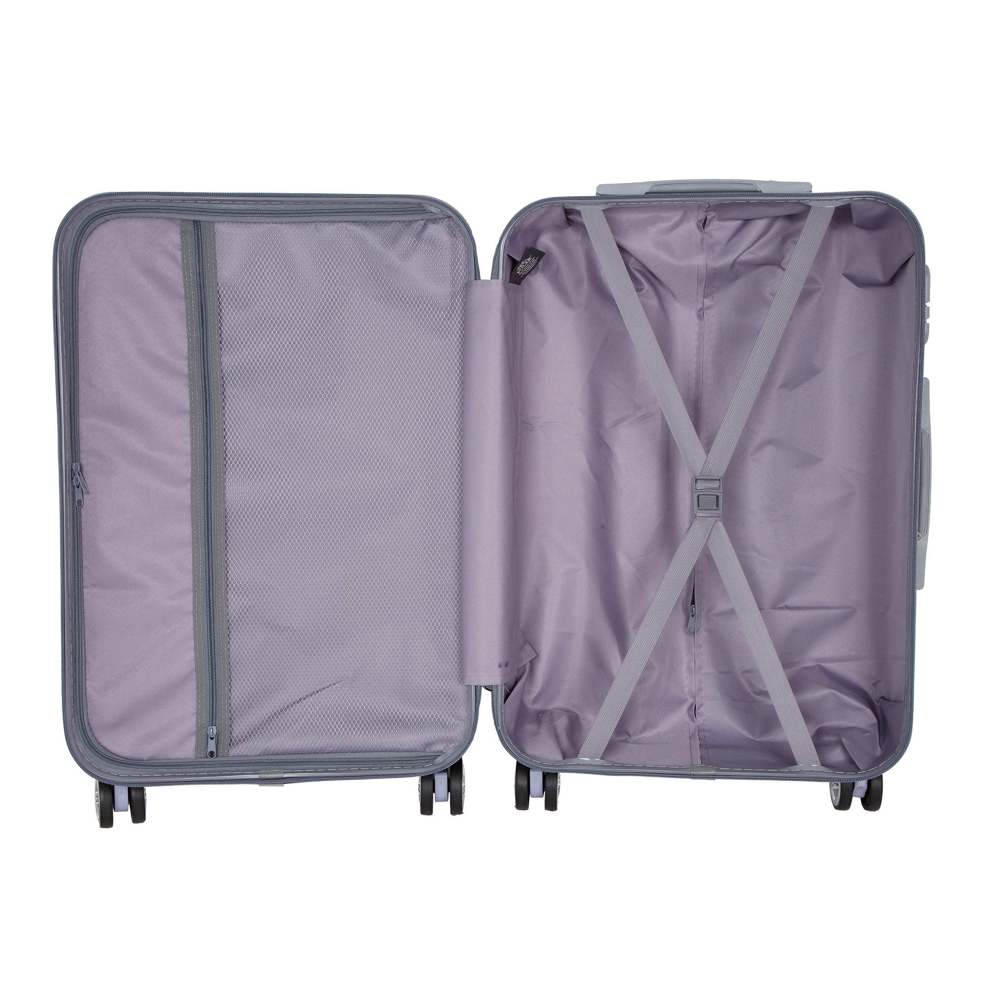 Чемодан фирмы POLAR, выполнен из ABS-пластика. Основное отделение разделено на две части. Одно имеет фиксирующие ремни, второе на молнии. Выдвигающаяся ручка расположена внутри корпуса чемодана, что способствует большей прочности и защите от ударов при разгрузке/погрузке чемодана. Выдвигающаяся ручка фиксируется в двух положениях. Есть кодовый замок. Надежные 4 колеса диаметром 4.8 см.