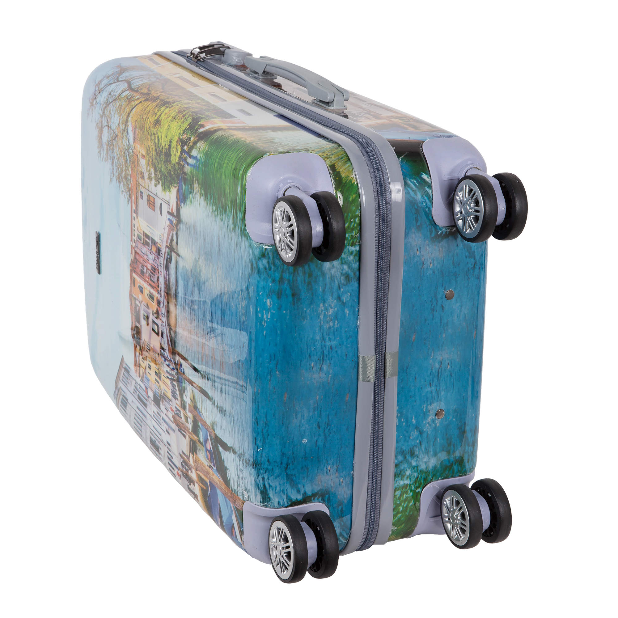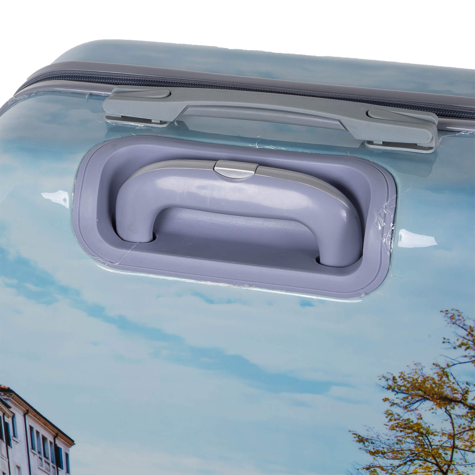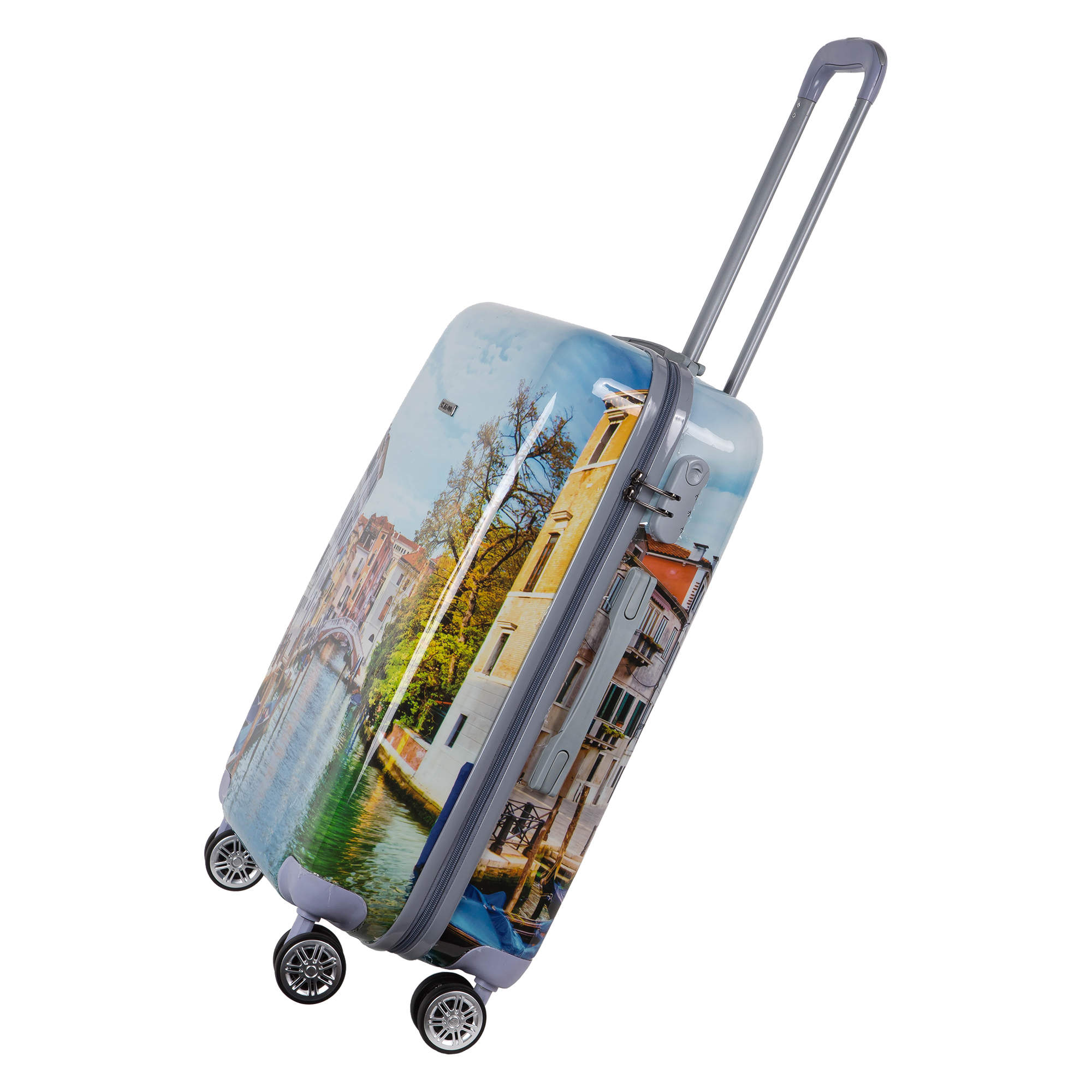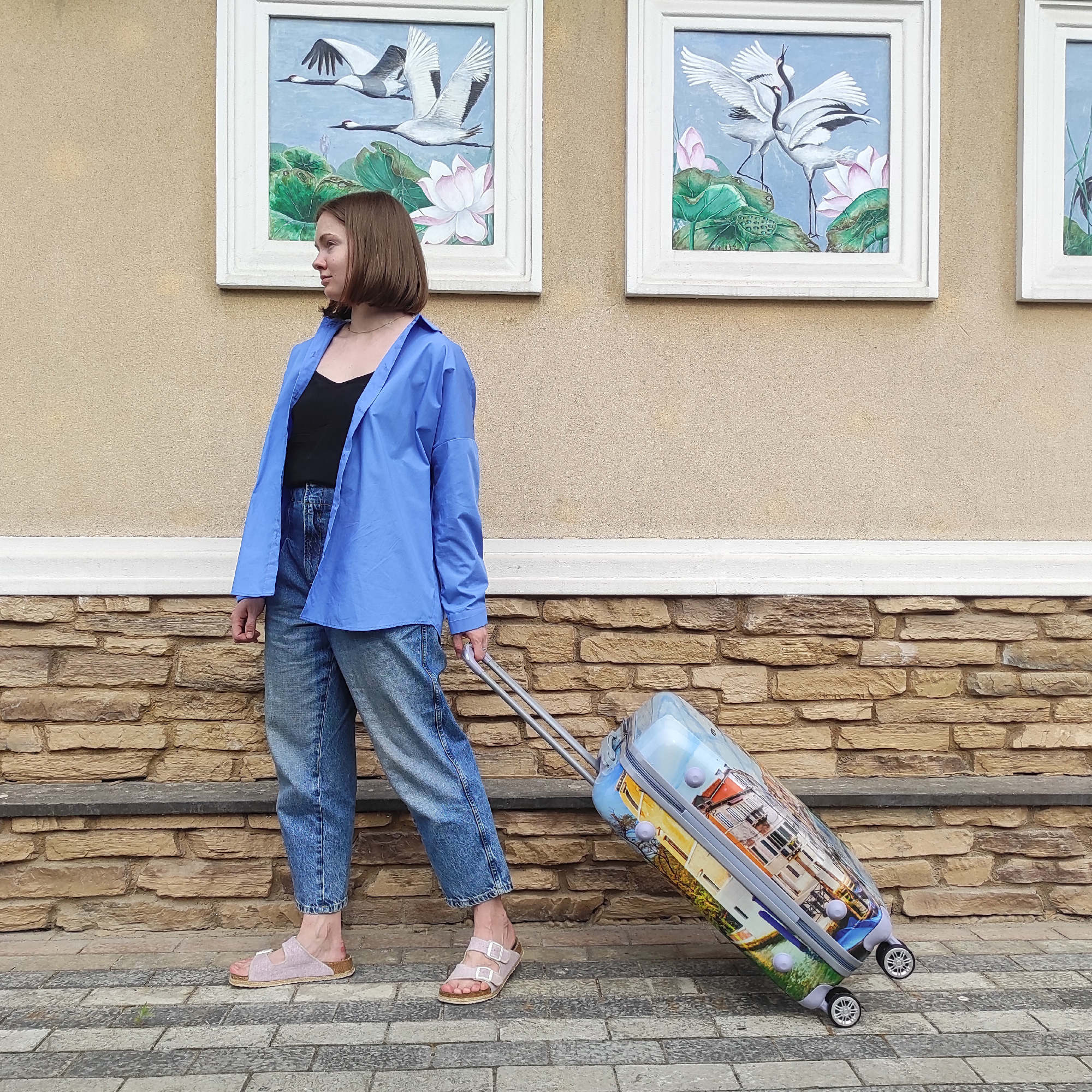 Чемодан фирмы POLAR, выполнен из ABS-пластика. Основное отделение разделено на две части. Одно имеет фиксирующие ремни, второе на молнии. Выдвигающаяся ручка расположена внутри корпуса чемодана, что способствует большей прочности и защите от ударов при разгрузке/погрузке чемодана. Выдвигающаяся ручка фиксируется в двух положениях. Есть кодовый замок. Надежные 4 колеса диаметром 4.8 см.