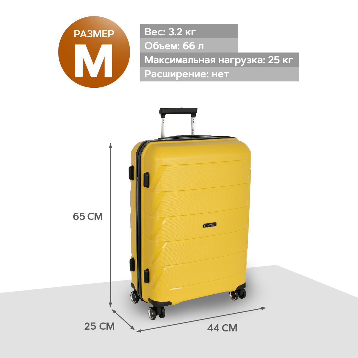 Чемодан малый фирмы POLAR, размер М, выполнен из PP (полипропилен). Основное отделение разделено на две части. Одно имеет фиксирующие ремни, второе на молнии. Выдвигающаяся ручка расположена внутри корпуса чемодана, что способствует большей прочности и защите от ударов при разгрузке/погрузке чемодана. Выдвигающаяся ручка фиксируется в двух положениях. Есть кодовый замок. Надежные 4 колеса.