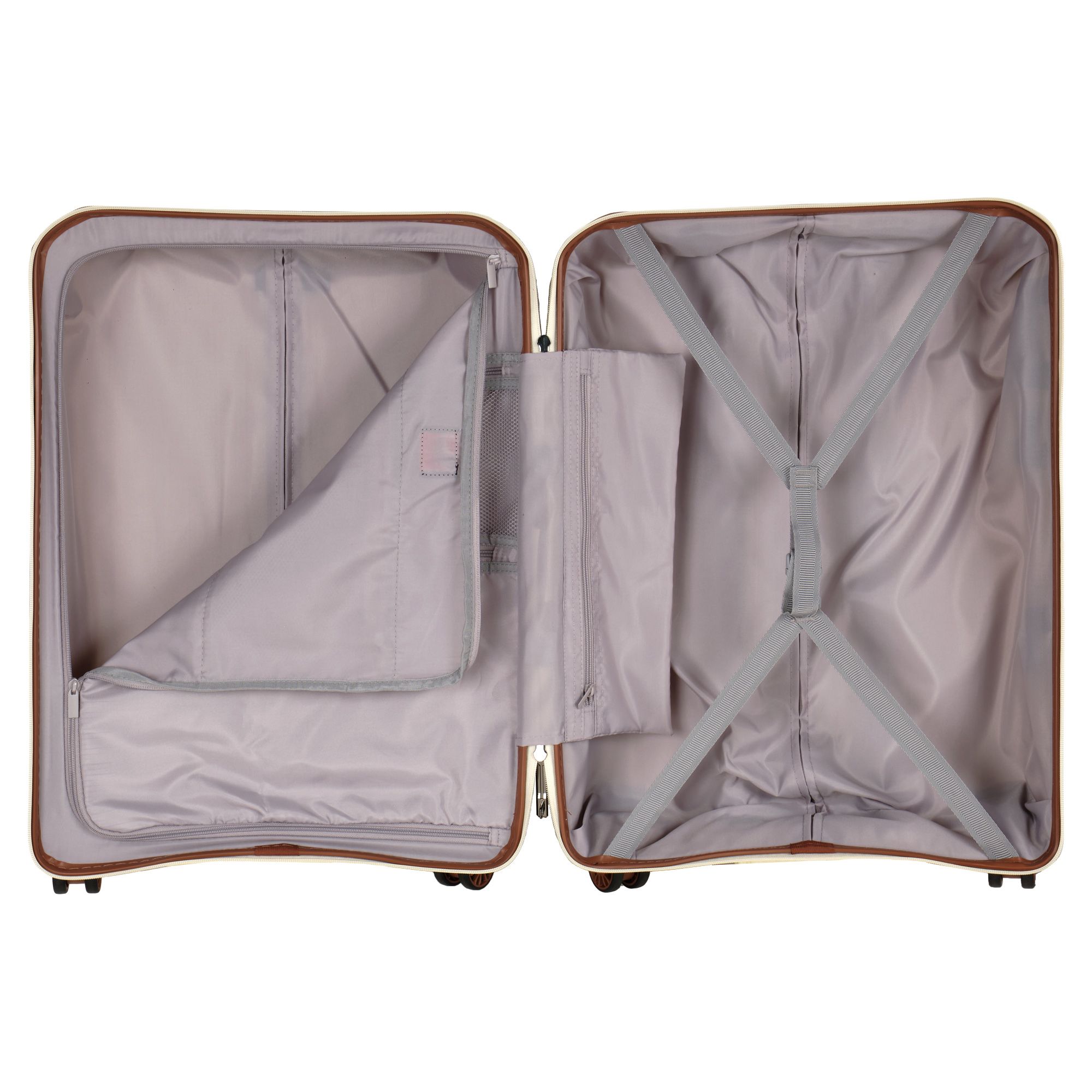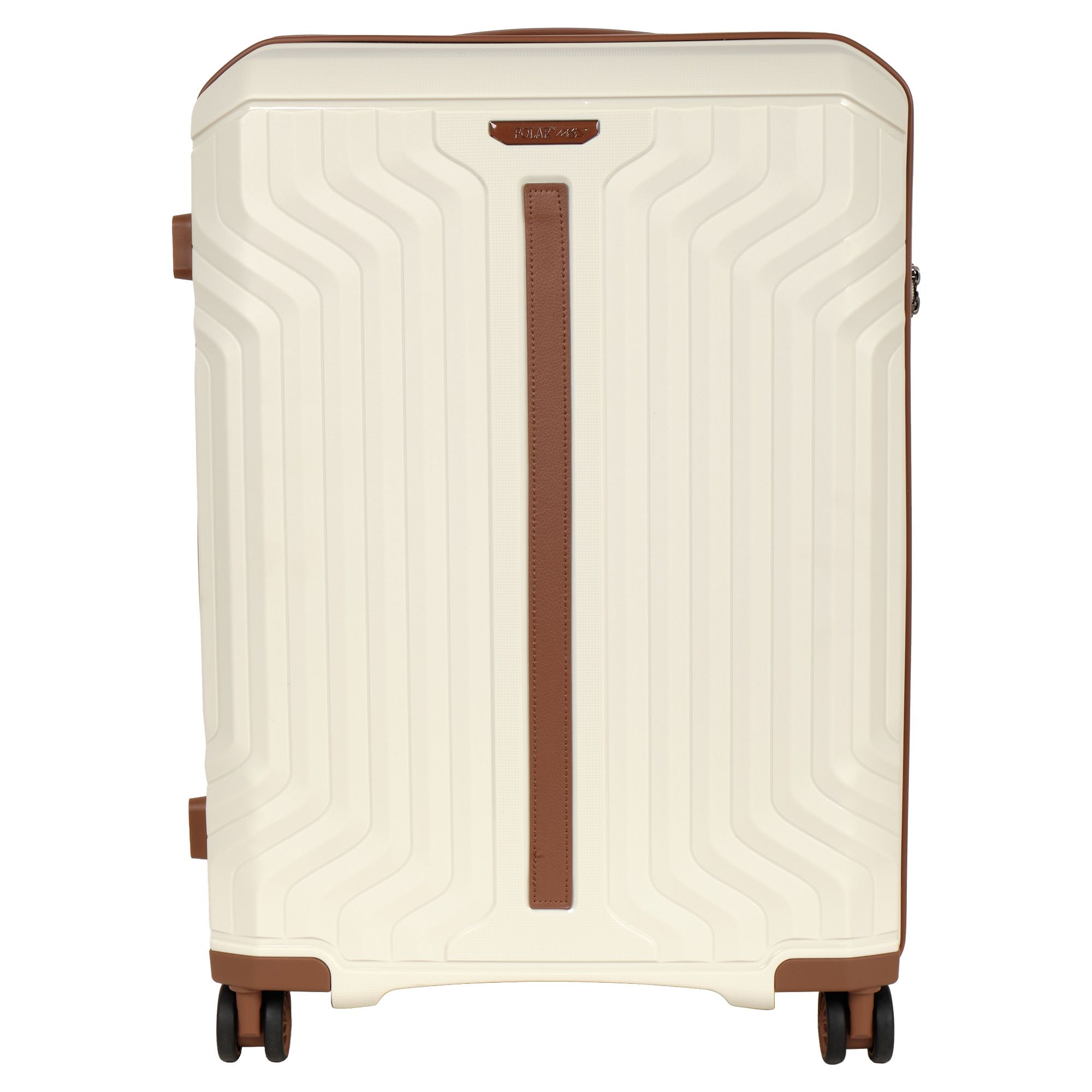 Чемодан фирмы Polar на четырех прорезиненных колесиках. Чемодан выполнен из PP-пластика (Полипропилен). Полипропилен обладает высокой прочностью, эластичностью и высокой ударостойкостью. Внутри подкладка из полиэстра. Одна секция чемодана с креплением резинками для одежды. Вторая секция застегивается на молнию для удобства упаковки вещей. Есть кодовый замок TSA.