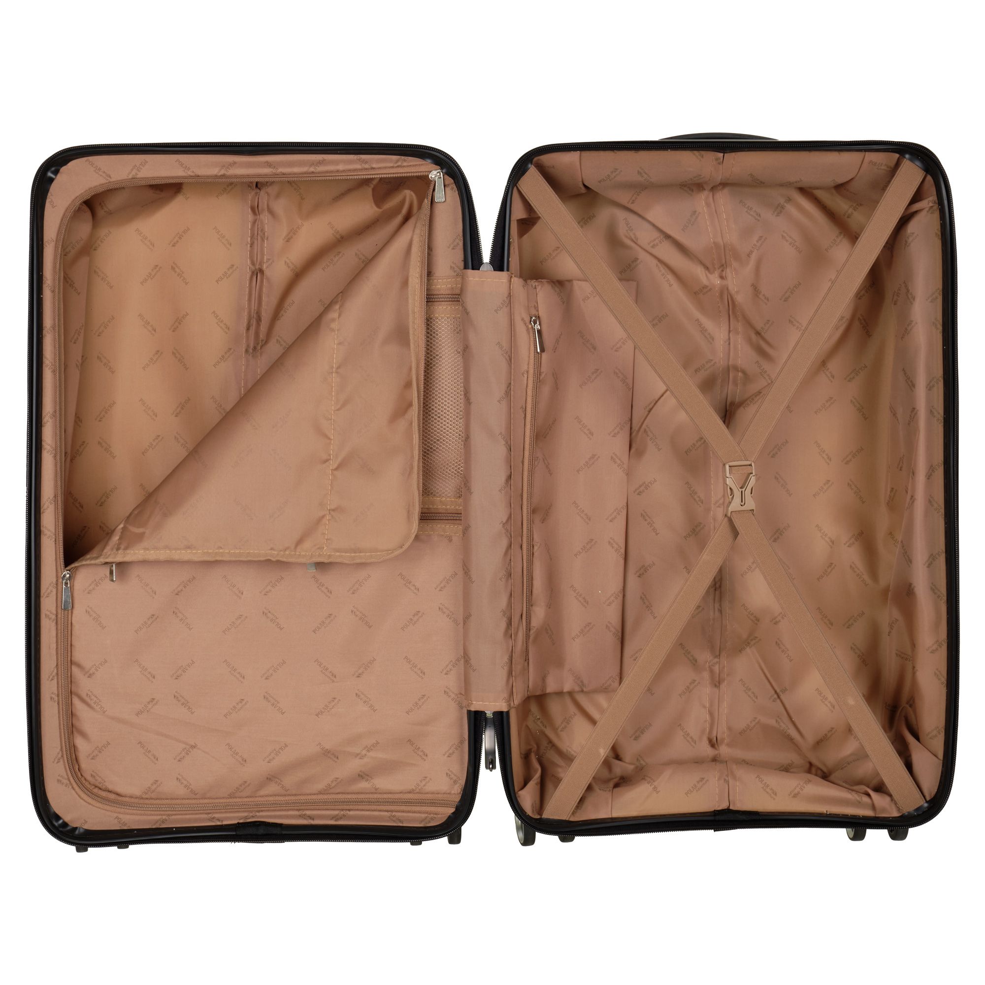 Чемодан малый фирмы POLAR, размер М, выполнен из PP (полипропилен). Основное отделение разделено на две части. Одно имеет фиксирующие ремни, второе на молнии. Выдвигающаяся ручка расположена внутри корпуса чемодана, что способствует большей прочности и защите от ударов при разгрузке/погрузке чемодана. Выдвигающаяся ручка фиксируется в трех положениях. Есть кодовый замок. Надежные 4 колеса.