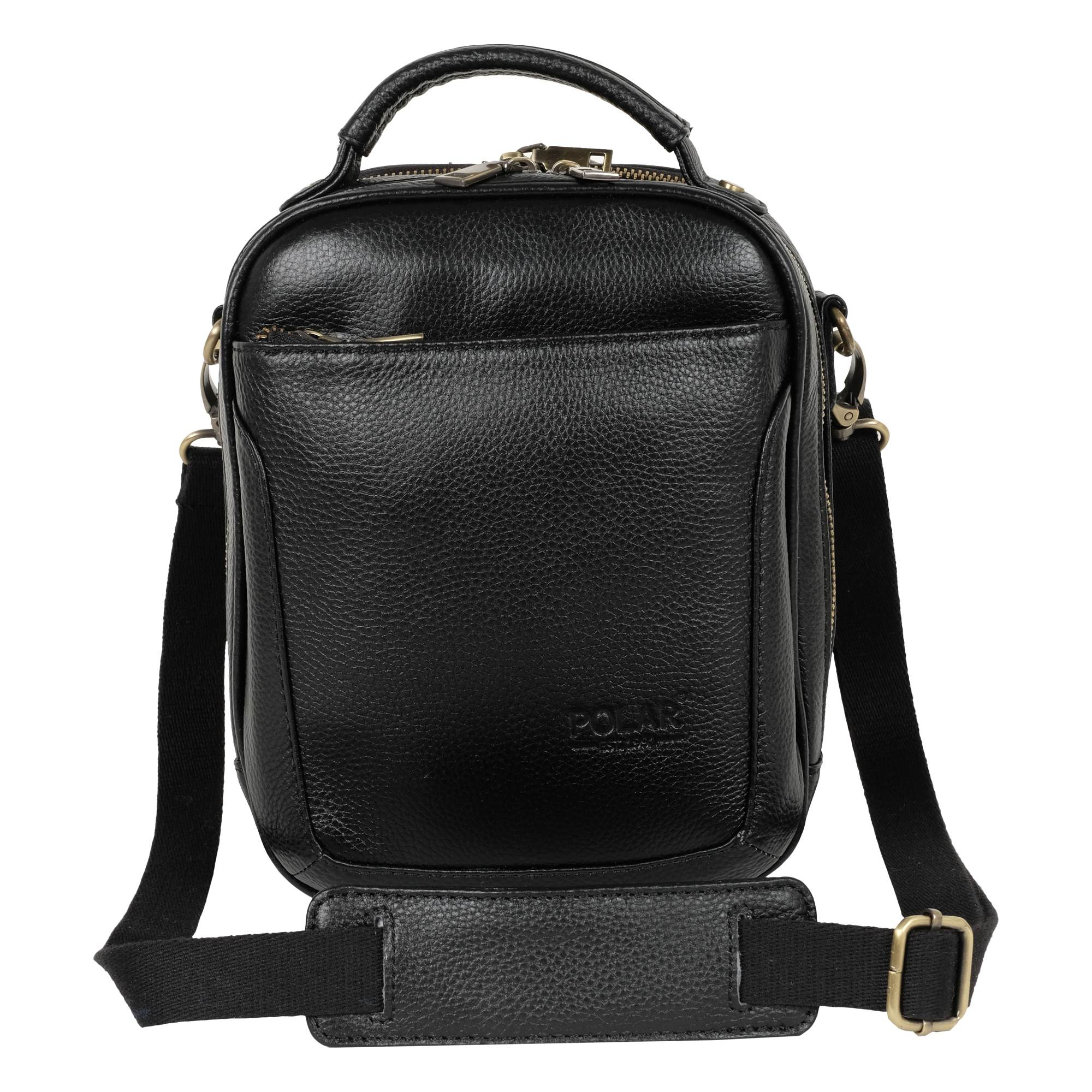 Мужская сумка Polar из натуральной кожи. Два основных отделения с потайным карманом и кармашки под письменные принадлежности. Карман спереди и сзади сумки. Удобный плечевой ремень, который регулируется по необходимой Вам длине.