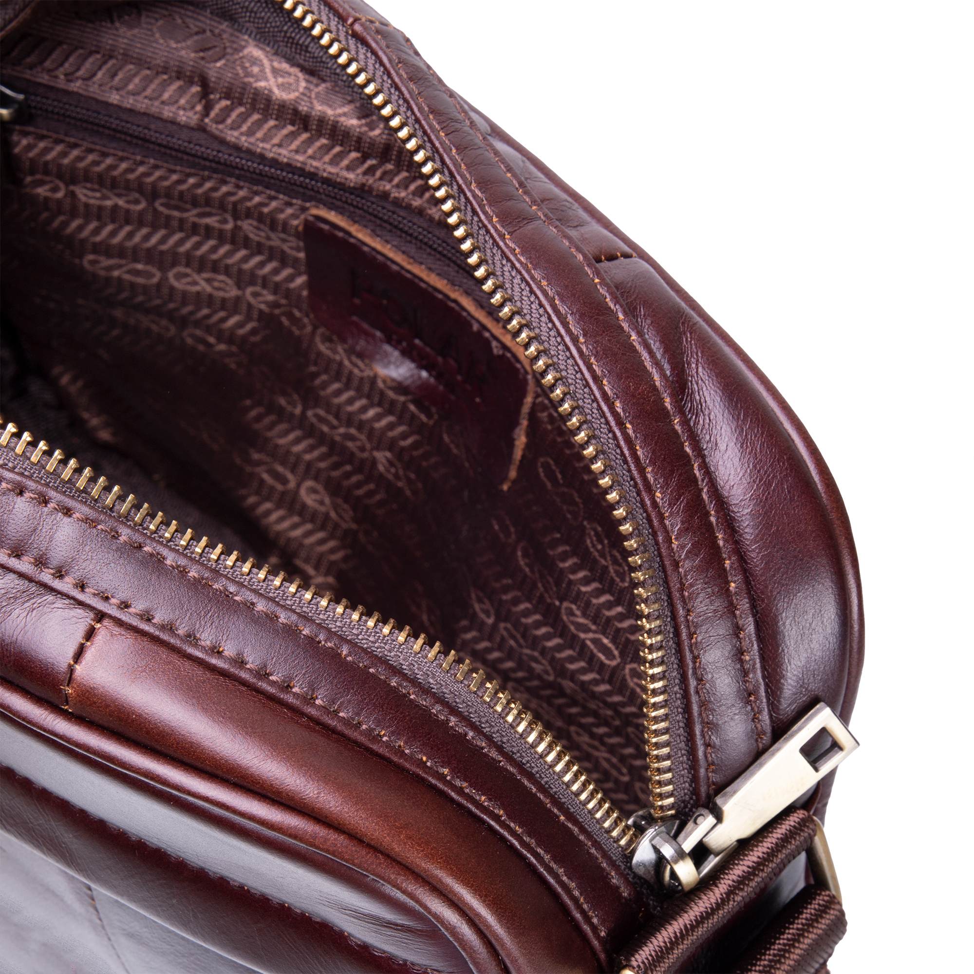 Сумка мужская из натуральной кожи фирмы Polar. Основное отделение закрывается на металлическую молнию. В основном отделении карман на молнии для ценных вещей и открытый кармашек. На передней стенке вместительный карман на молнии, а также открытый карман сзади сумки. Плечевой ремень регулируемый по максимальной длине 147 см.