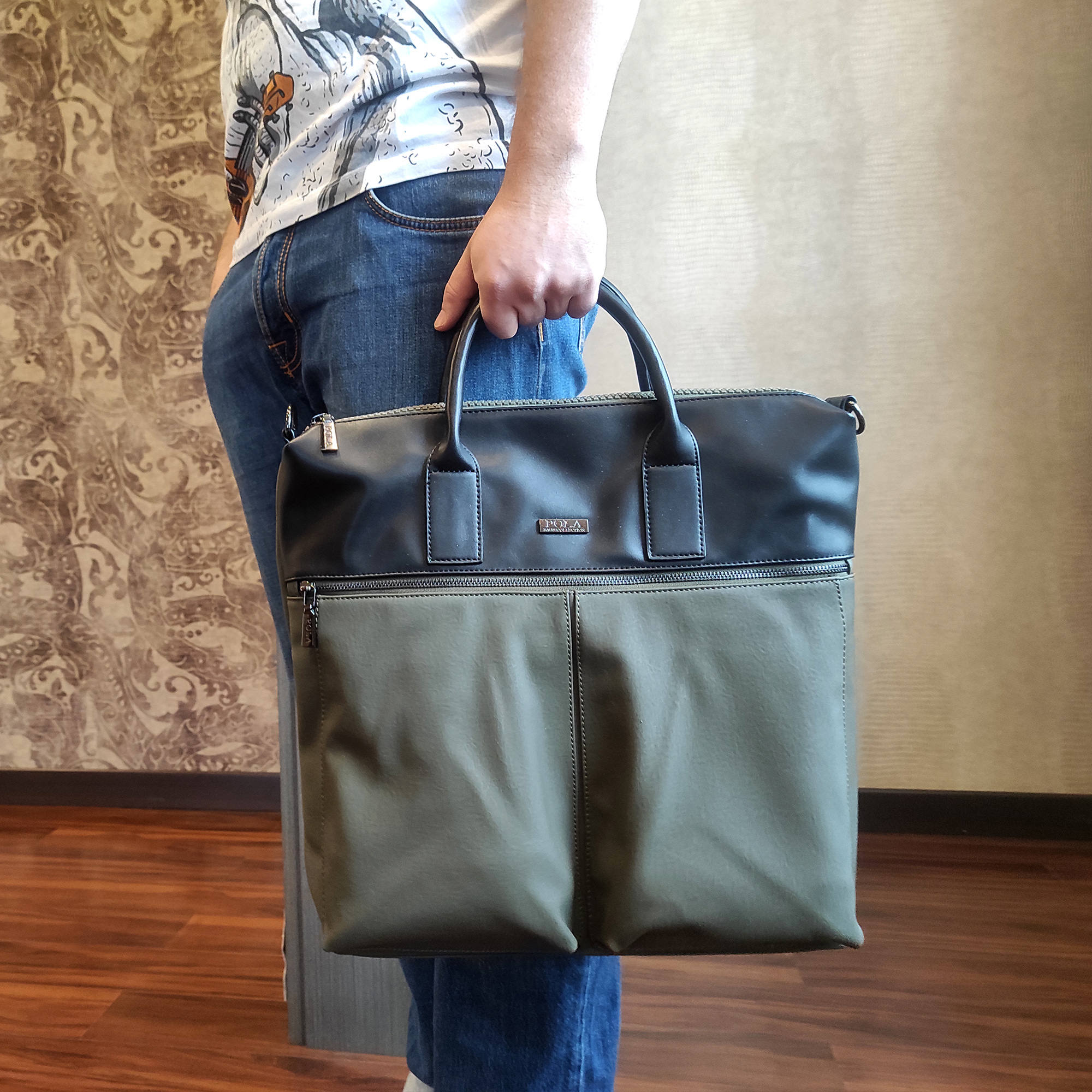 Стильная и элегантная сумка Pola выполнена из экокожи. Основное отделение закрывается на молнию. У сумки есть множество удобных карманов как внутри, так и снаружи. Так же есть карман для ноутбука, диагональю до 13” и планшета. У данной модели съёмный регулируемый плечевой ремень из нейлона с вставками из экокожи максимальная длина 172 см.