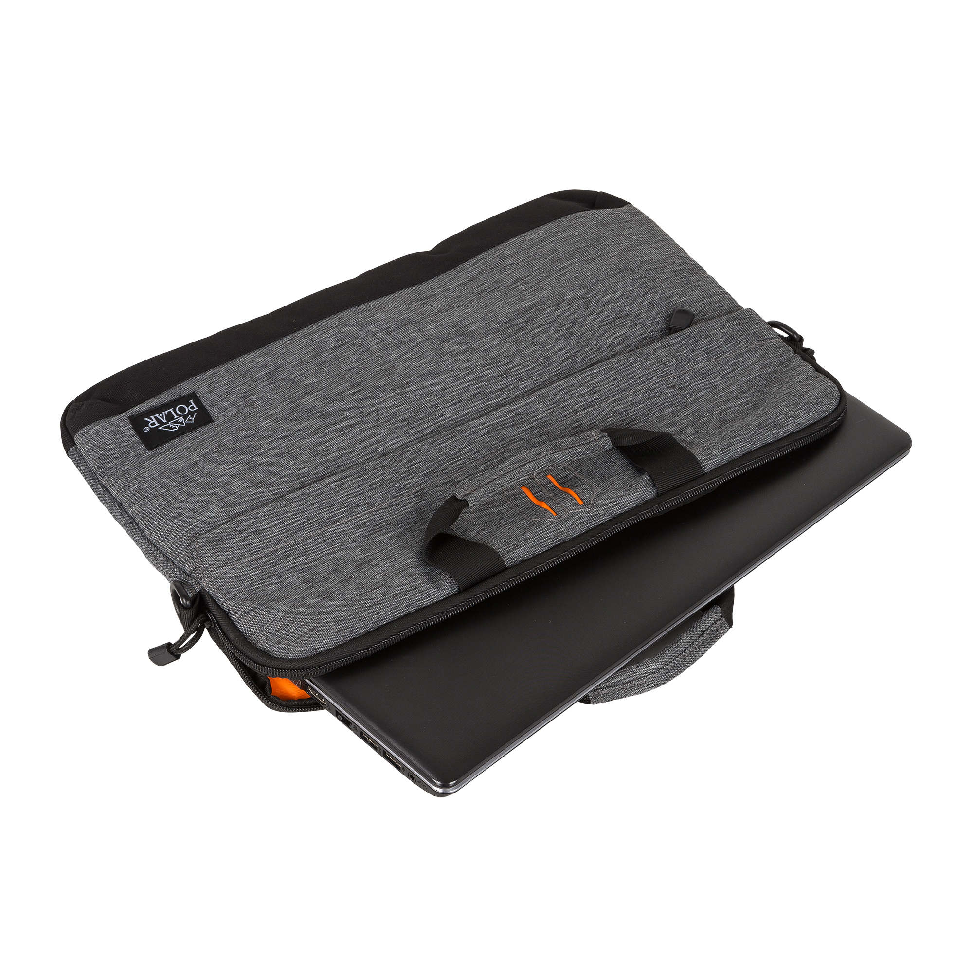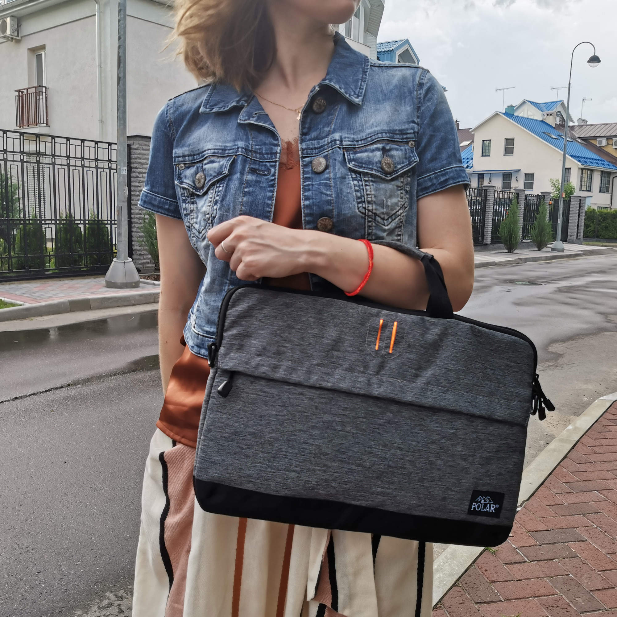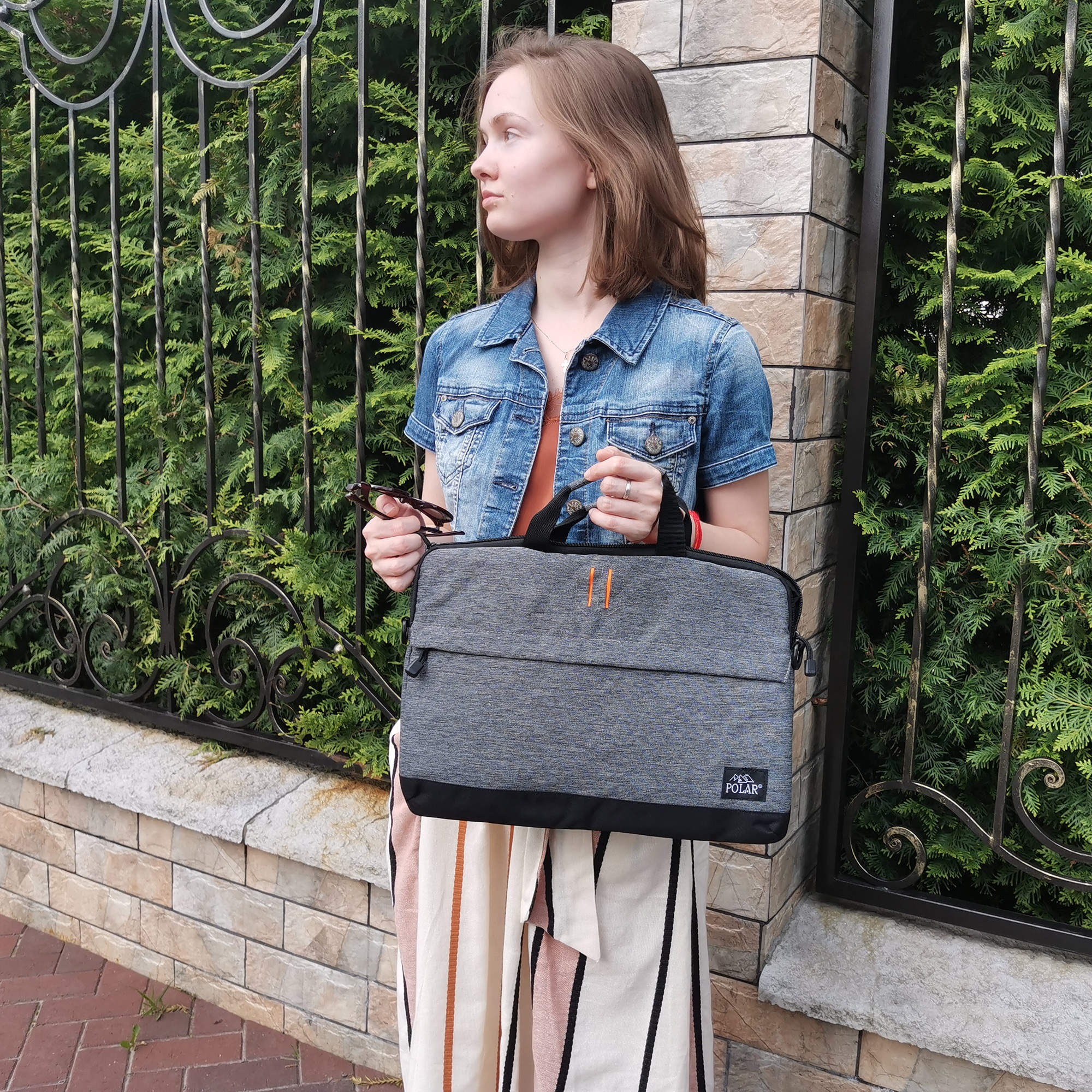 Стильная сумка-папка POLAR прекрасно подойдёт для деловых встреч и переговоров, модель выполнена в минималистичном дизайне и имеет универсальную расцветку, которая прекрасно сочетается как с повседневной одеждой, так и с офисным дресс-кодом. Сумка состоит из основного отделения, в которое прекрасно поместится ноутбук диагональю 15,6. Спереди модели есть удобный вместительный карман на молнии. У папки есть две ручки для переноски, высота которых составляет 8,5 см и съёмный регулируемый ремень, высота которого 117см. Особую изюминку придаёт контрастный оранжевый цвет, в котором выполнено внутреннее обрамление сумки.