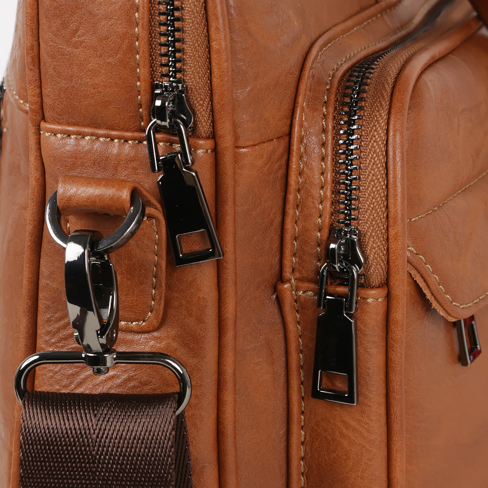 Мужской портфель фирмы Polar выполнен из экокожи. Портфель имеет одно основное отделение, которое закрывается на металлическую молнию. Внутри есть отделение для электронных устройств или ноутбука с диагональю до 15” и открытый кармашек. Модель вмещает формат A4. Спереди есть большой вместительный карман на молнии. Сзади сумки есть также карман на молнии. Высота ручек 15 см, в комплекте есть регулируемый наплечный ремень, максимальная длина 140 см.