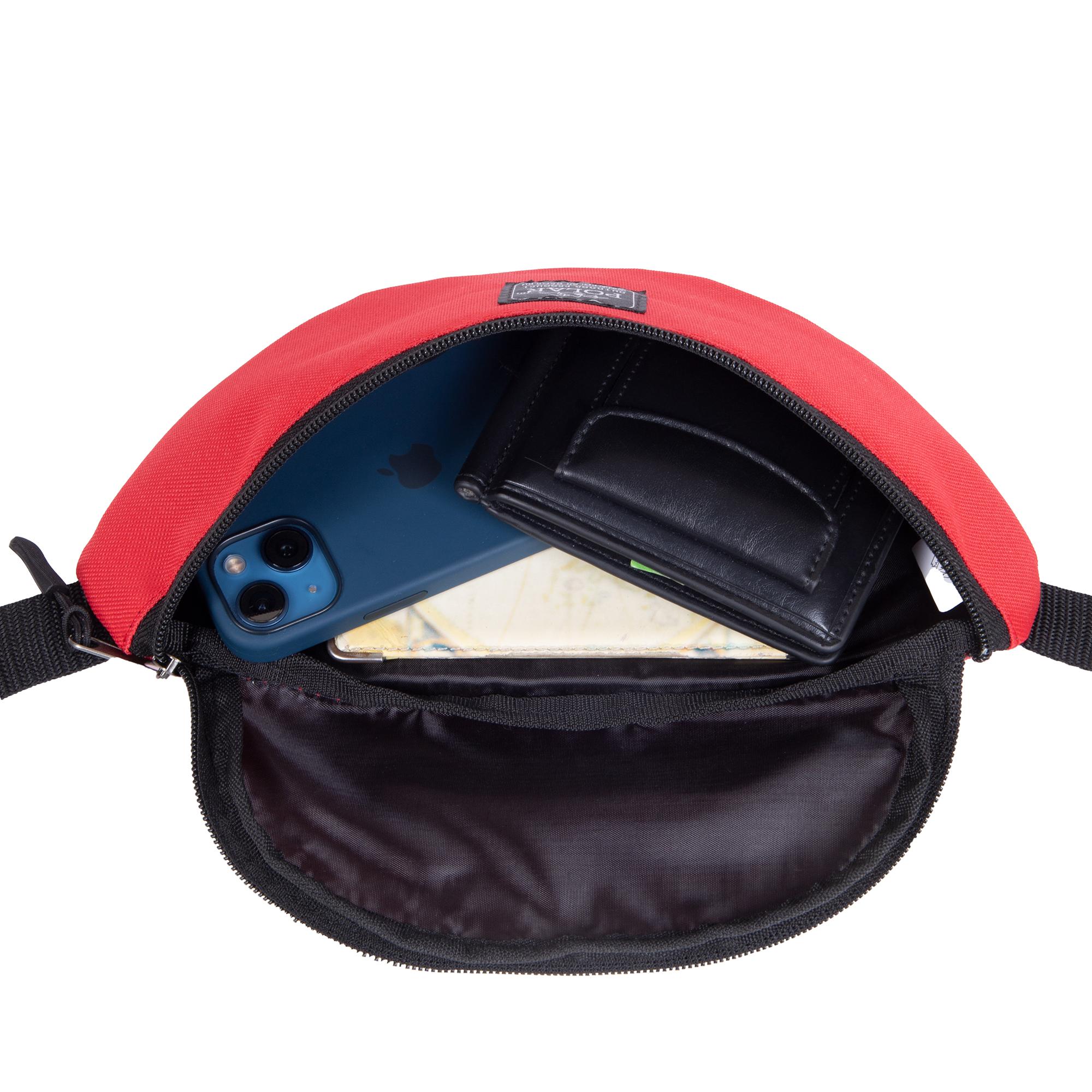 Ремень легко регулируется, что позволяет носить сумку как на поясе, так и через плечо. Максимальная длина ремня 105 см.