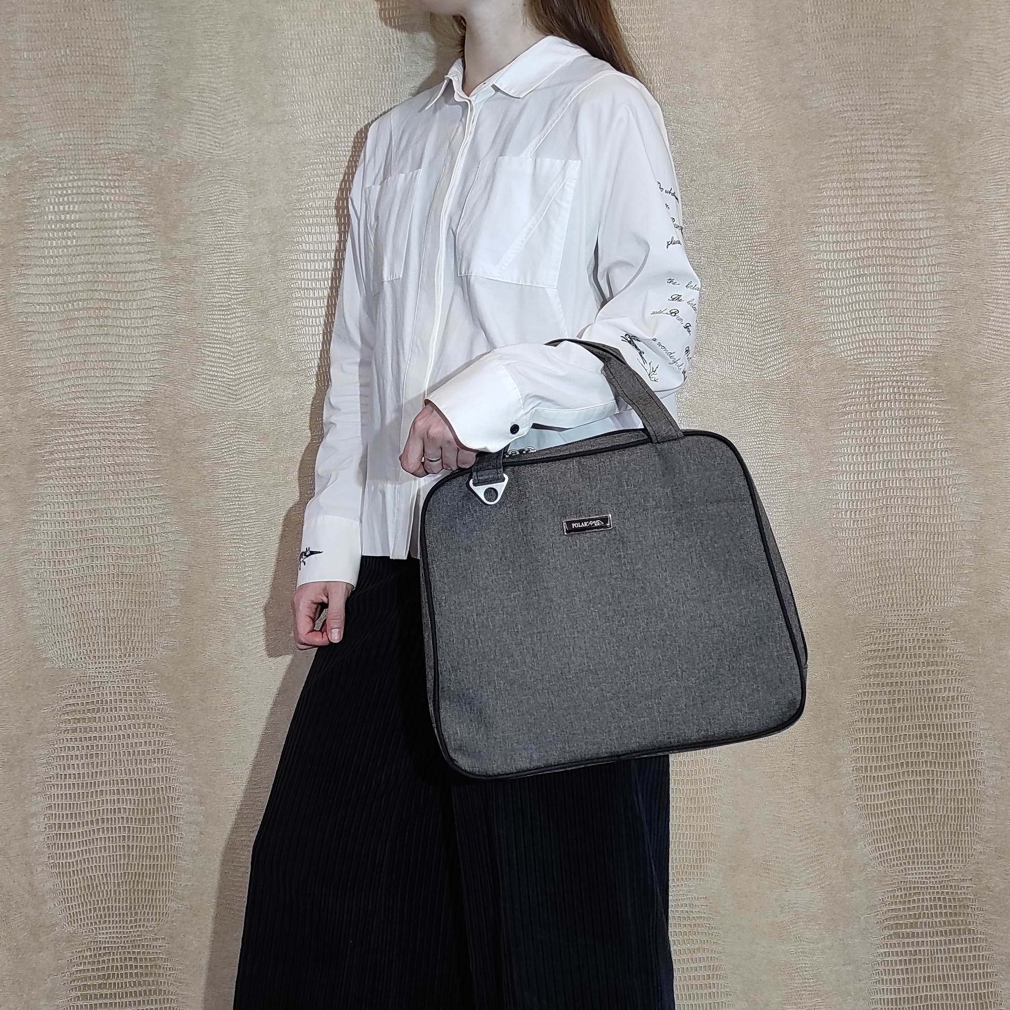Сумку –папку удобно носить в руке. Высота ручек 13 см.  В комплекте съемный регулируемый ремень, длиной до 110 см.