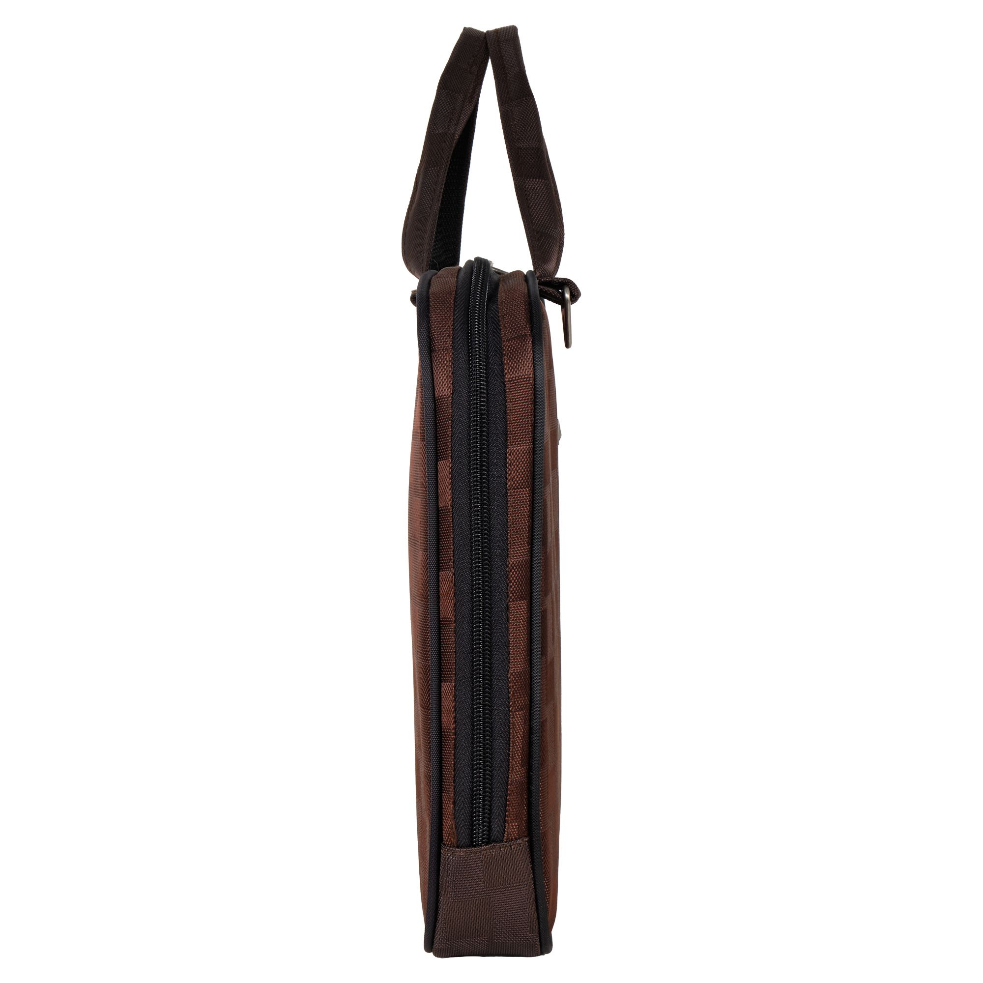 Папка имеет одно основное отделение и карман на молнии для мелочей. Папка подойдет для ноутбука с размером диагонали до 14 дюймов. Обратите внимание, папка имеет форму трапеции, размер по дну 36 см, размер по верху (узкой части) 32 см.