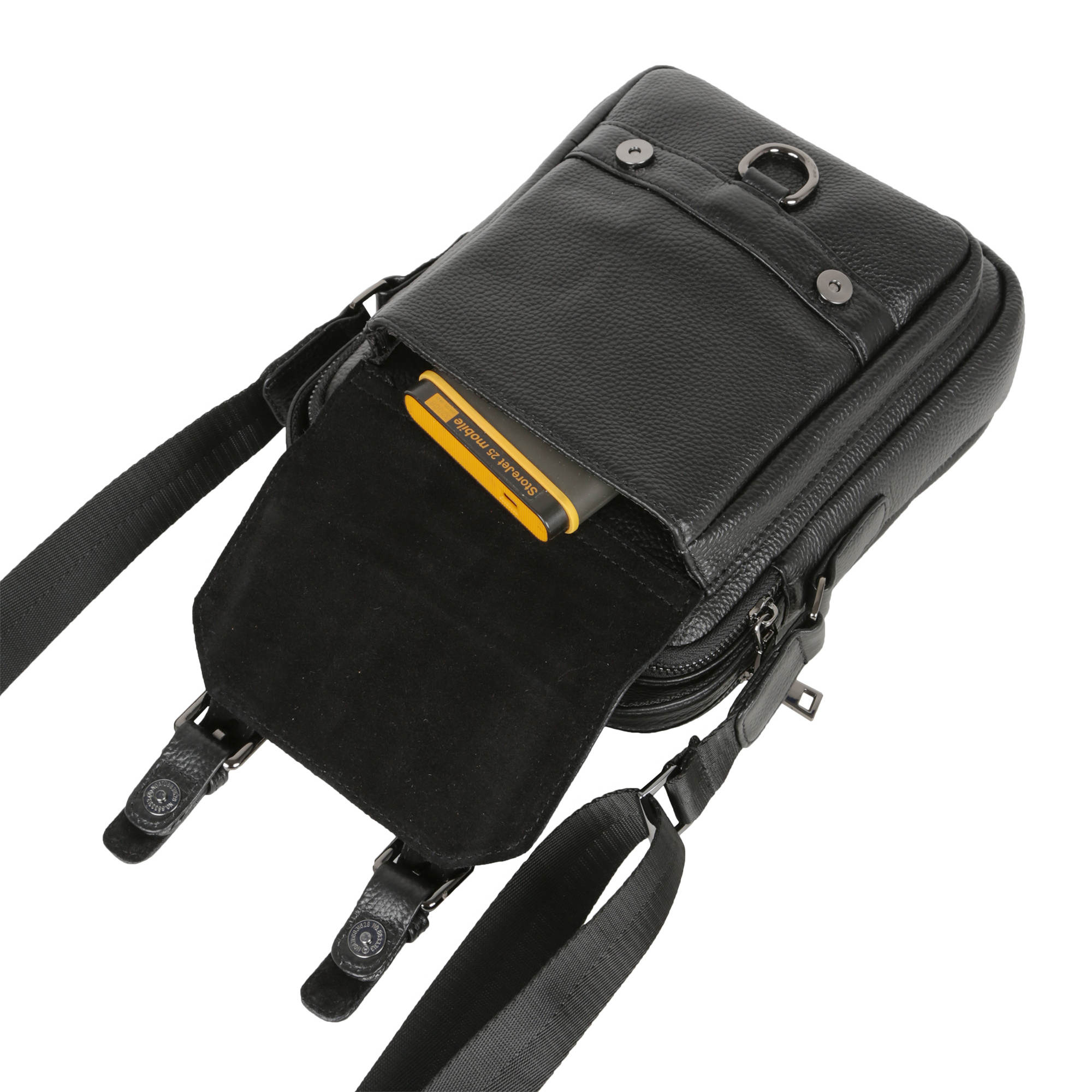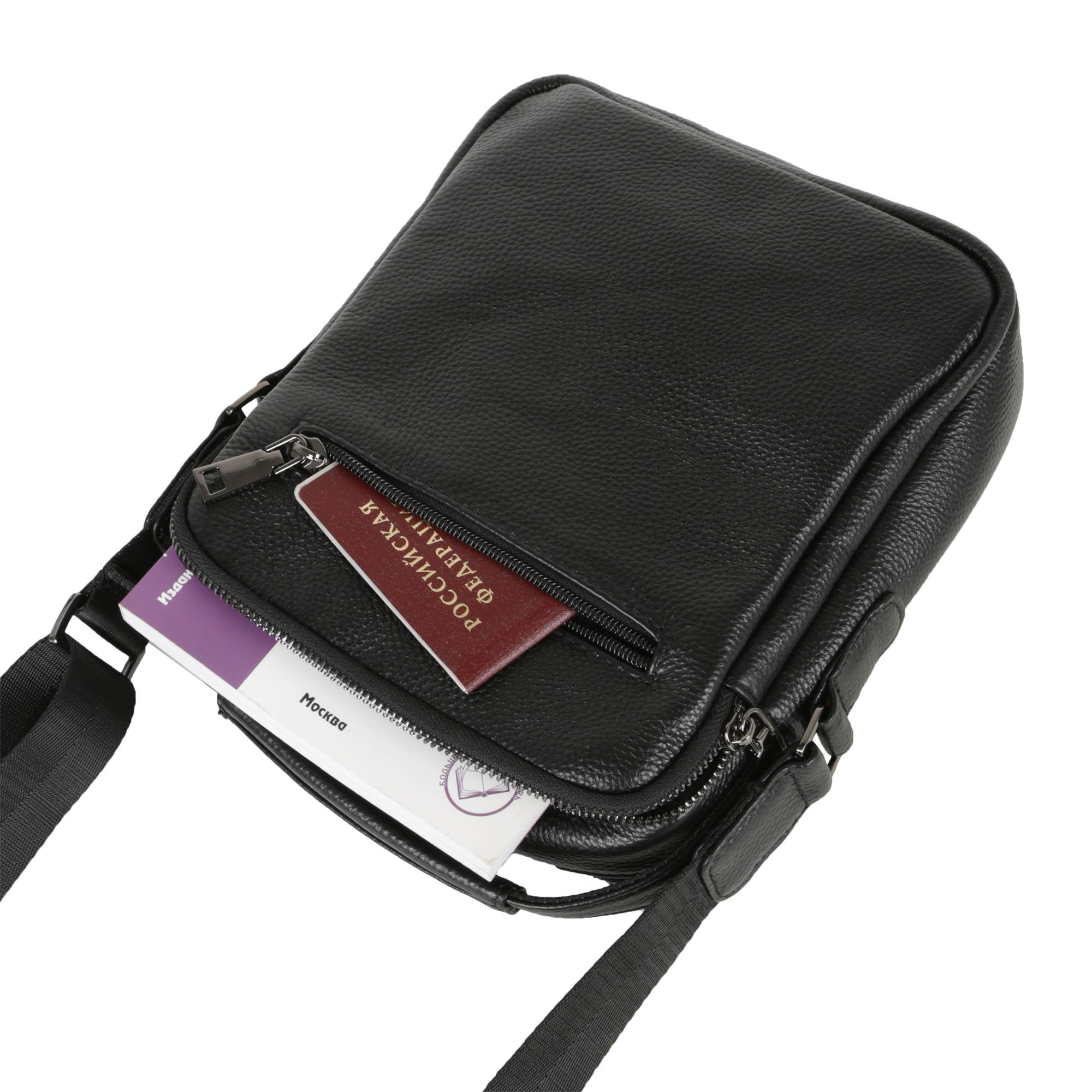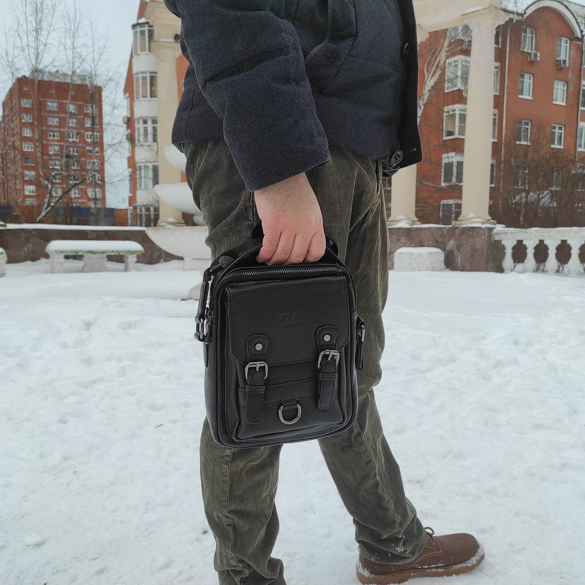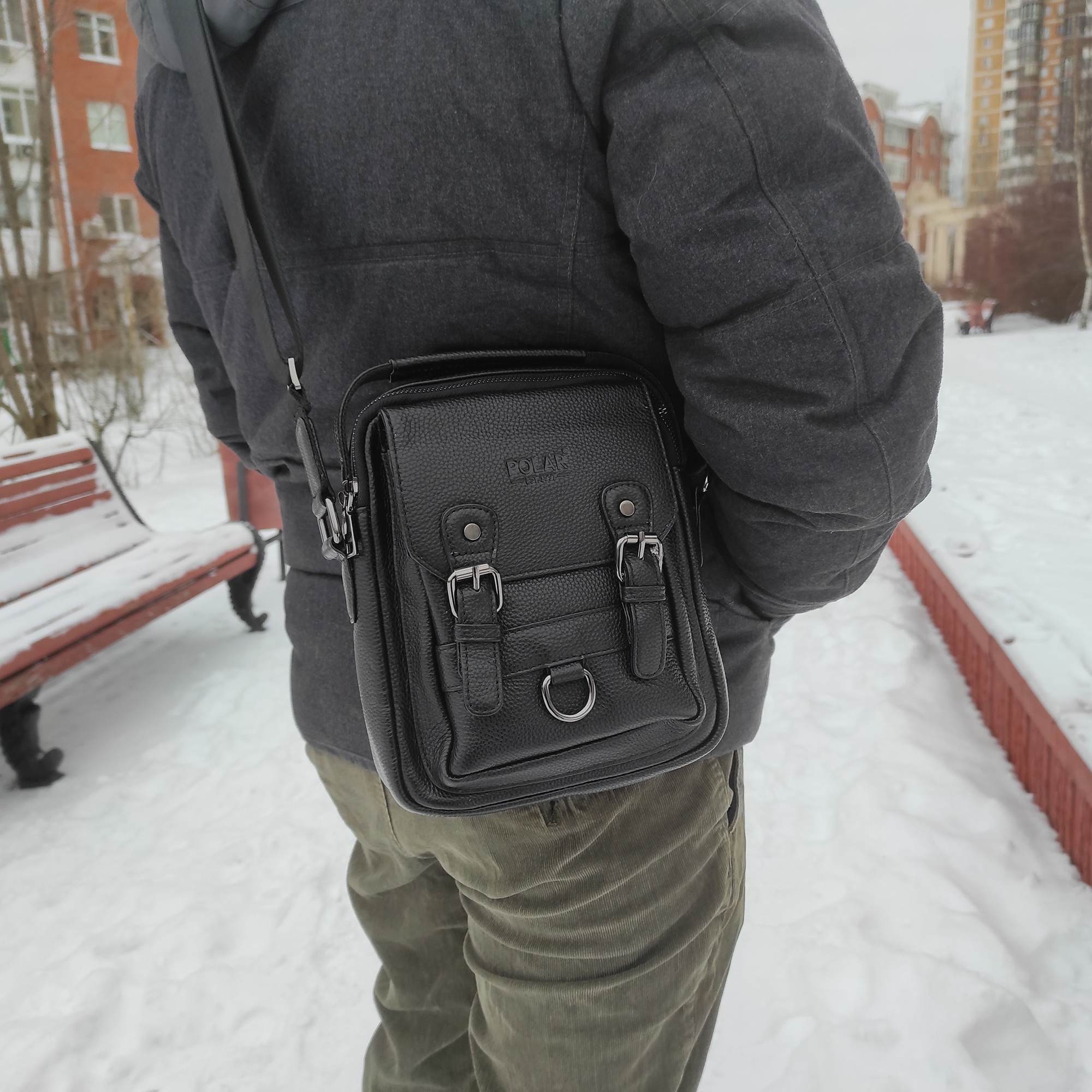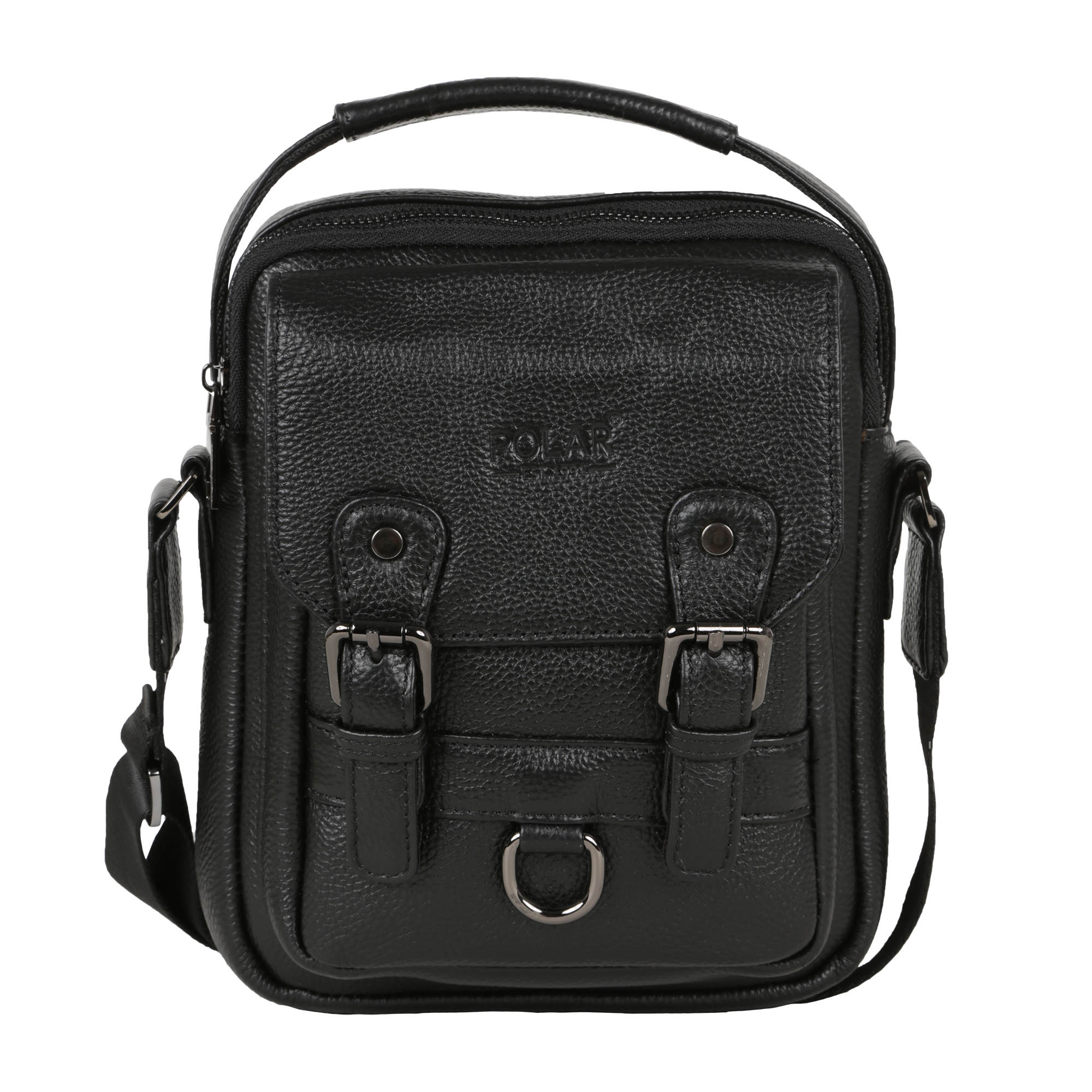 Сумка мужская для документов фирмы Polar выполнена из натуральной кожи. Эта модель отлично подойдет для мобильного телефона, карточек, документов и прочих мелочей. Основное отделение закрывается на металлическую молнию. Внутри один небольшой открытый кармашек. Снаружи накладной карман на магнитных кнопках. На обратной стороне сумки, есть карман на молнии. В комплекте есть съемный, регулируемый плечевой ремень. Высота ручки 4 см.