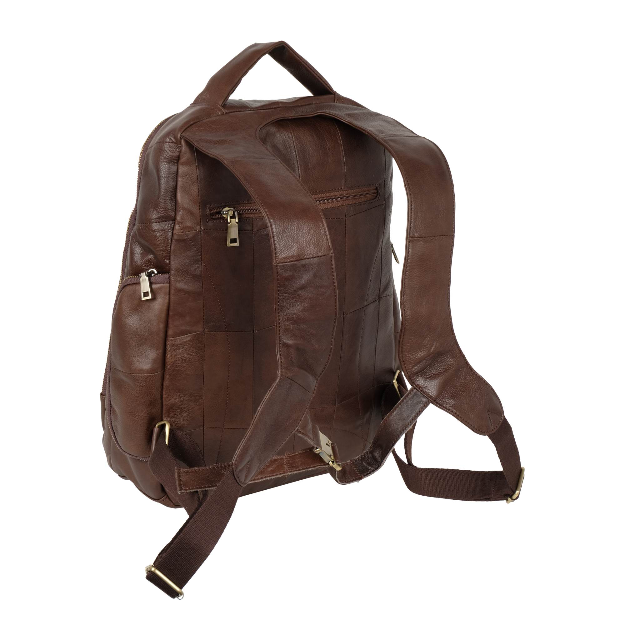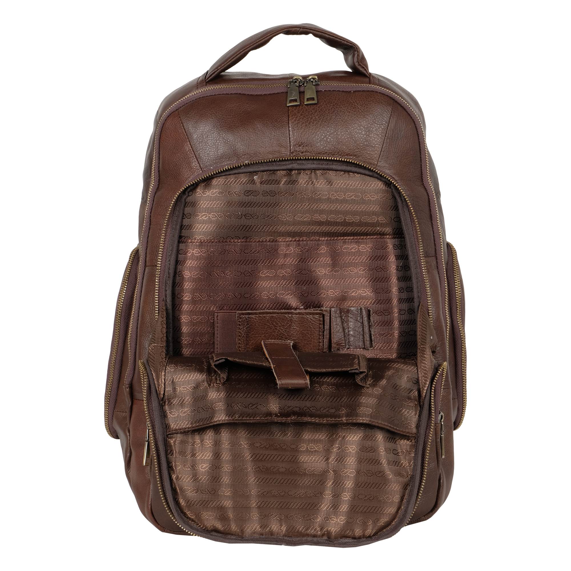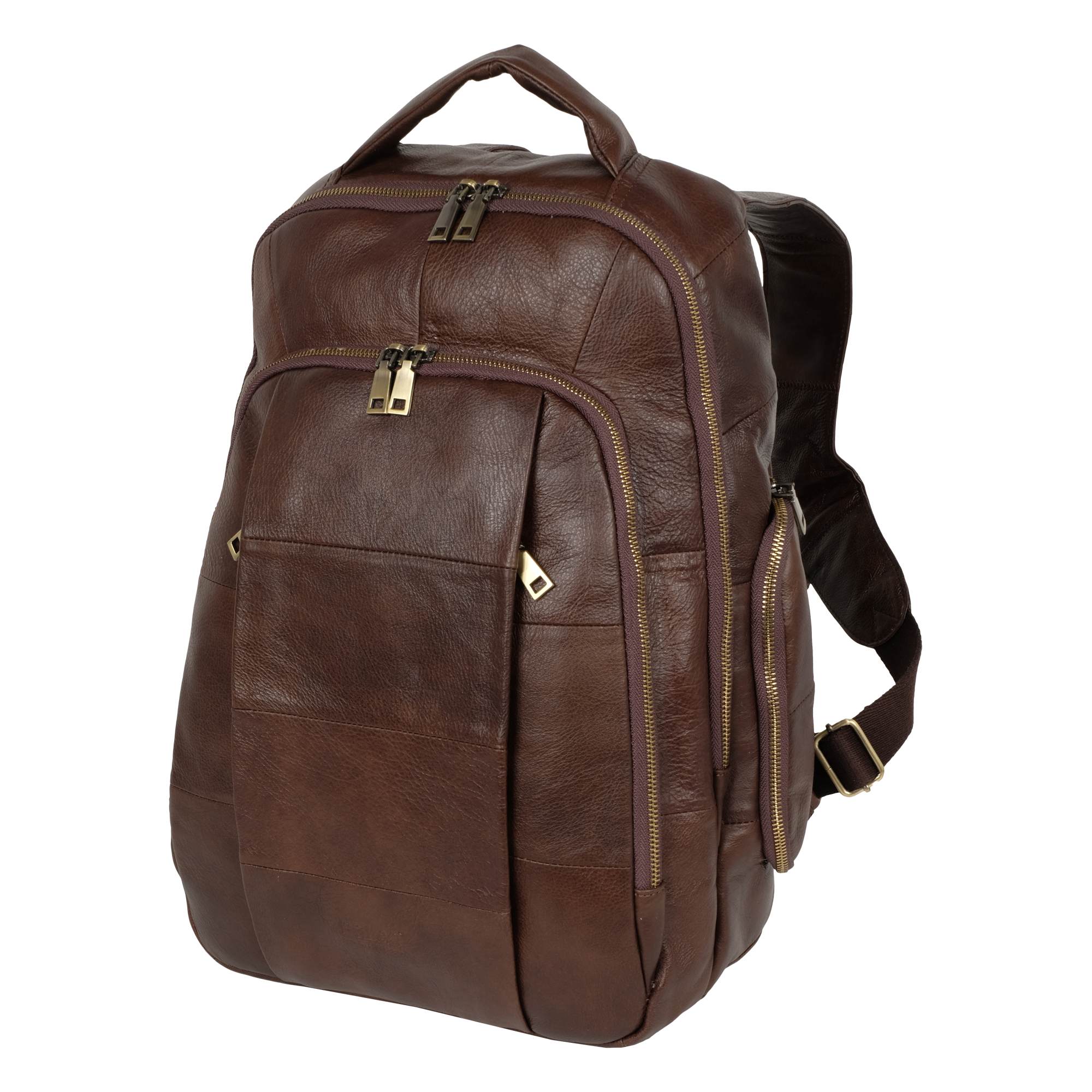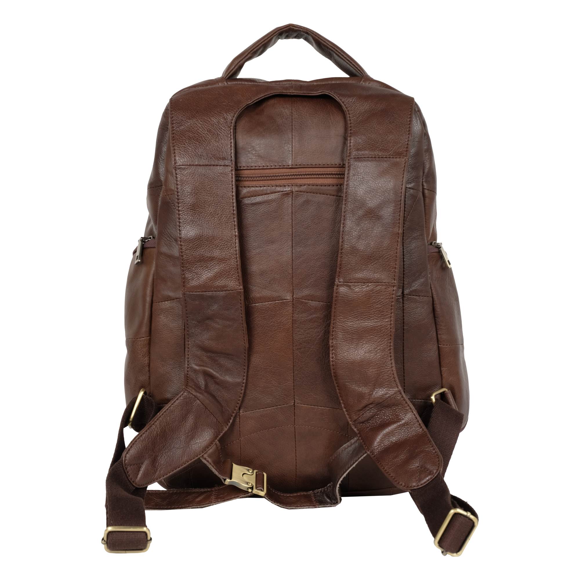 Стильный городской рюкзак с отделением для ноутбука 14 дюймов выполнен из натуральной кожи. Модель состоит из двух отделений на молнии. Внутри – карман на молнии, открытый карман и органайзер. Снаружи на задней стенке есть один карман на молнии. Два кармана спереди сумки на молнии. По бокам рюкзака расположены карманы на молнии. Лямки, шириной - 60 мм регулируются по длине