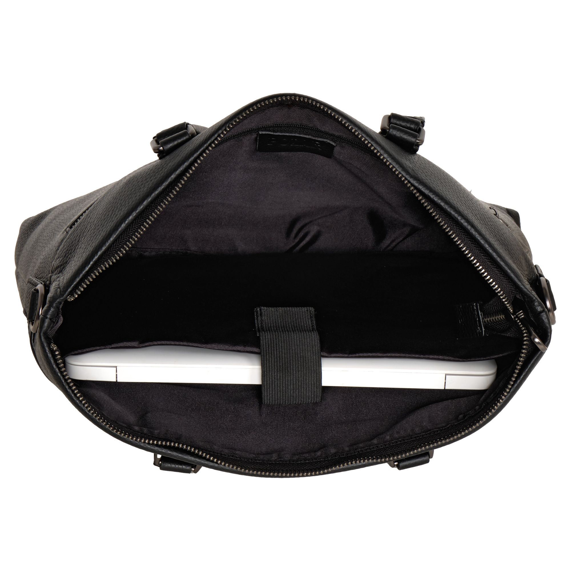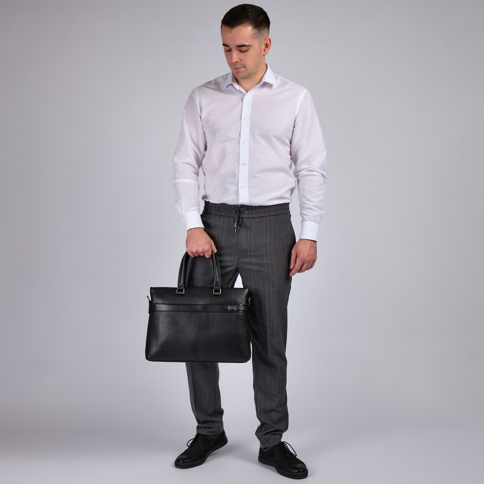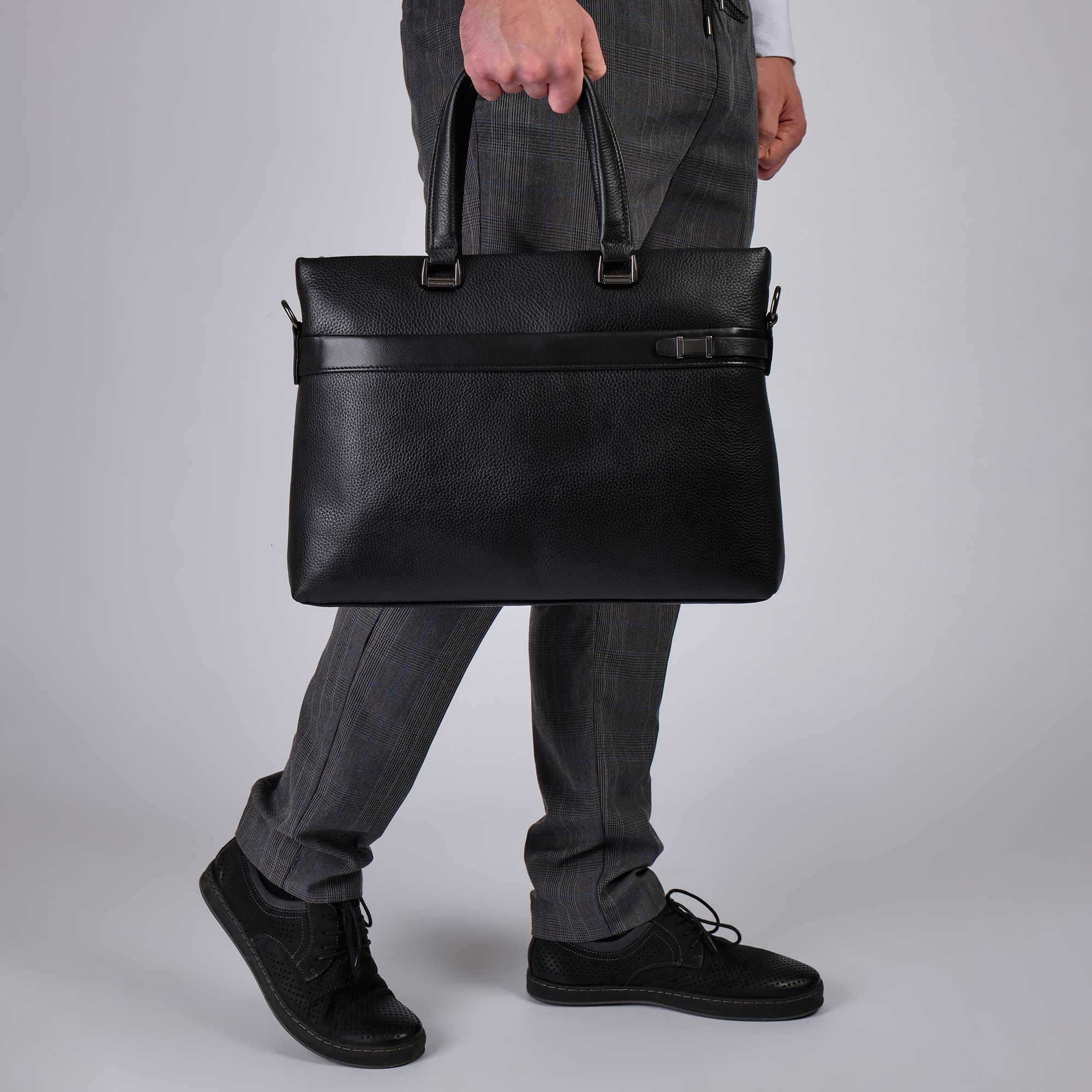 Мужской портфель фирмы Polar из высококачественной натуральной кожи. Черный цвет подчеркивает его классический вид, а также делает возможным легко сочетать его с любым стилем одежды. Подходит для деловых встреч, офисной работы, для учебы в институте и командировок. Портфель имеет одно основное отделение, которое закрывается на металлическую молнию. Внутри есть отделение для электронных устройств или ноутбука с диагональю до 13,3 и открытый кармашек. Модель вмещает формат A4. На передней и задней стенке сумки есть отделения, которое закрывается на магнитную кнопку. Сзади карман на молнии. Высота ручек 18 см, в комплекте есть регулируемый наплечный ремень, максимальная длина 153 см.