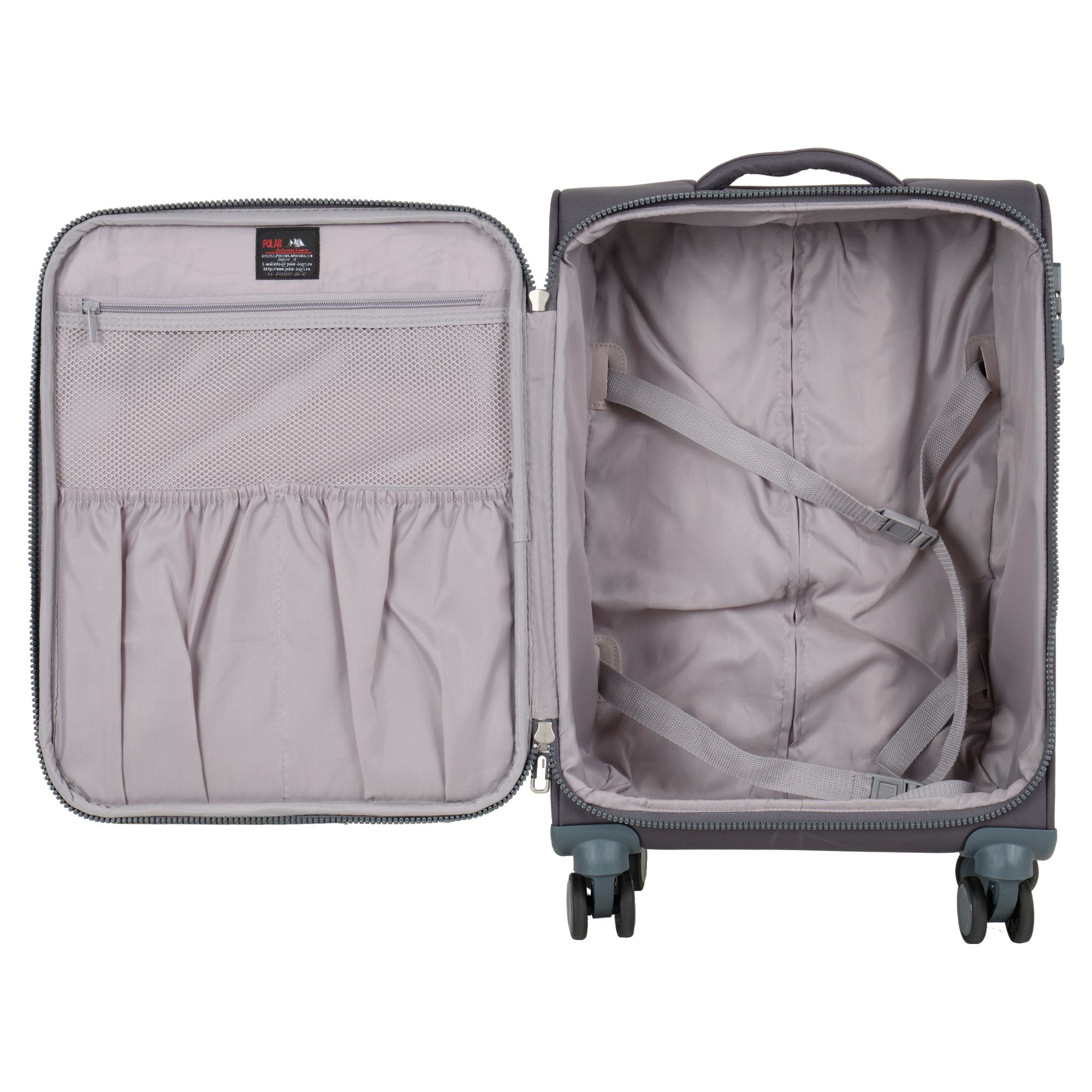 Новый облегченный чемодан фирмы Polar с отделкой колес, тележки , молнии в цвете. Чемодан закрывается по периметру на двухстороннюю широкую молнию. Сверху удобная ручка. Бесшумные и прочные двойные вращающиеся колеса 360 градусов для легкого перемещения и хорошей балансировки. Встроенный кодовый замок TSA, снаружи на передней стенке вместительный карман на молнии. Выдвижная ручка, максимальная высота которой составляет 105 см.