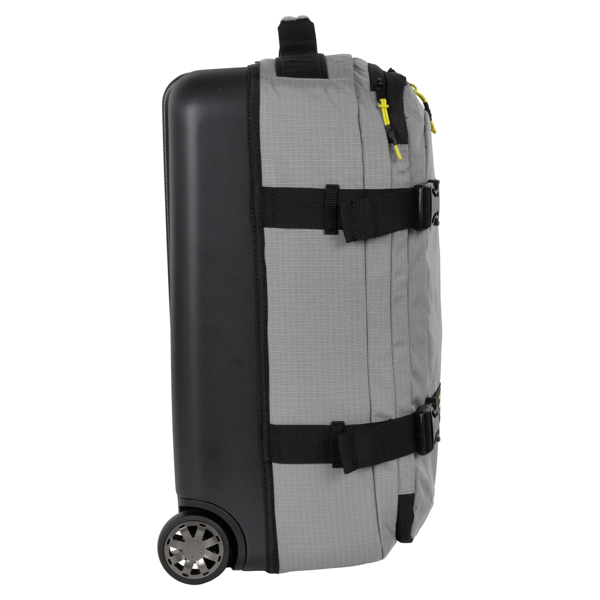 Внутри-основное отделение с прижимными ремнями, карман на молнии и сетчатый карман. На передней стенке два кармана на молнии. Чемодан закрывается на надежную молнию и карабины. Стильный чемодан модной расцветки имеет в наличии две ручки для переноски сбоку и сверху чемодана, а также выдвижную ручку- тележку.