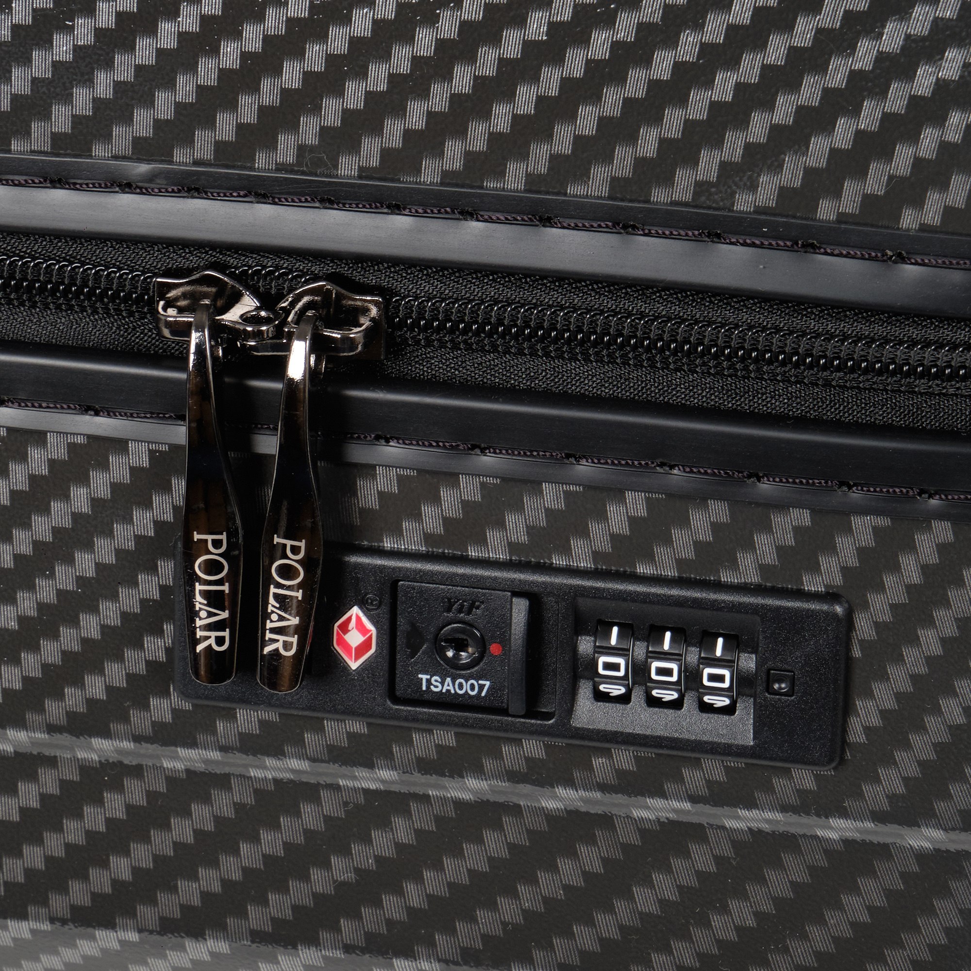 Чемодан фирмы Polar выполнен из нового легкого материал PC (Поликарбонат). В отличие от ABS-пластика чемоданы из PC можно эксплуатировать при очень низких температурах. PC (Поликарбонат) обладает высокой прочностью, эластичностью и высокой ударостойкостью. Особенностью чемоданов из PC (Поликарбонат) является малый вес. Внутри подкладка из полиэстера. Одна секция чемодана с креплением резинками для одежды. Вторая секция застегивается на молнию для удобства упаковки вещей. Есть кодовый замок TSA. Бесшумные и прочные двойные вращающиеся колеса 360 градусов для легкого перемещения.