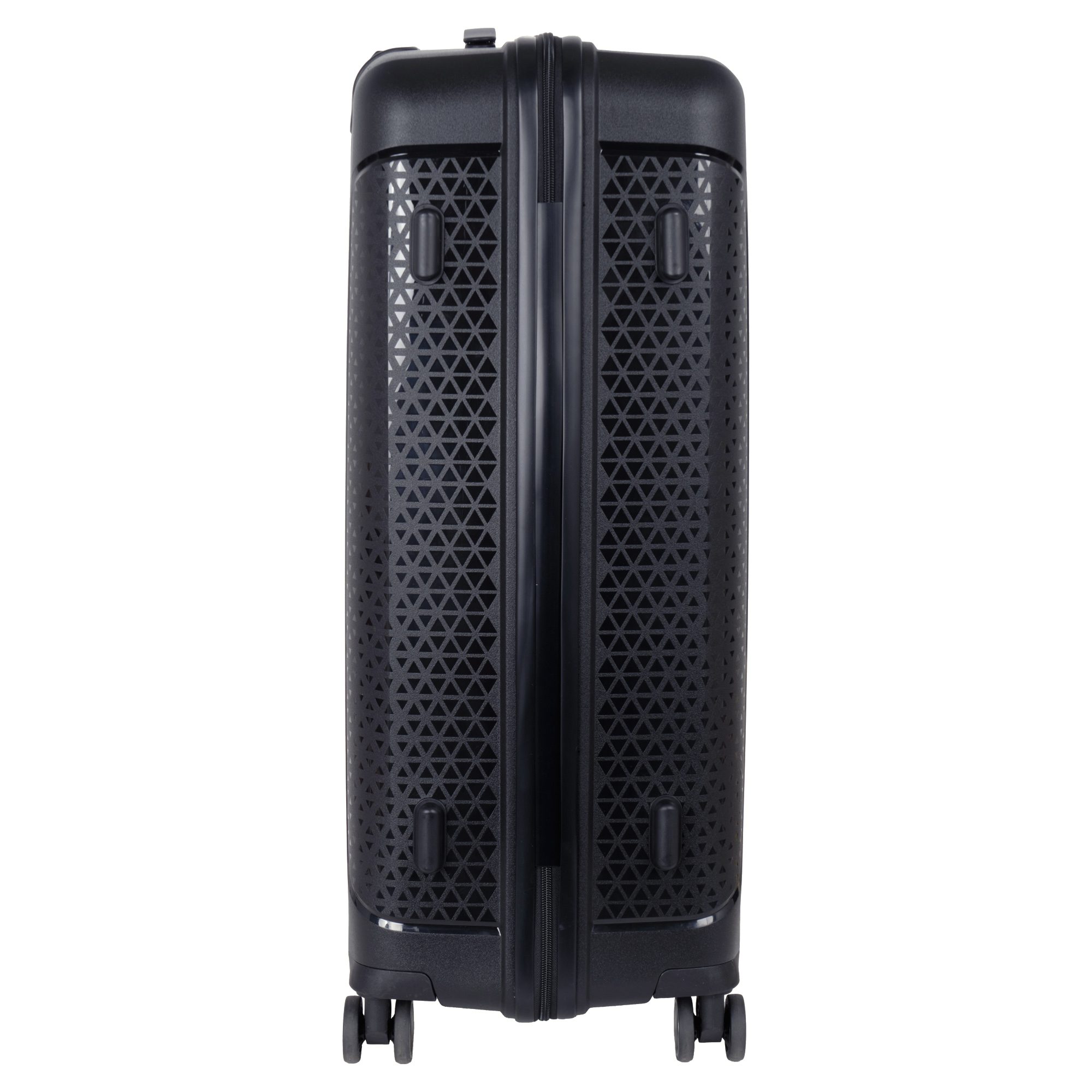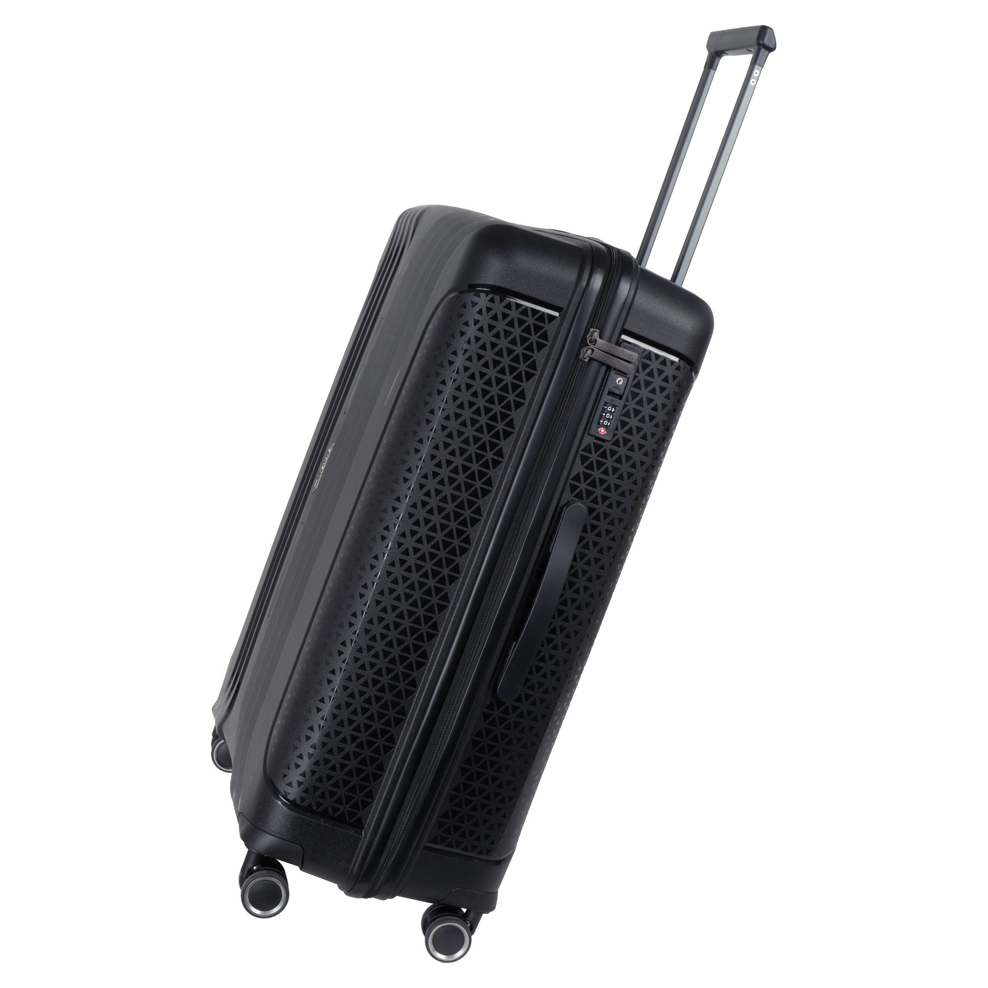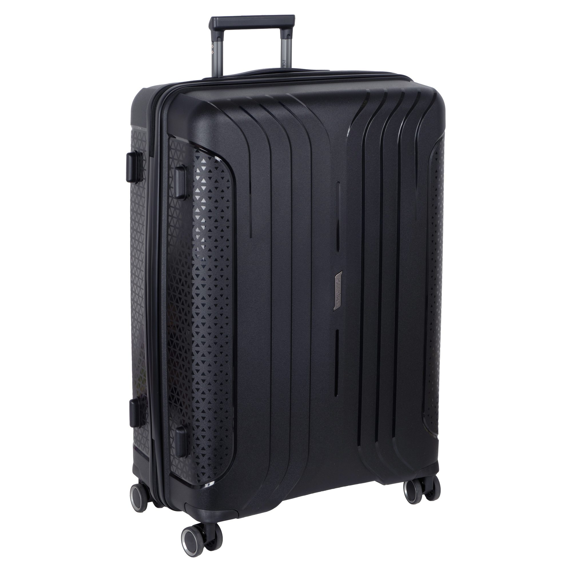 Чемодан фирмы Polar на четырех прорезиненных колесиках. Чемодан выполнен из PP-пластика (Полипропилен). Полипропилен обладает высокой прочностью, эластичностью и высокой ударостойкостью. Внутри подкладка из полиэстра. Одна секция чемодана с креплением резинками для одежды. Вторая секция застегивается на молнию для удобства упаковки вещей. Есть кодовый замок TSA.