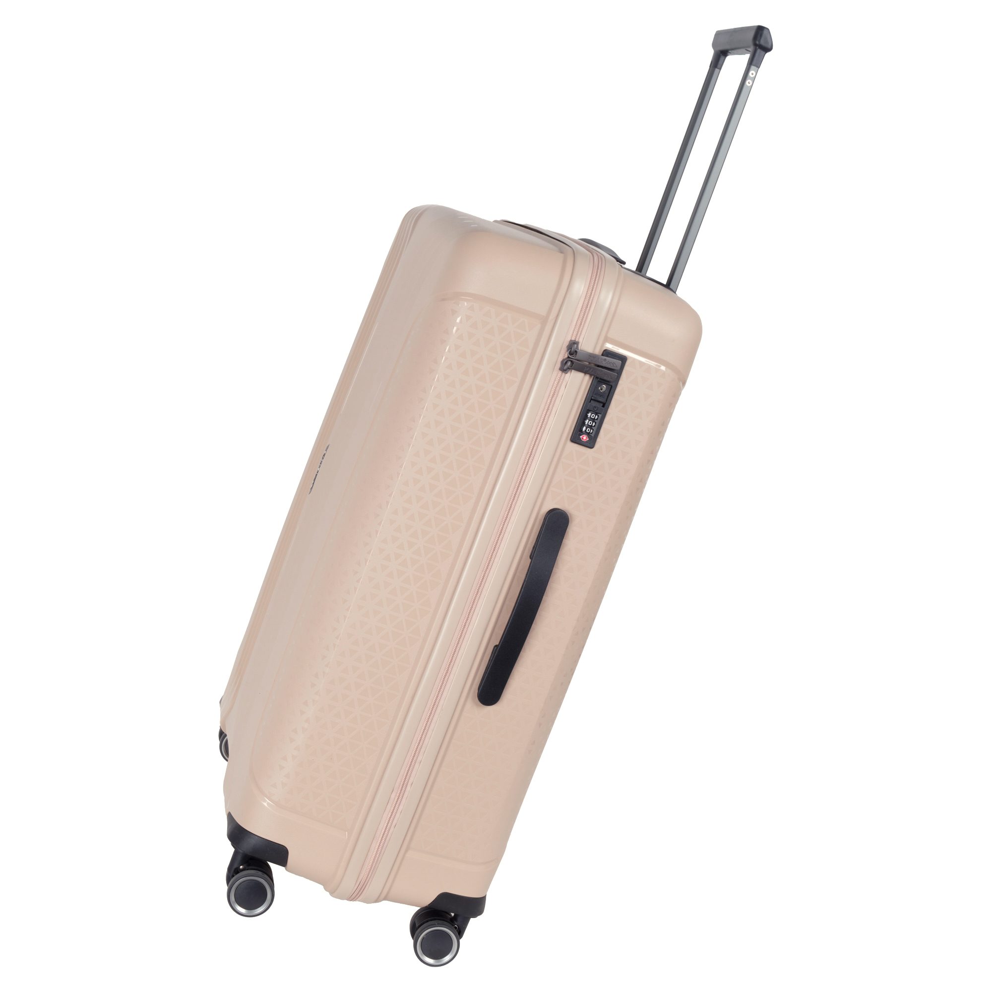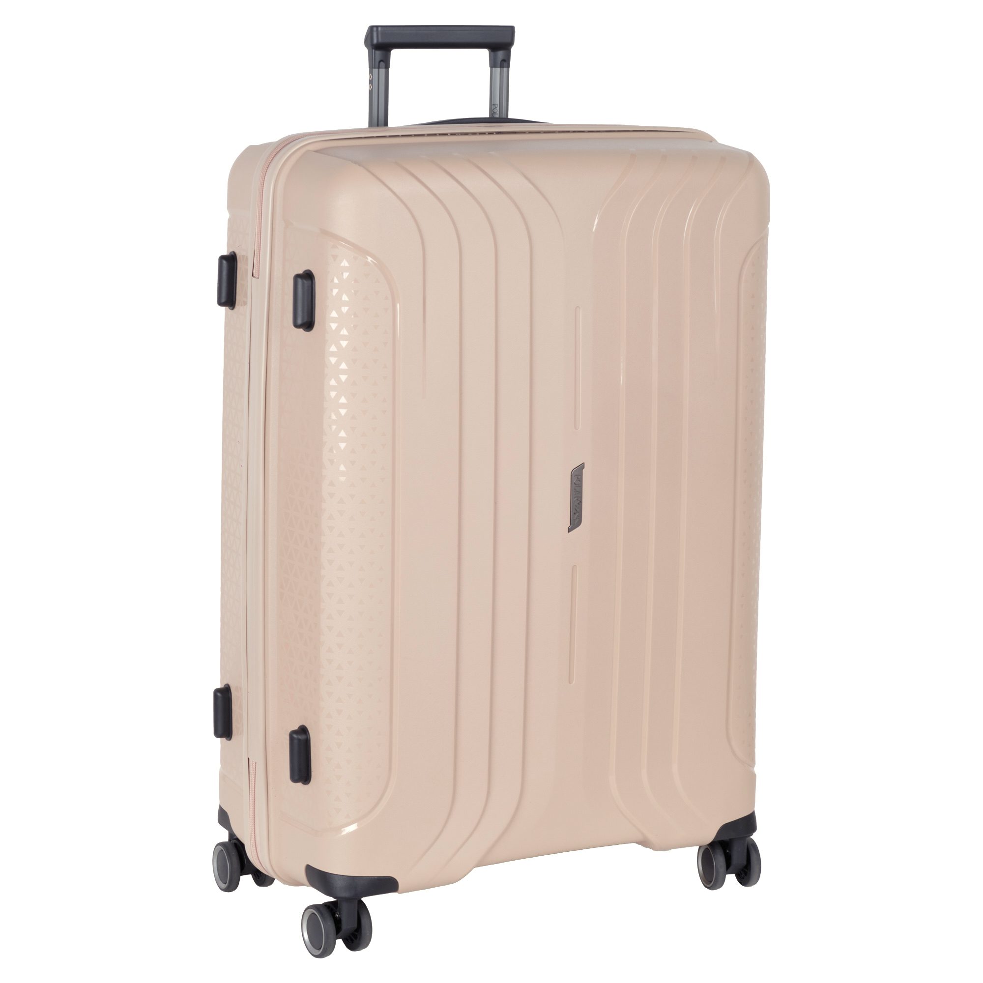 Чемодан фирмы Polar на четырех прорезиненных колесиках. Чемодан выполнен из PP-пластика (Полипропилен). Полипропилен обладает высокой прочностью, эластичностью и высокой ударостойкостью. Внутри подкладка из полиэстра. Одна секция чемодана с креплением резинками для одежды. Вторая секция застегивается на молнию для удобства упаковки вещей. Есть кодовый замок TSA.