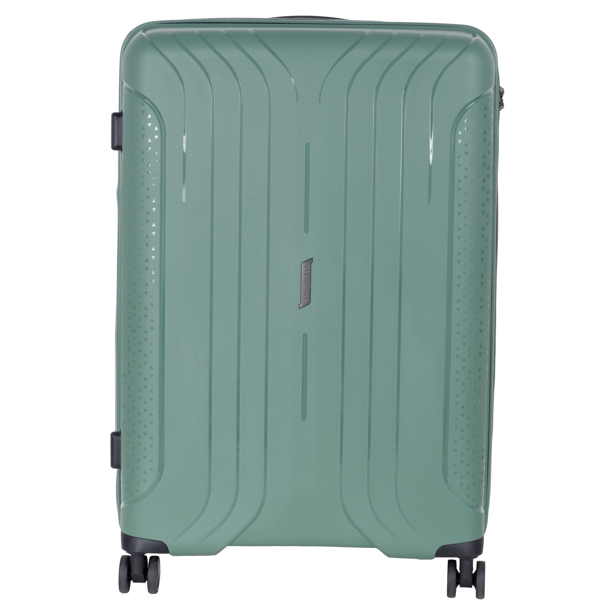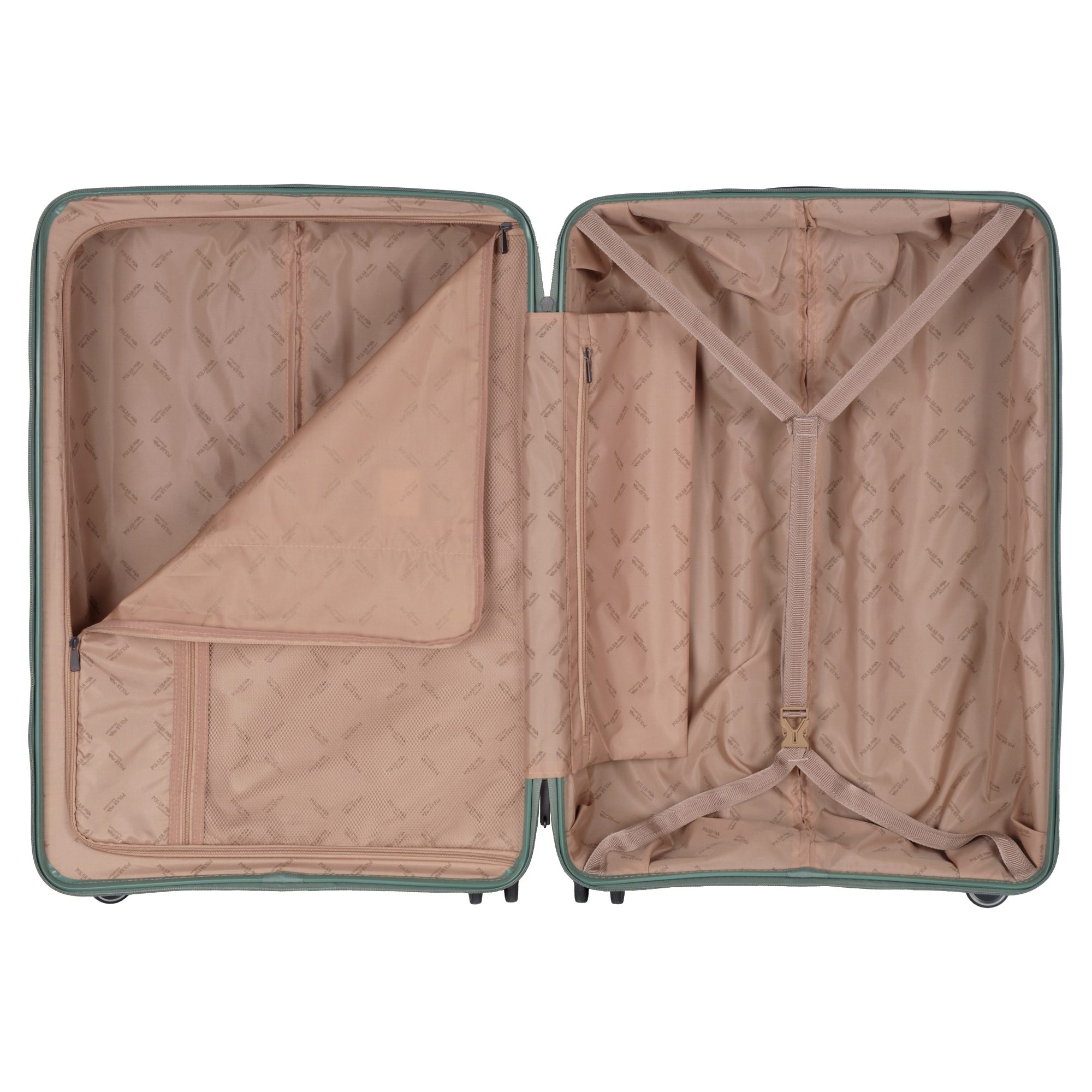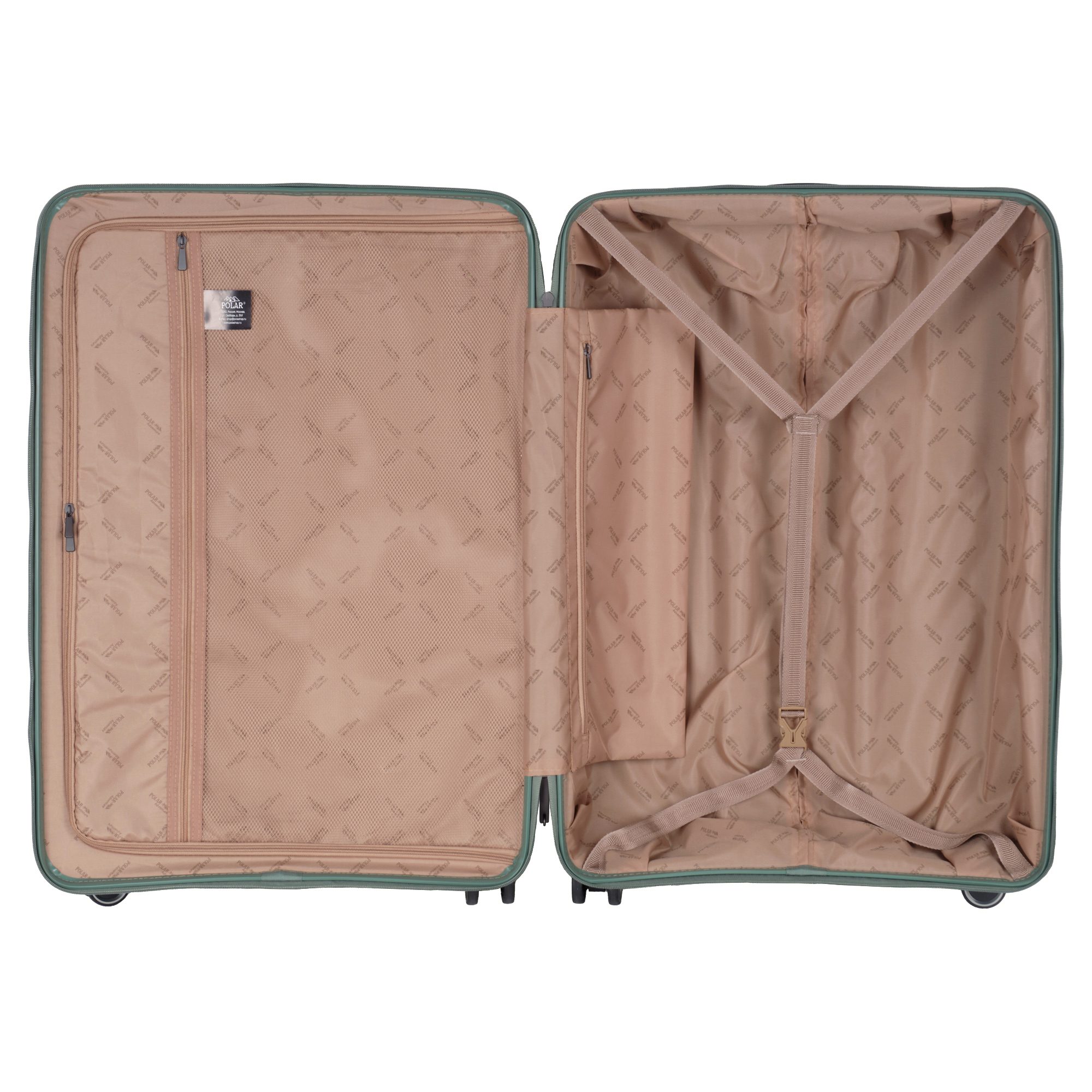 Чемодан фирмы Polar на четырех прорезиненных колесиках. Чемодан выполнен из PP-пластика (Полипропилен). Полипропилен обладает высокой прочностью, эластичностью и высокой ударостойкостью. Внутри подкладка из полиэстра. Одна секция чемодана с креплением резинками для одежды. Вторая секция застегивается на молнию для удобства упаковки вещей. Есть кодовый замок TSA.