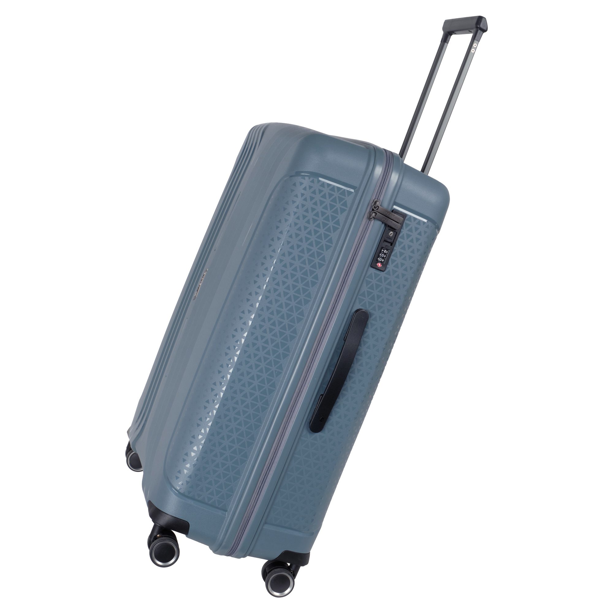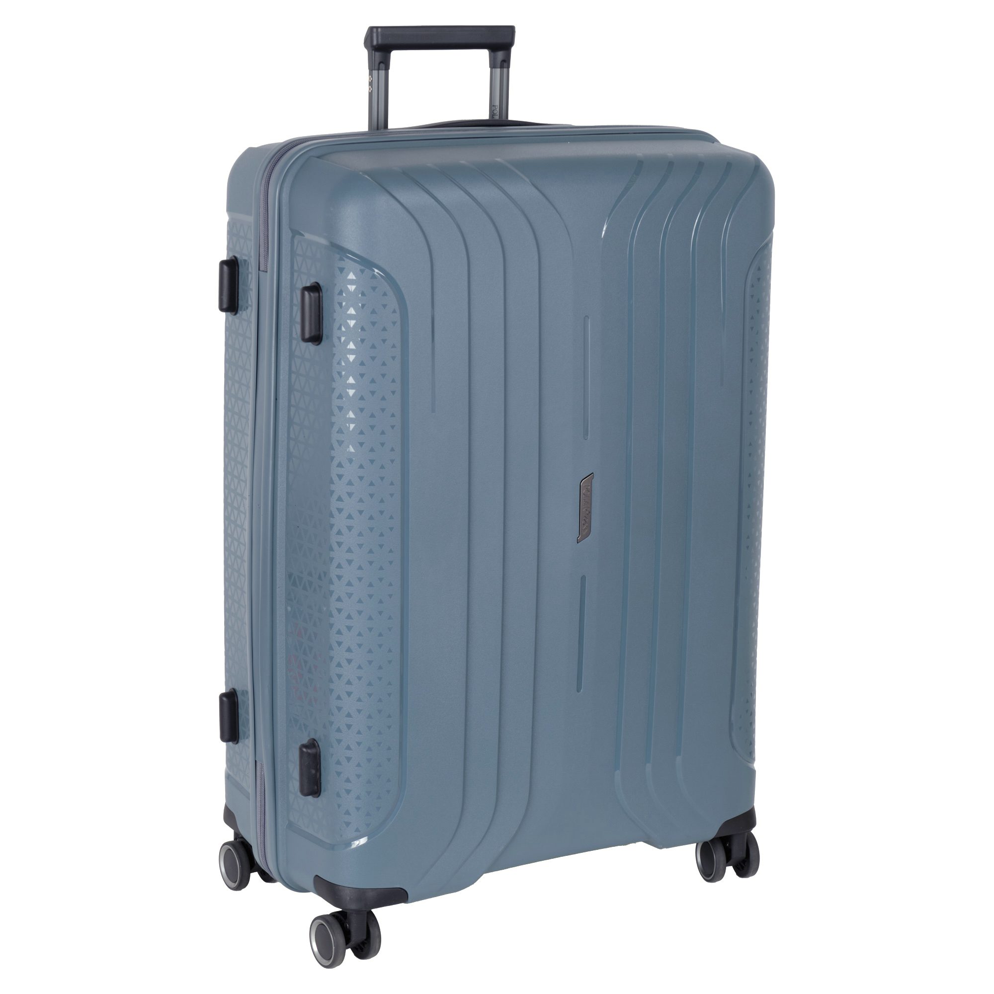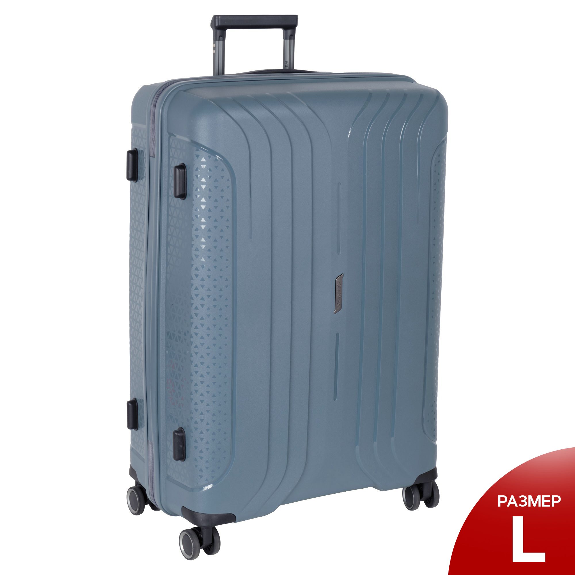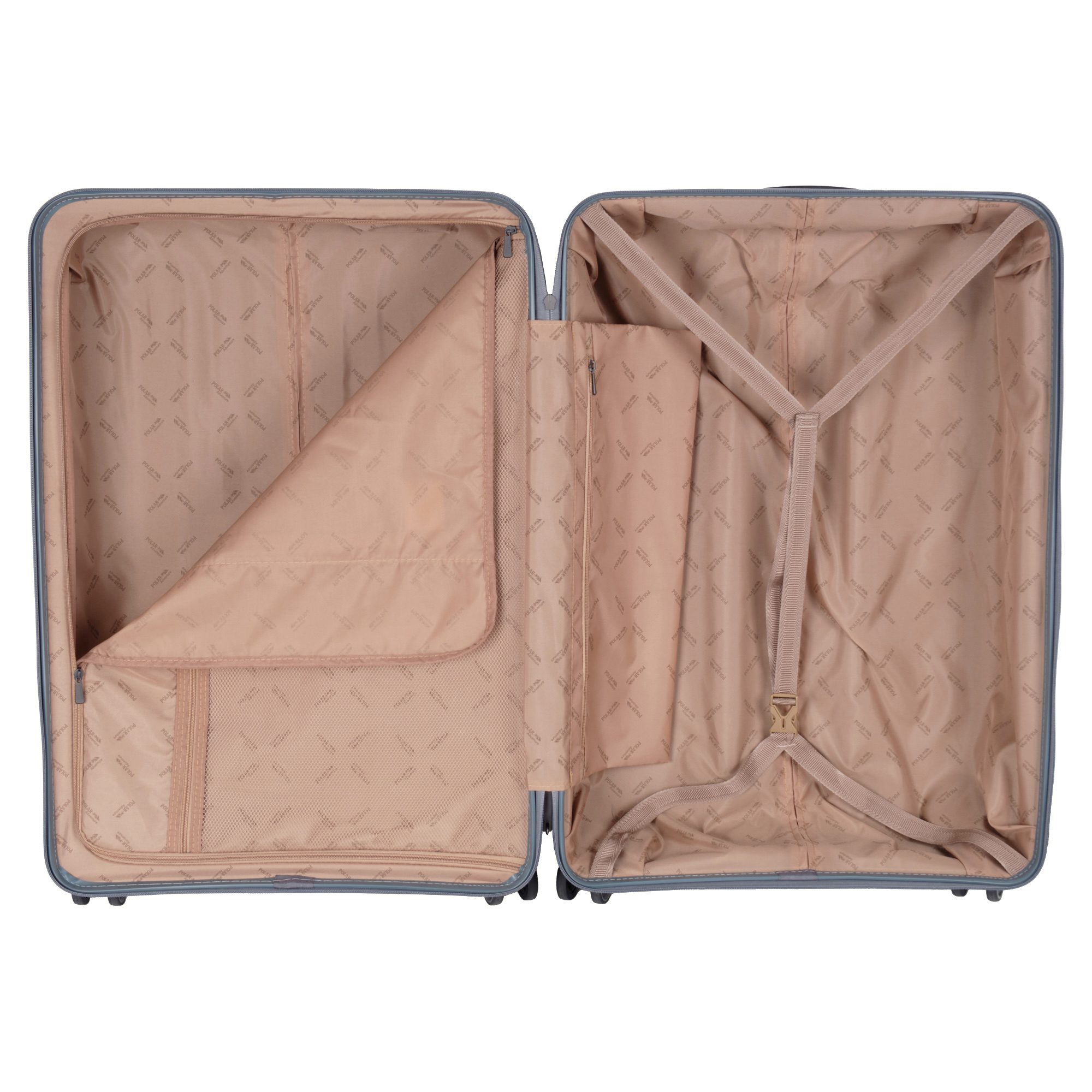 Чемодан фирмы Polar на четырех прорезиненных колесиках. Чемодан выполнен из PP-пластика (Полипропилен). Полипропилен обладает высокой прочностью, эластичностью и высокой ударостойкостью. Внутри подкладка из полиэстра. Одна секция чемодана с креплением резинками для одежды. Вторая секция застегивается на молнию для удобства упаковки вещей. Есть кодовый замок TSA.