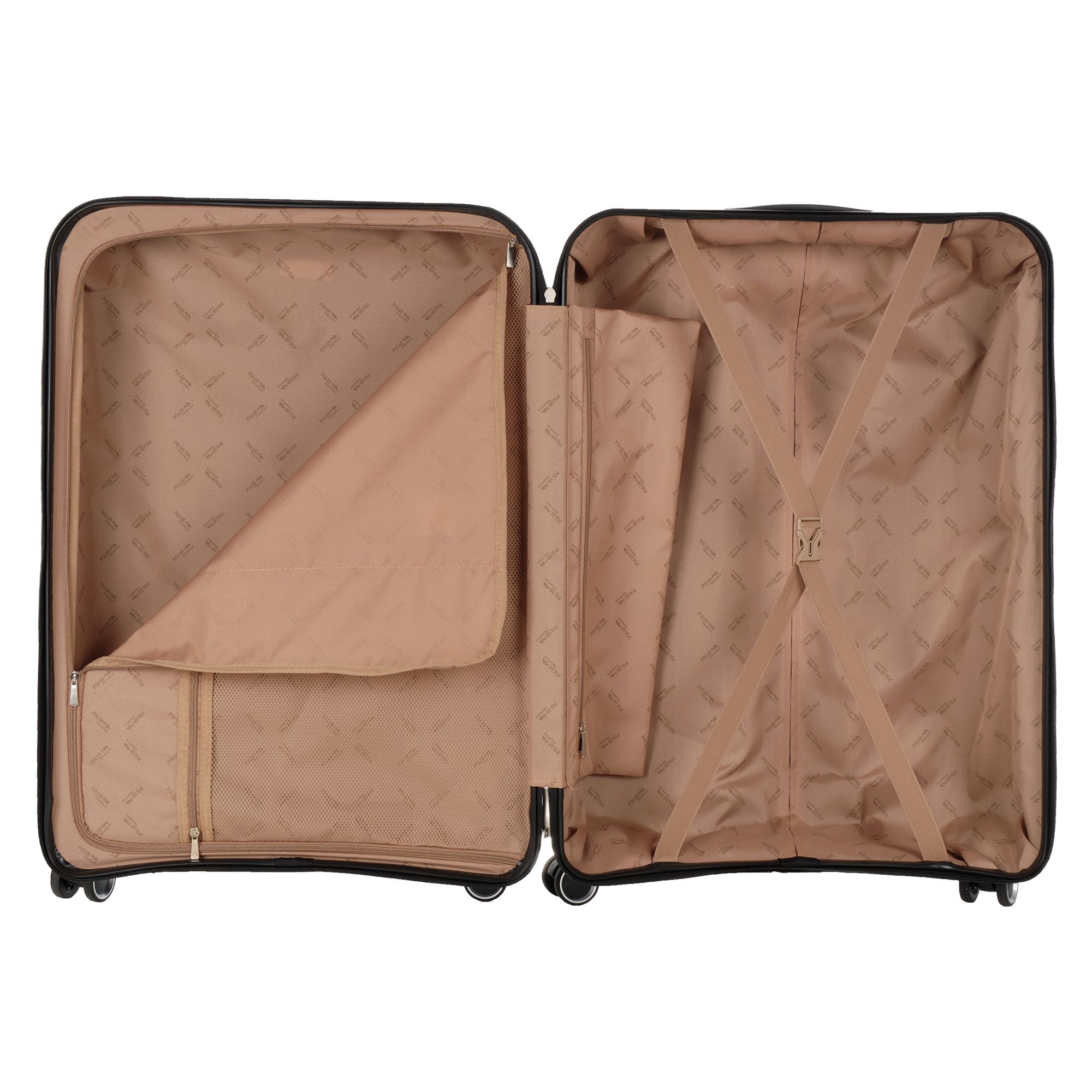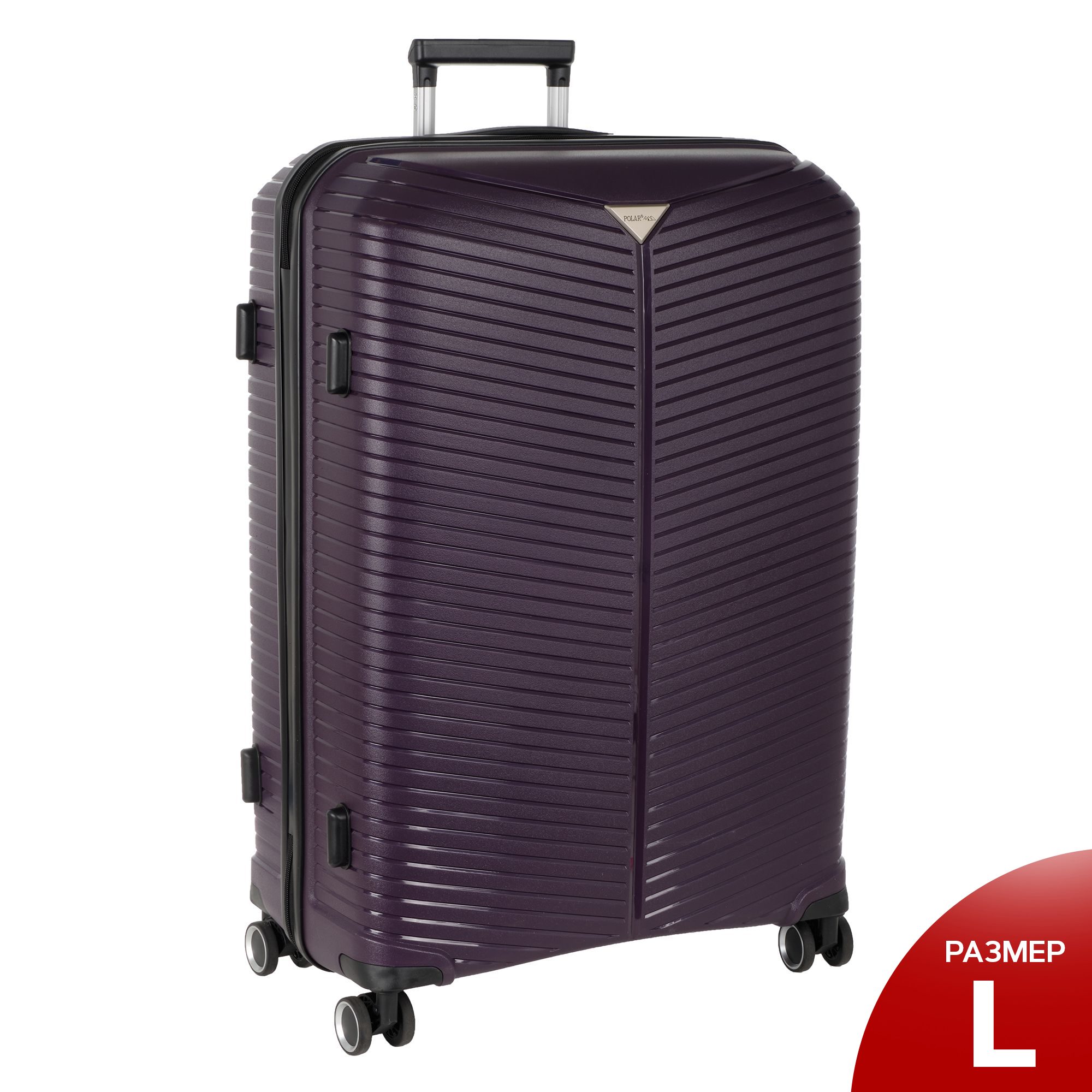 Чемодан фирмы Polar на четырех прорезиненных колесиках. Чемодан выполнен из PP-пластика (Полипропилен). Полипропилен обладает высокой прочностью, эластичностью и высокой ударостойкостью. Внутри подкладка из полиэстра. Одна секция чемодана с креплением резинками для одежды. Вторая секция застегивается на молнию для удобства упаковки вещей. Есть кодовый замок TSA.