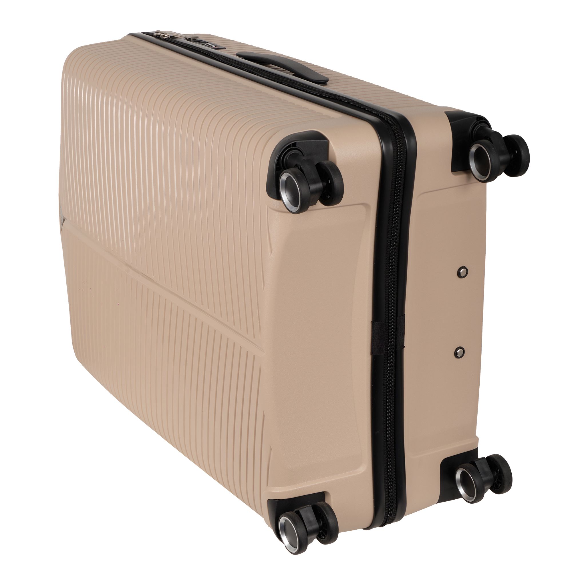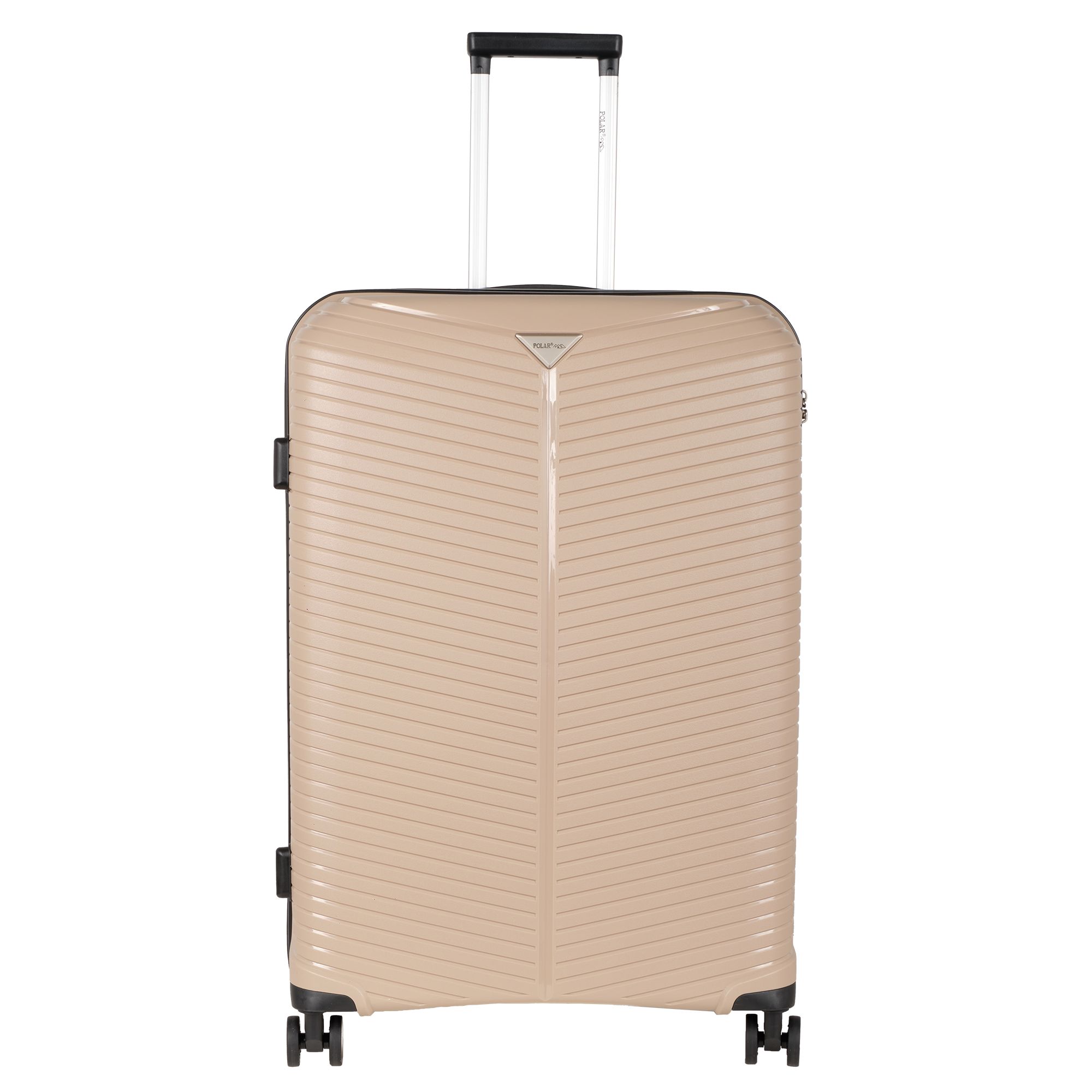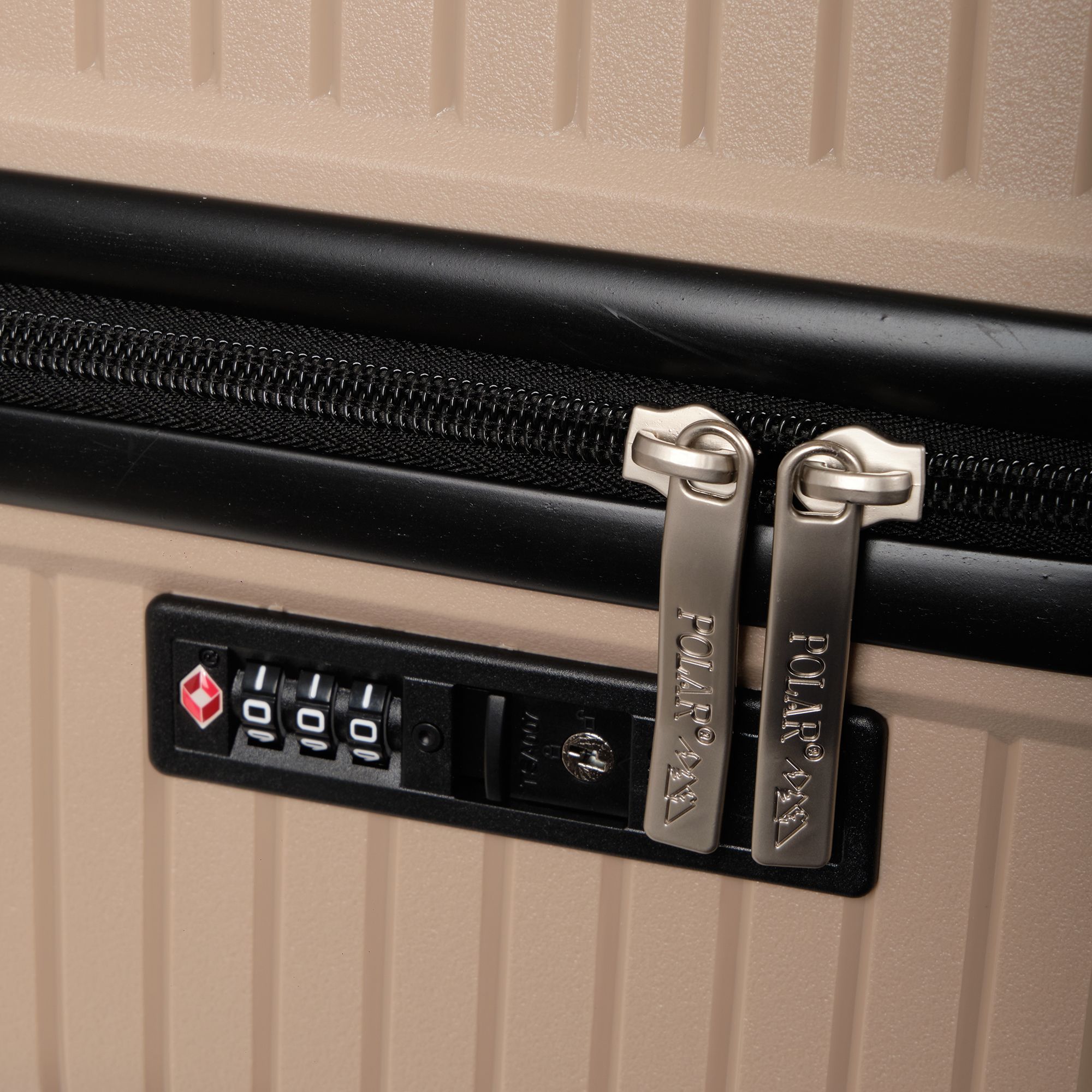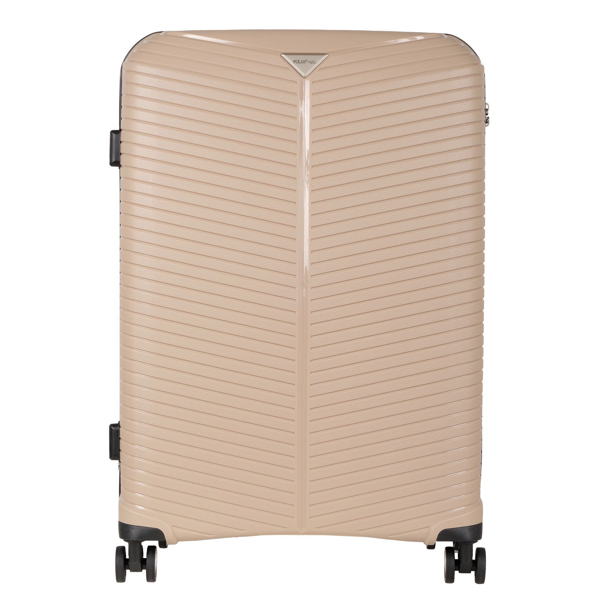 Чемодан фирмы Polar на четырех прорезиненных колесиках. Чемодан выполнен из PP-пластика (Полипропилен). Полипропилен обладает высокой прочностью, эластичностью и высокой ударостойкостью. Внутри подкладка из полиэстра. Одна секция чемодана с креплением резинками для одежды. Вторая секция застегивается на молнию для удобства упаковки вещей. Есть кодовый замок TSA.